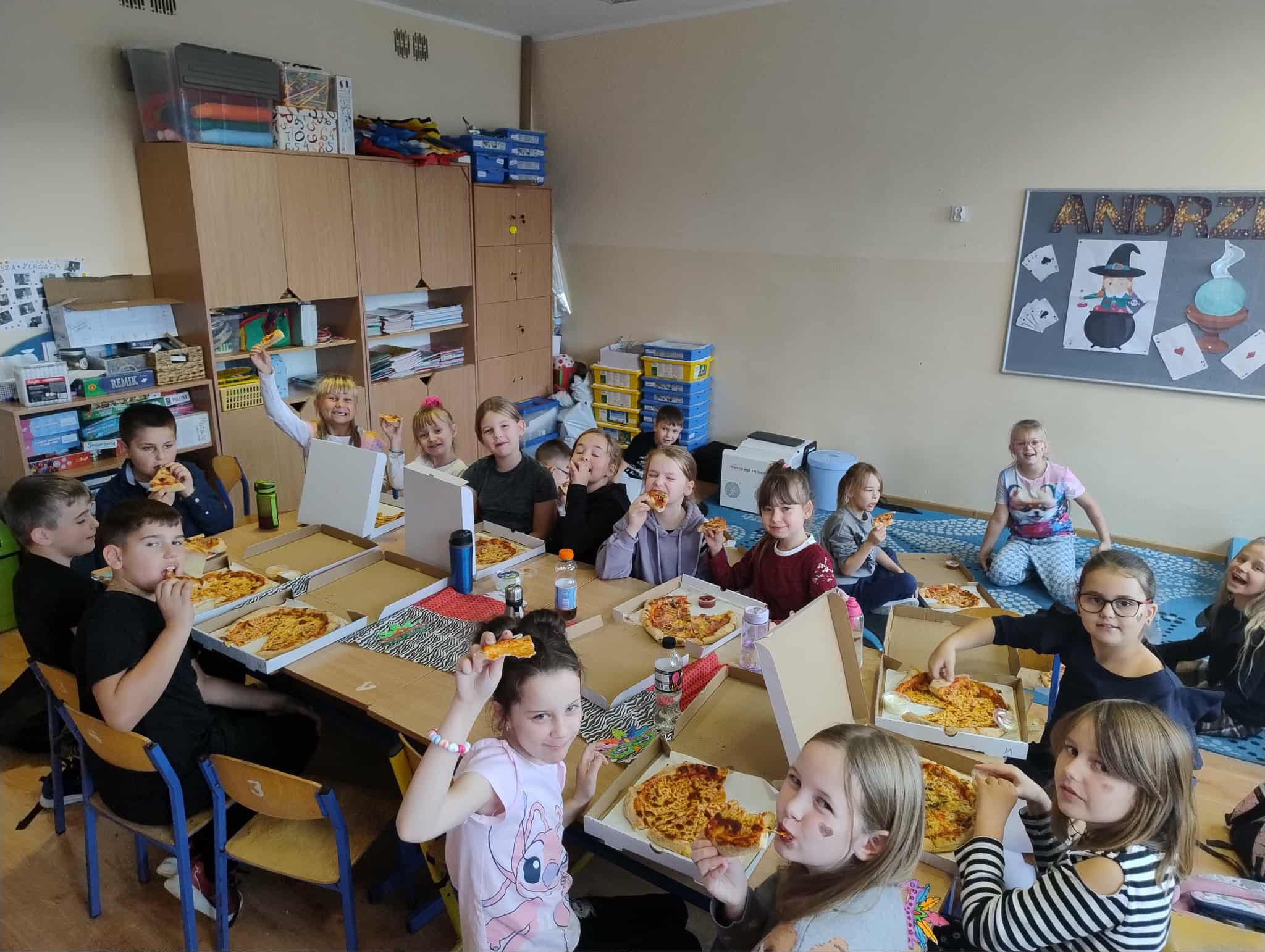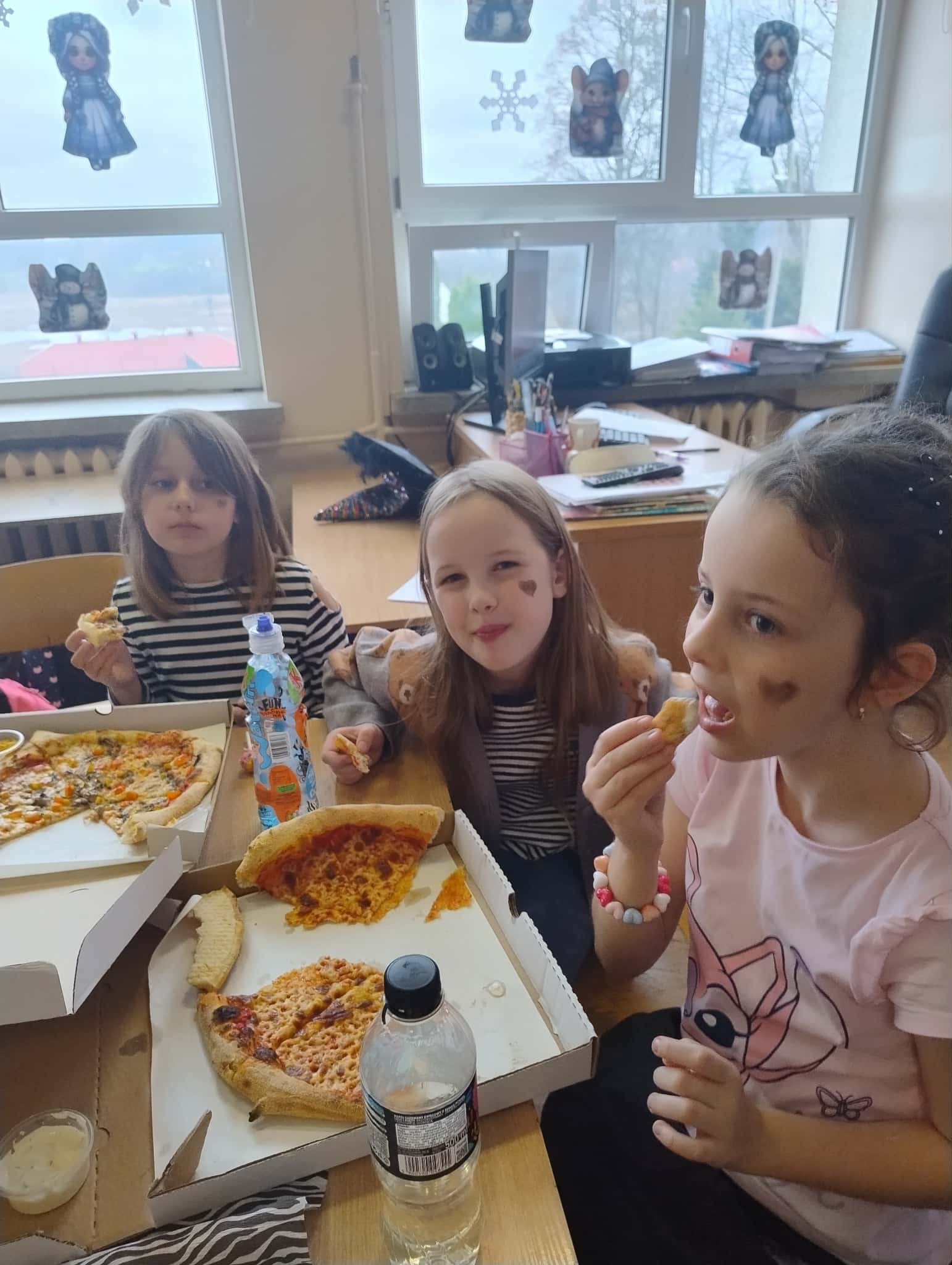 Po zabawach andrzejkowych na wszystkich czekała pyszna pizza, która dodała energii do dalszych atrakcji. Nie zabrakło również wesołych zabaw przy muzyce – tańców, śmiechu i wspólnej integracji.