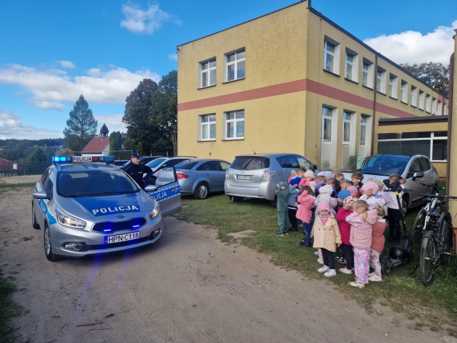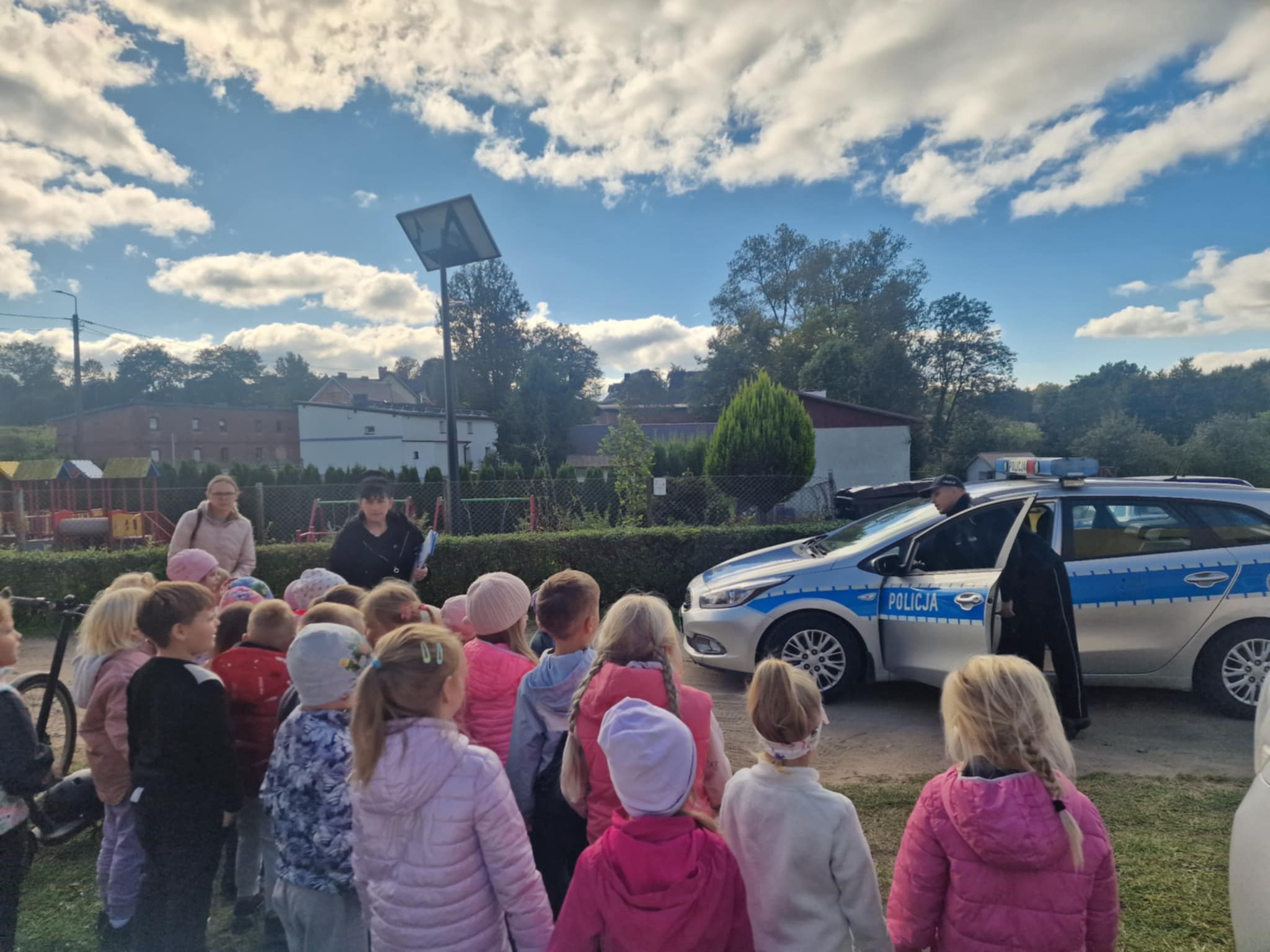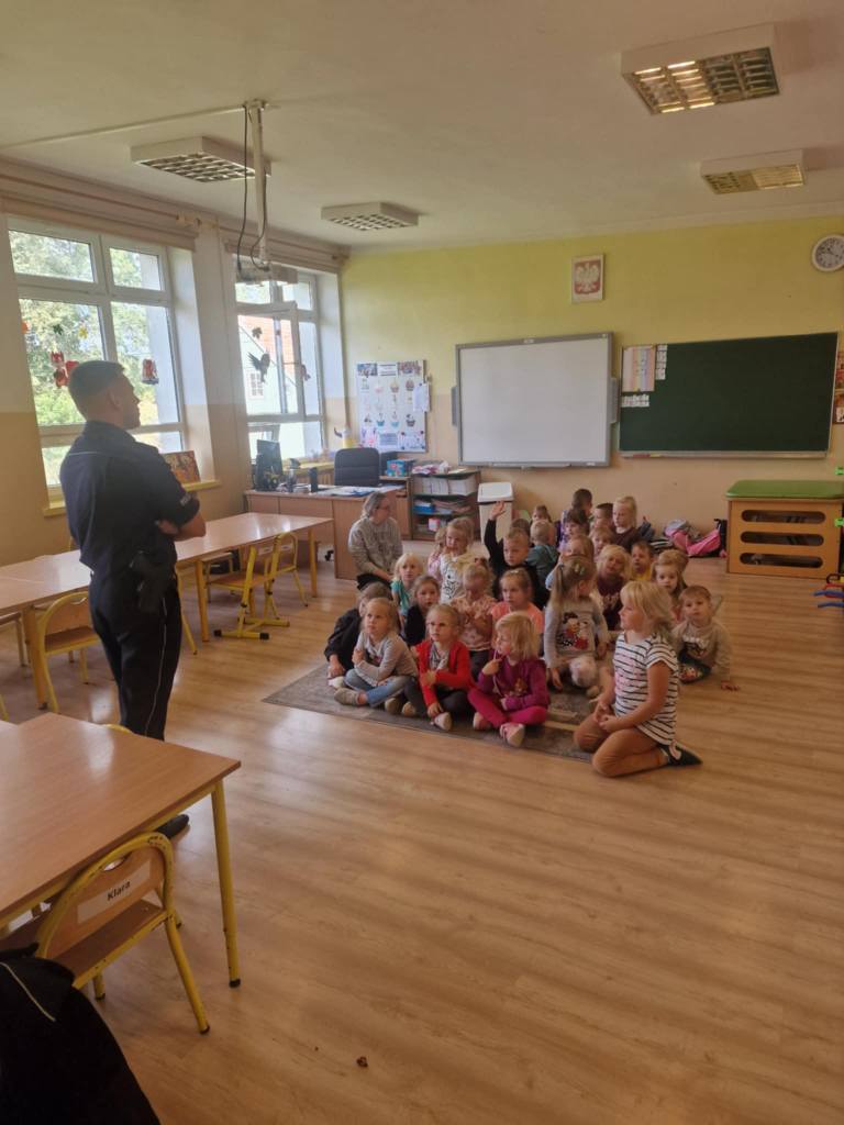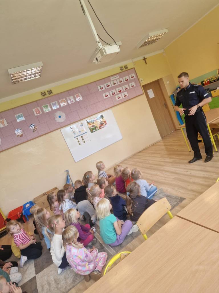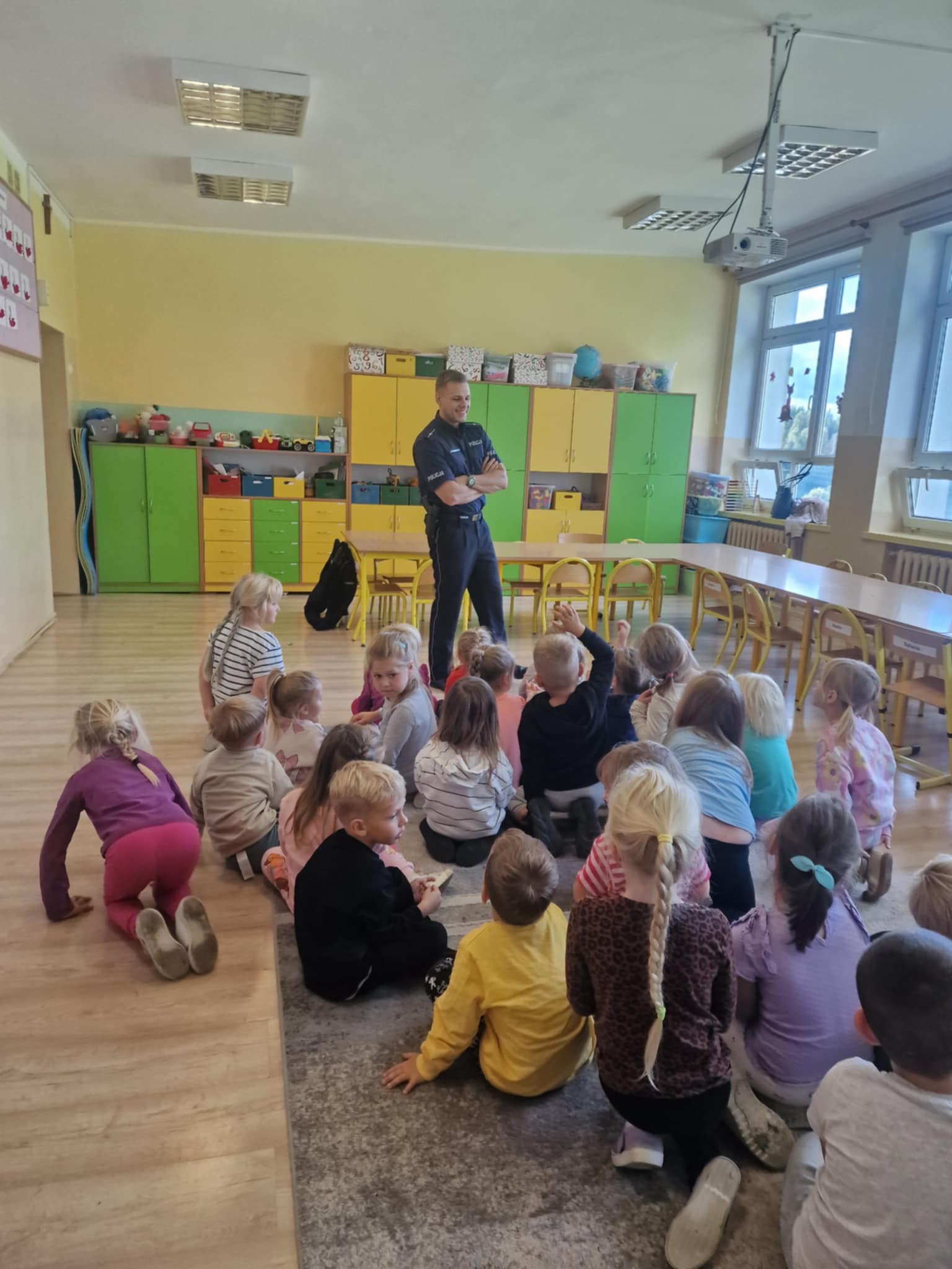 Dnia 29 września Oddział Przedszkolny i Punkt Przedszkolny odwiedził młodszy aspirant Paweł Klinkosz z Komendy Powiatowej Policji w Kartuzach.