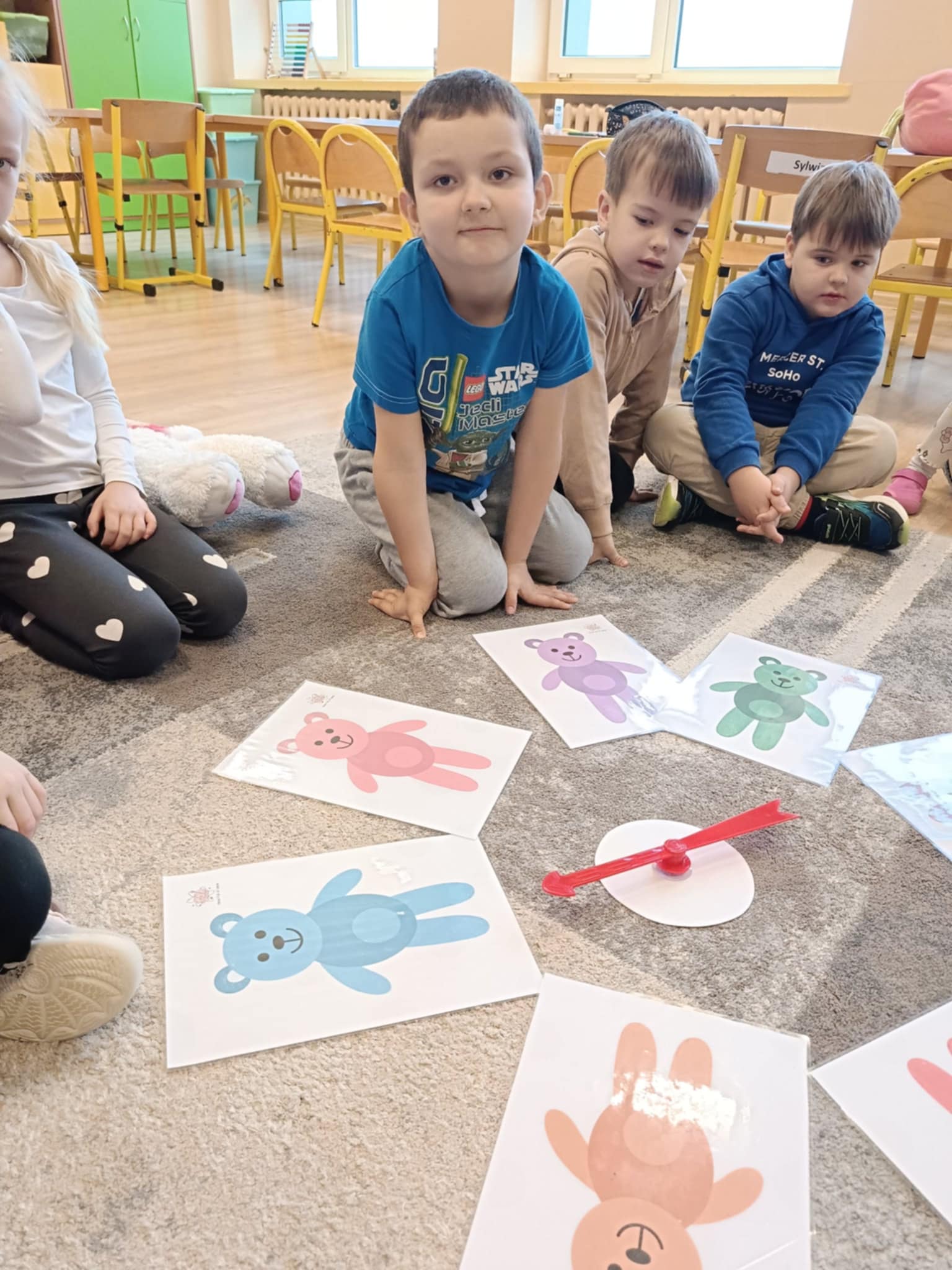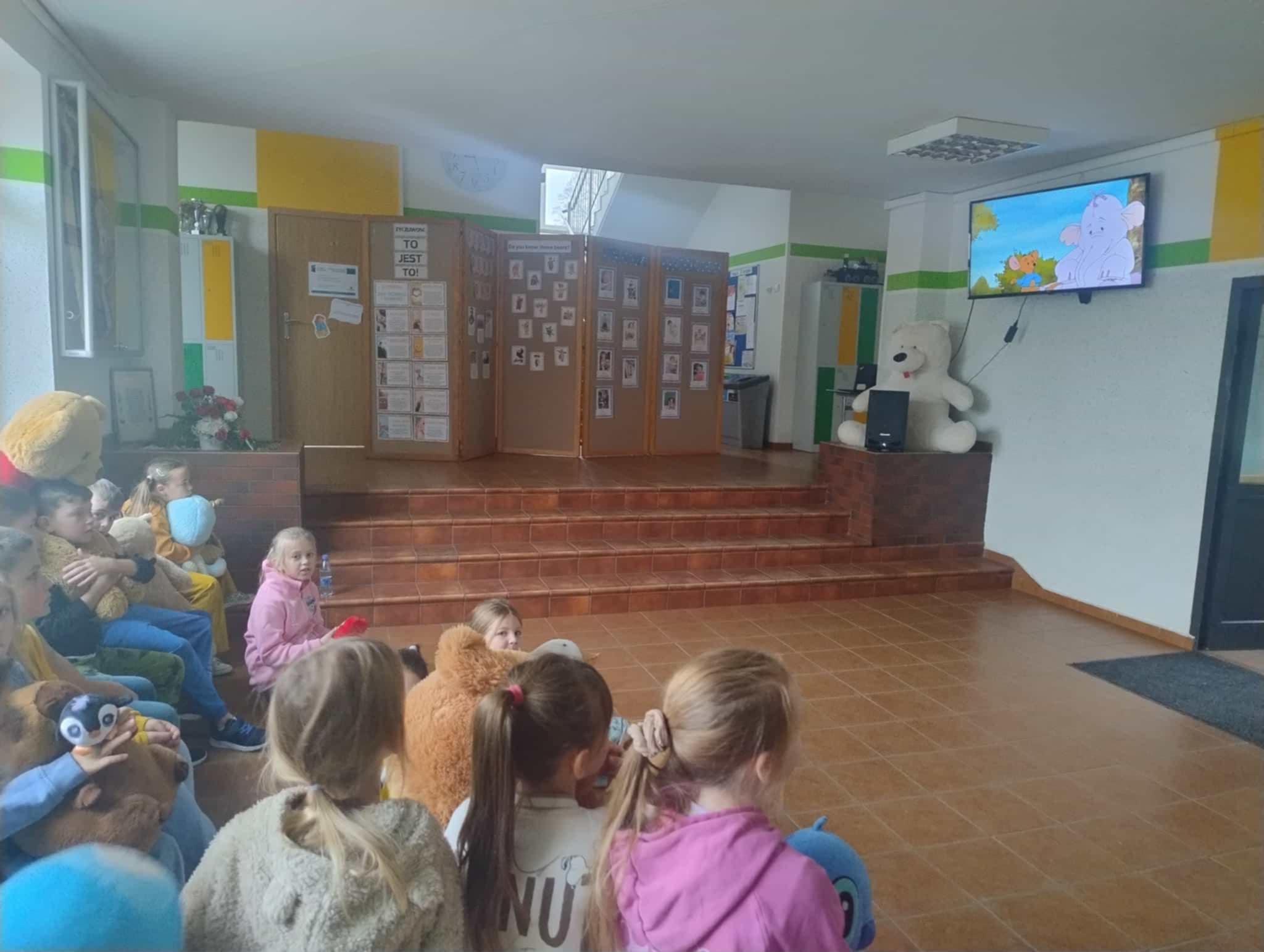 W szkole odbywały się rozmaite misiowe atrakcje: był czas na zabawy z pluszakami, wspólne oglądanie bajek o misiach oraz słuchanie misiowej muzyki. Nie zabrakło również ruchu – uczniowie uczestniczyli w wesołej gimnastyce z misiami, która wywołała wiele uśmiechów.