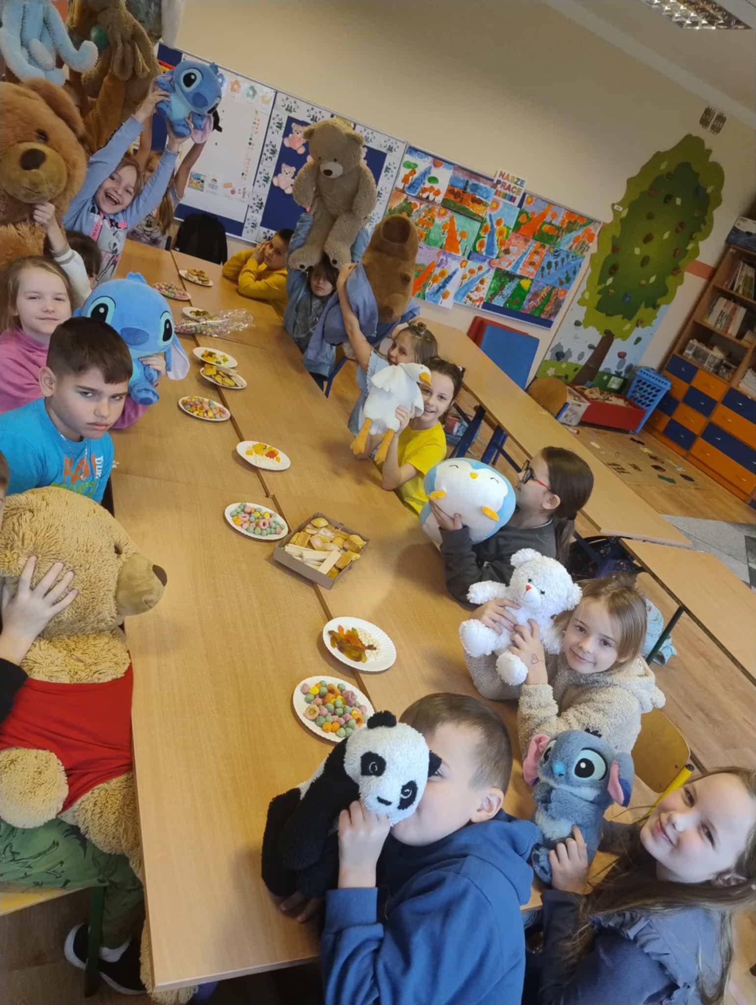 Dzisiaj obchodziliśmy w naszej szkole "Dzień Pluszowego Misia". To wyjątkowe święto przyniosło dużo radości zarówno najmłodszym uczniom, jak i starszym. Dzieci przyniosły do szkoły swoje ulubione misie, które towarzyszyły im przez cały dzień wspólnej zabawy.