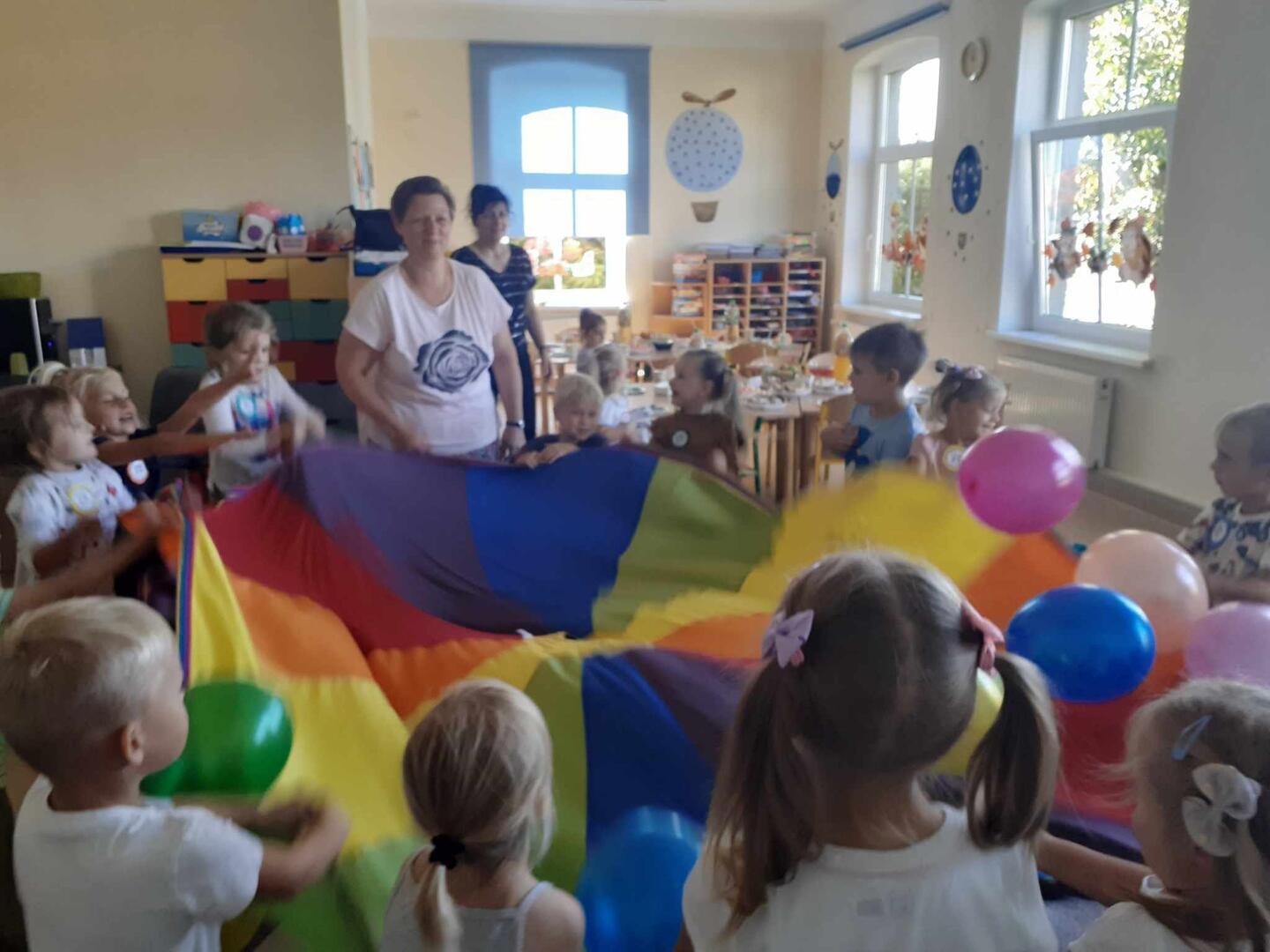 Tego dnia dzieci uczestniczyły w zabawach muzyczno-ruchowych.Były zabawy z chustą animacyjną i balonami.Każdy Przedszkolak otrzymał medal.