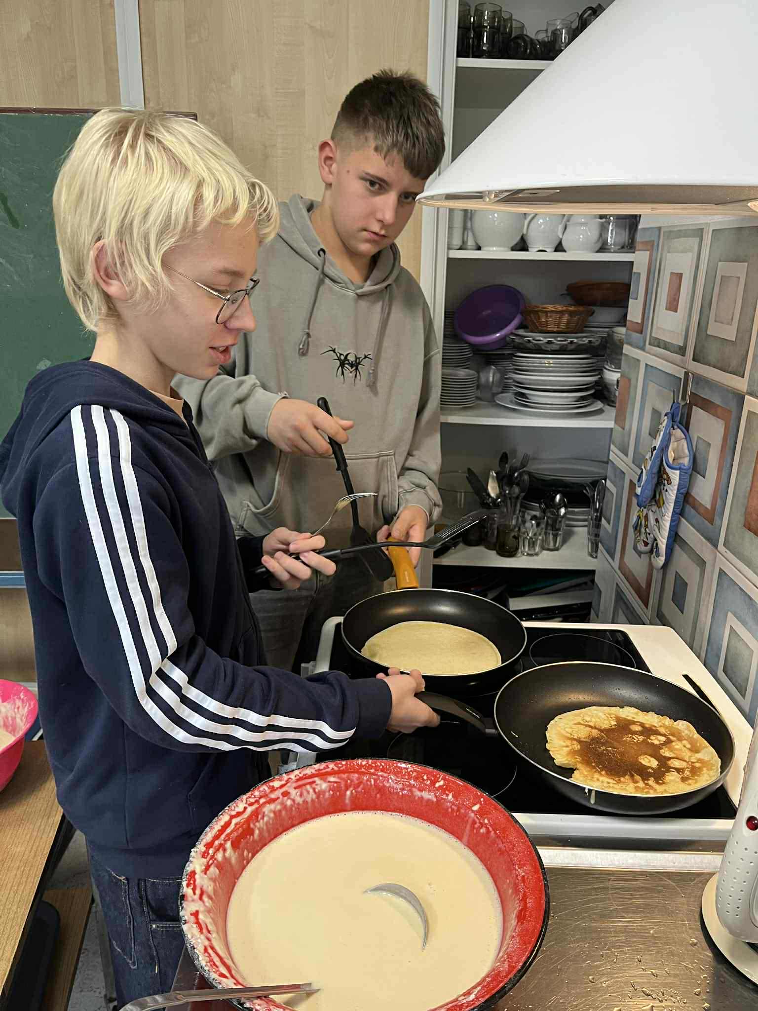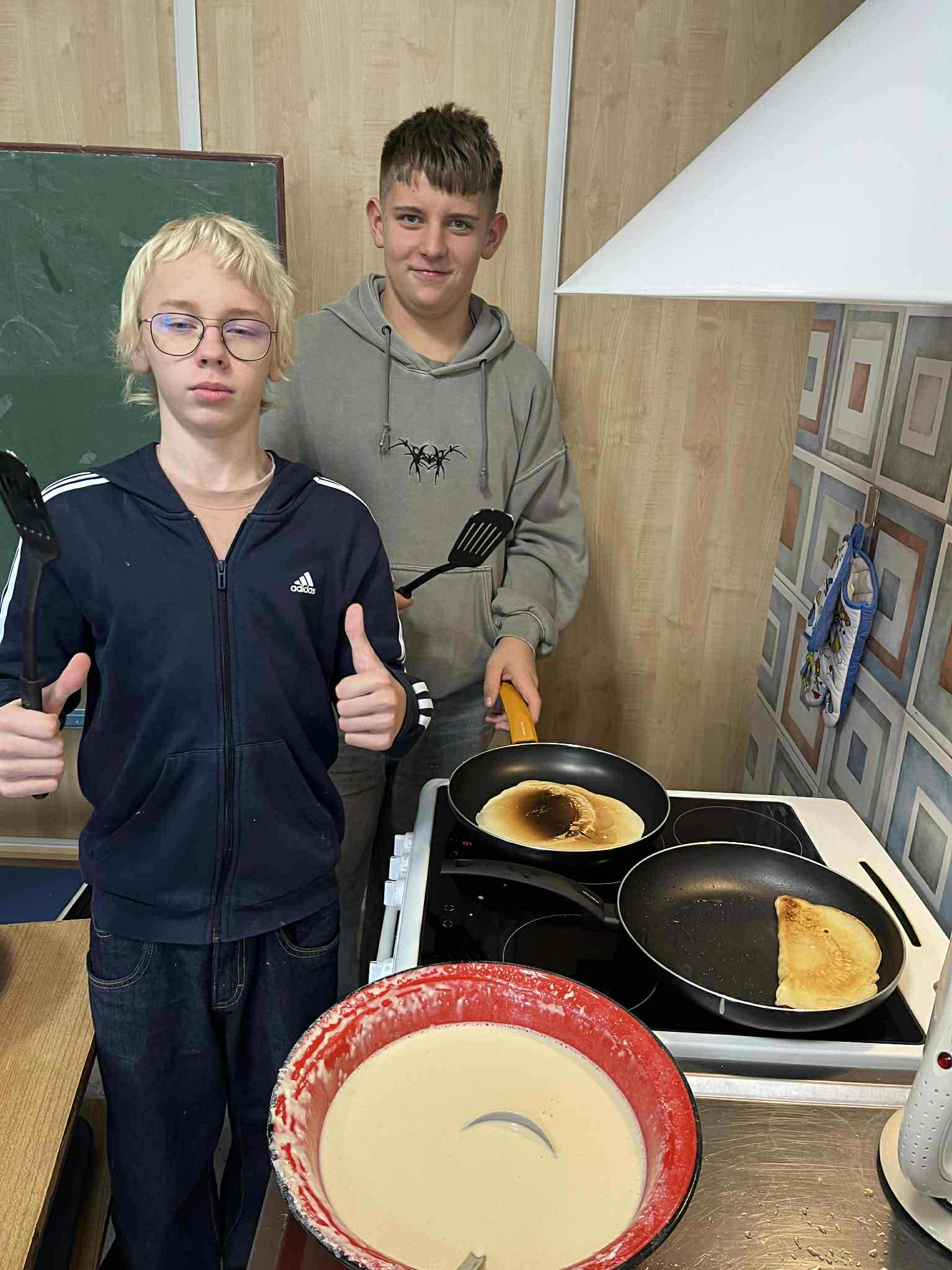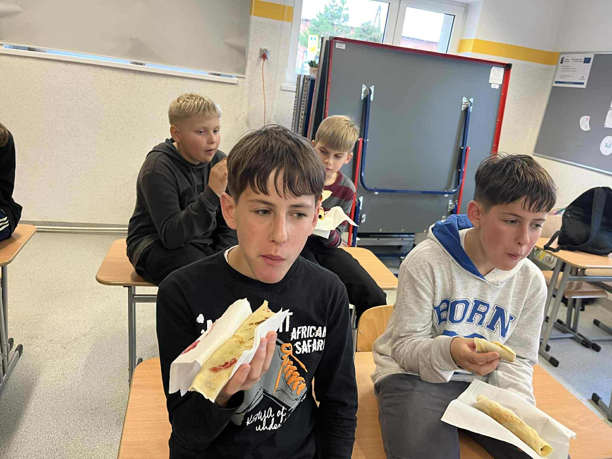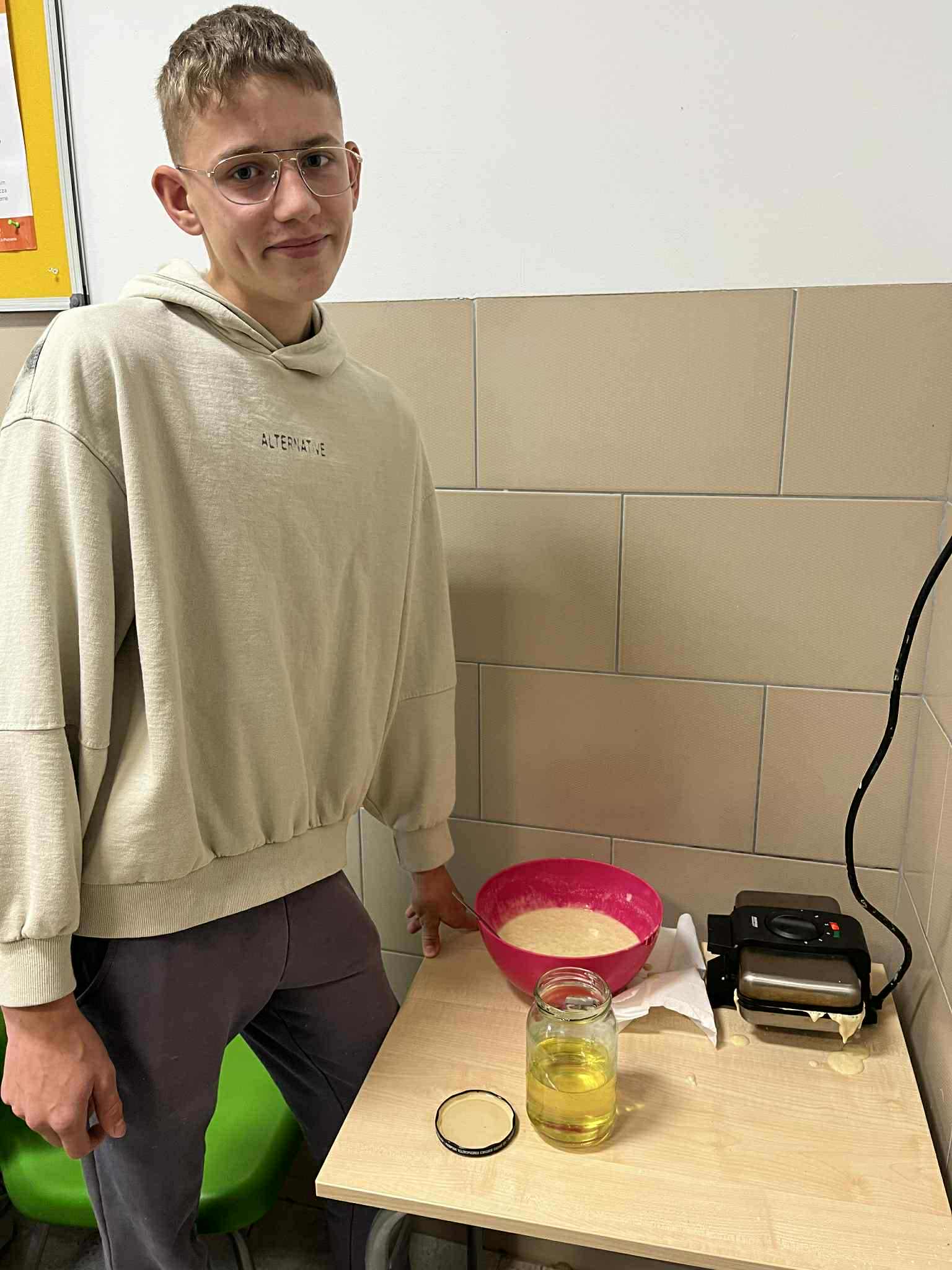 Uczniowie klasy ósmej zamienili się w prawdziwych kucharzy – piekli pyszne gofry i naleśniki, poznając w praktyce smaki kuchni kaszubskiej. W kuchni unosił się zapach słodkich przysmaków i panowała doskonała atmosfera! Tymczasem uczniowie klasy siódmej próbowali swoich sił w rękodziele – haftowali na maszynie drzewo wcześniej zaprogramowane komputerowo. W ten sposób połączyli nowoczesną technologię z kaszubską tradycją. To był dzień pełen kreatywności, nauki i dumy z kaszubskich korzeni!