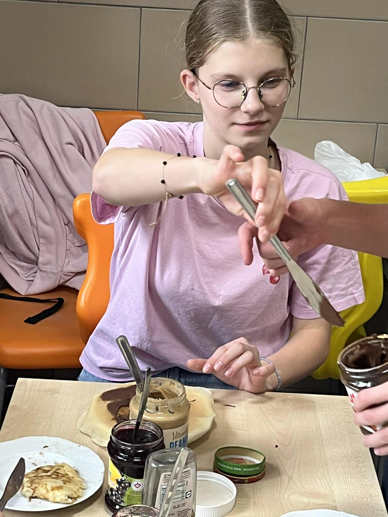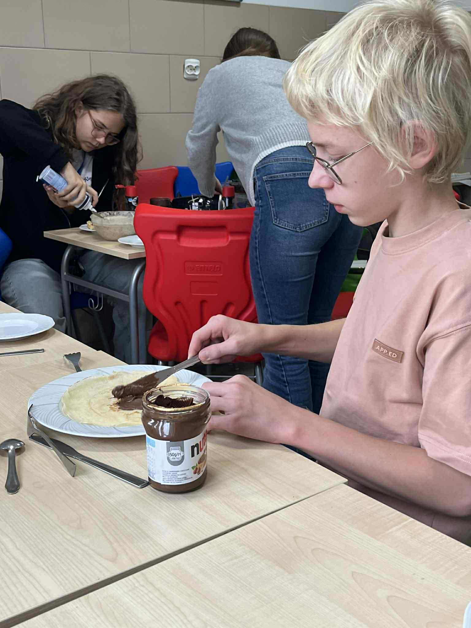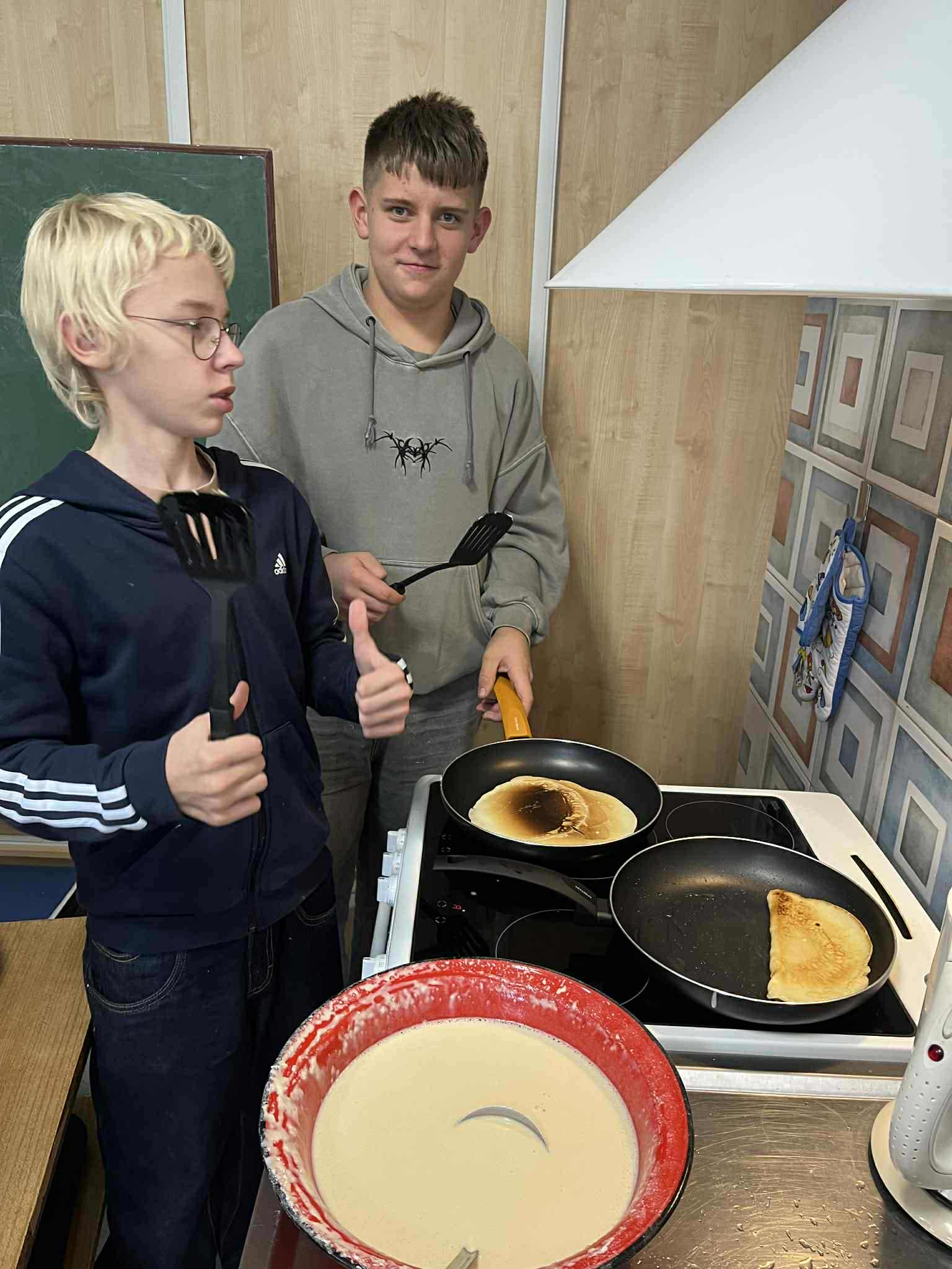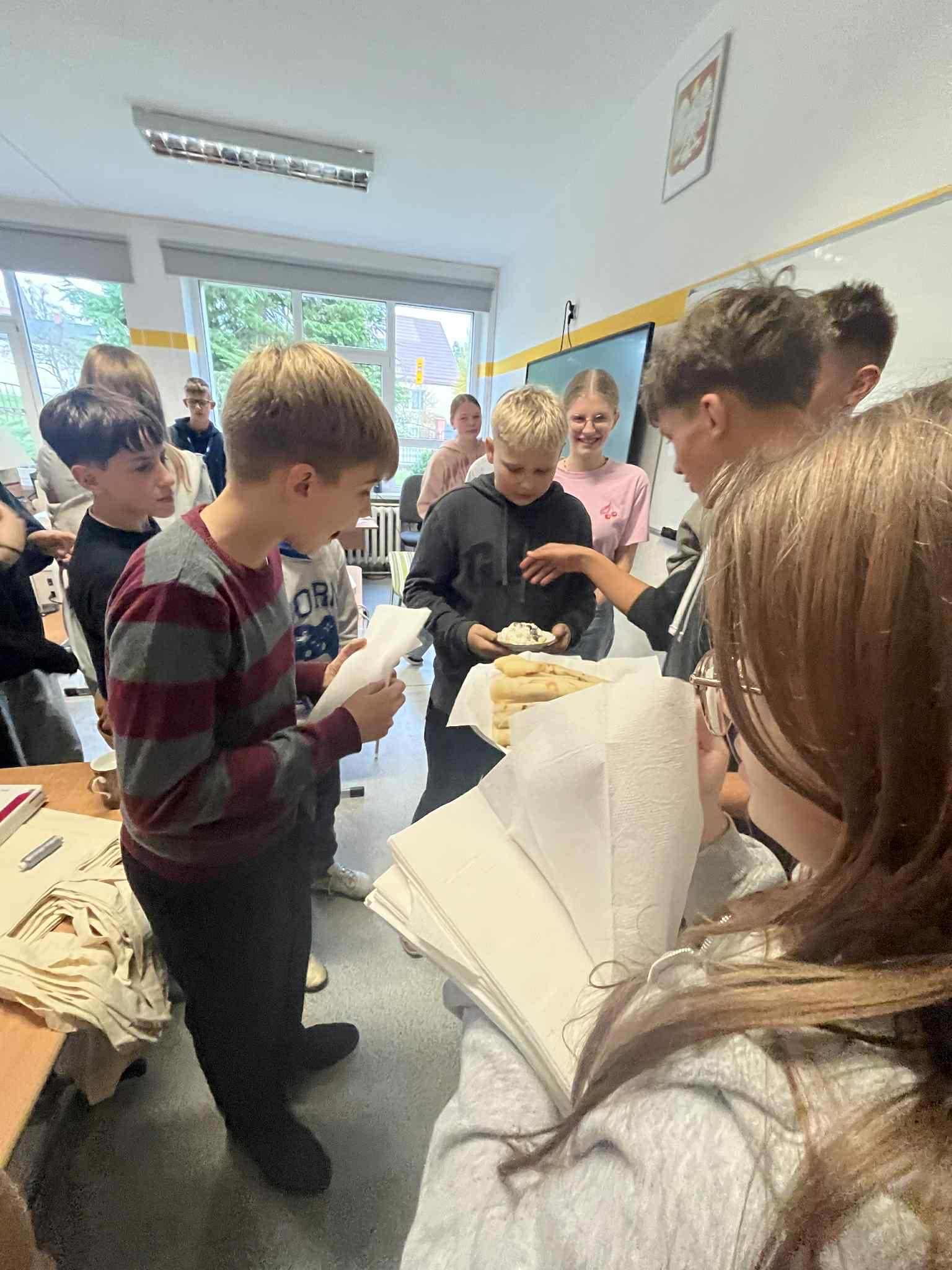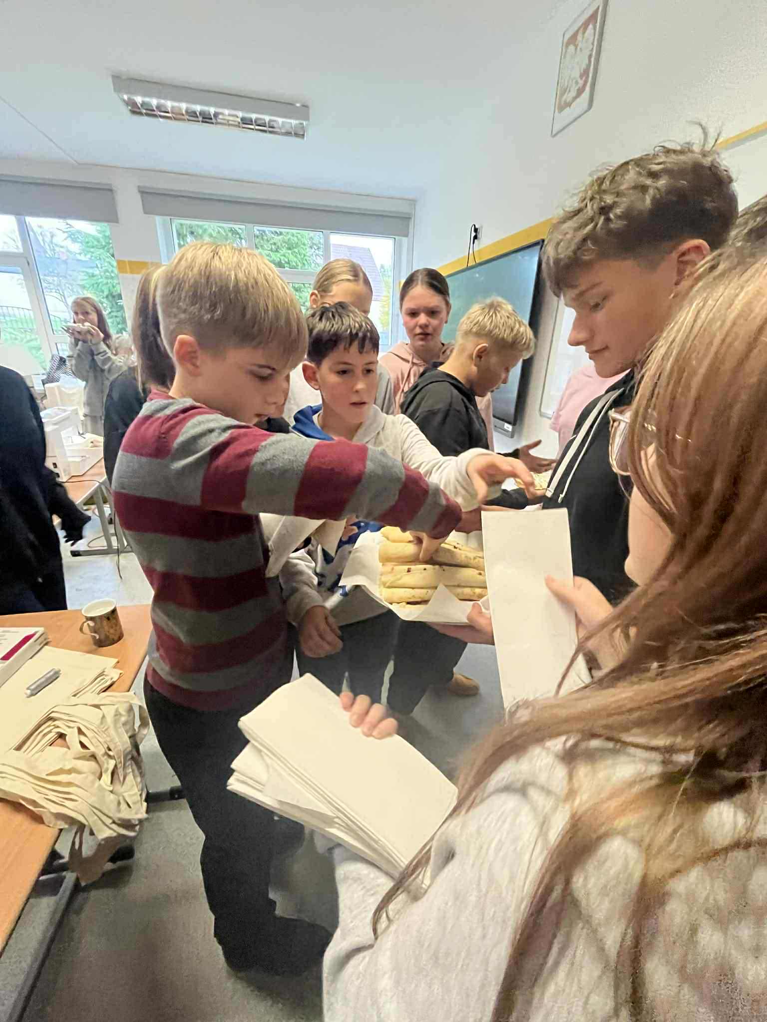 Uczniowie klasy ósmej zamienili się w prawdziwych kucharzy – piekli pyszne gofry i naleśniki, poznając w praktyce smaki kuchni kaszubskiej. W kuchni unosił się zapach słodkich przysmaków i panowała doskonała atmosfera! Tymczasem uczniowie klasy siódmej próbowali swoich sił w rękodziele – haftowali na maszynie drzewo wcześniej zaprogramowane komputerowo. W ten sposób połączyli nowoczesną technologię z kaszubską tradycją. To był dzień pełen kreatywności, nauki i dumy z kaszubskich korzeni!