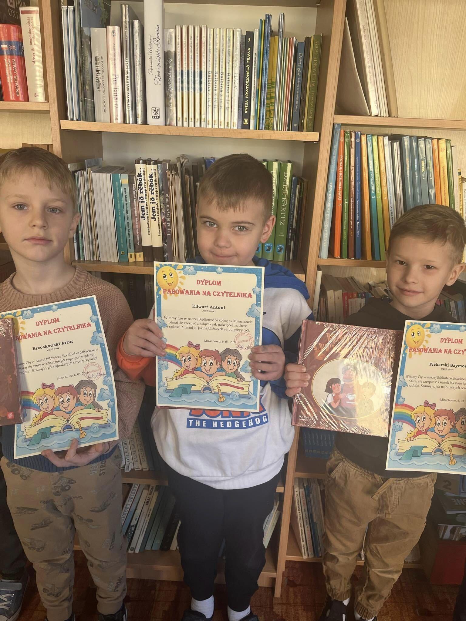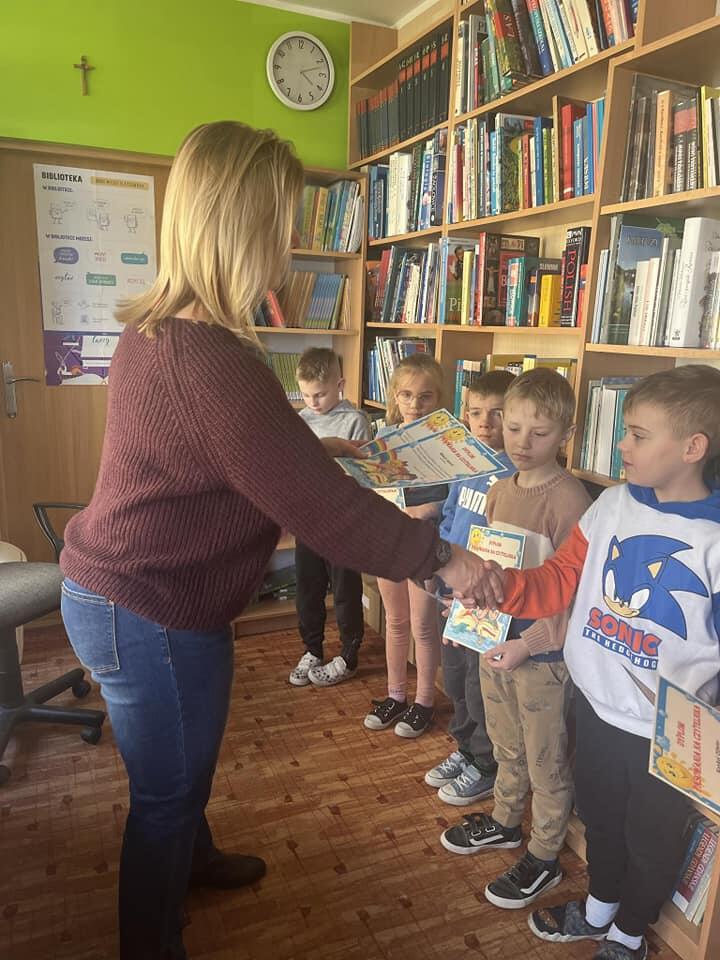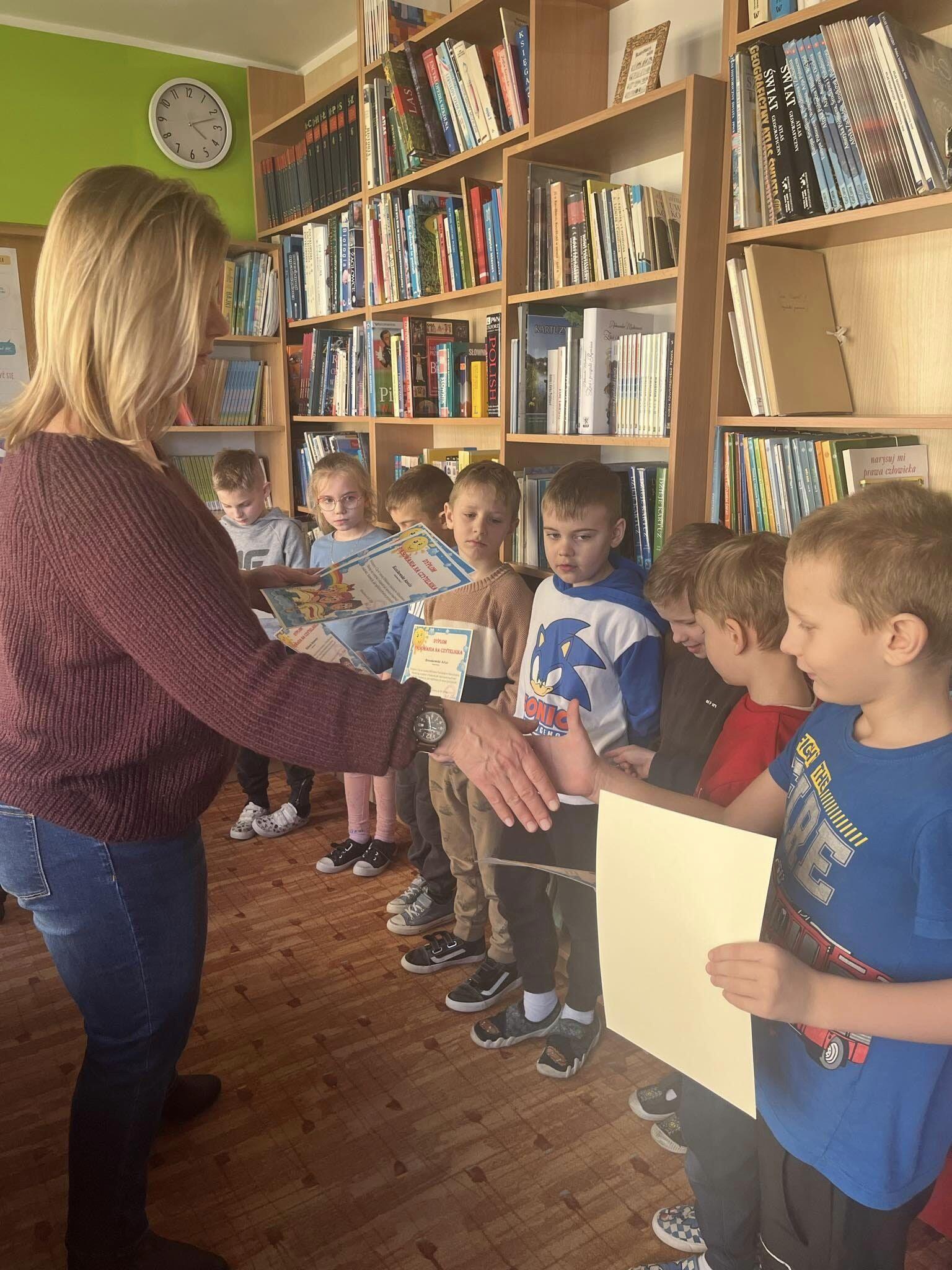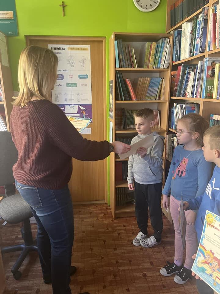 W tym roku szkolnym na uroczystym pasowaniu klasa pierwsza gościła w bibliotece w dniu 7 marca. Był to dzień, na który uczniowie czekali z utęsknieniem. Założenie karty bibliotecznej i pierwsze wypożyczanie książek dało dzieciom dużo radości i powodu do dumy.