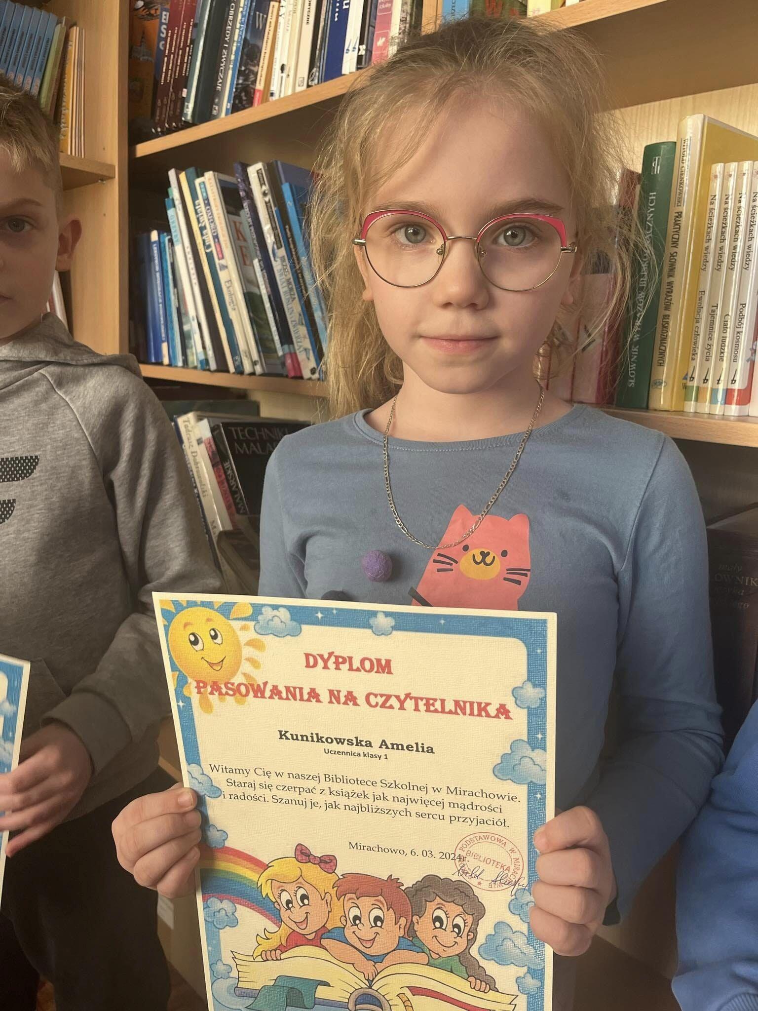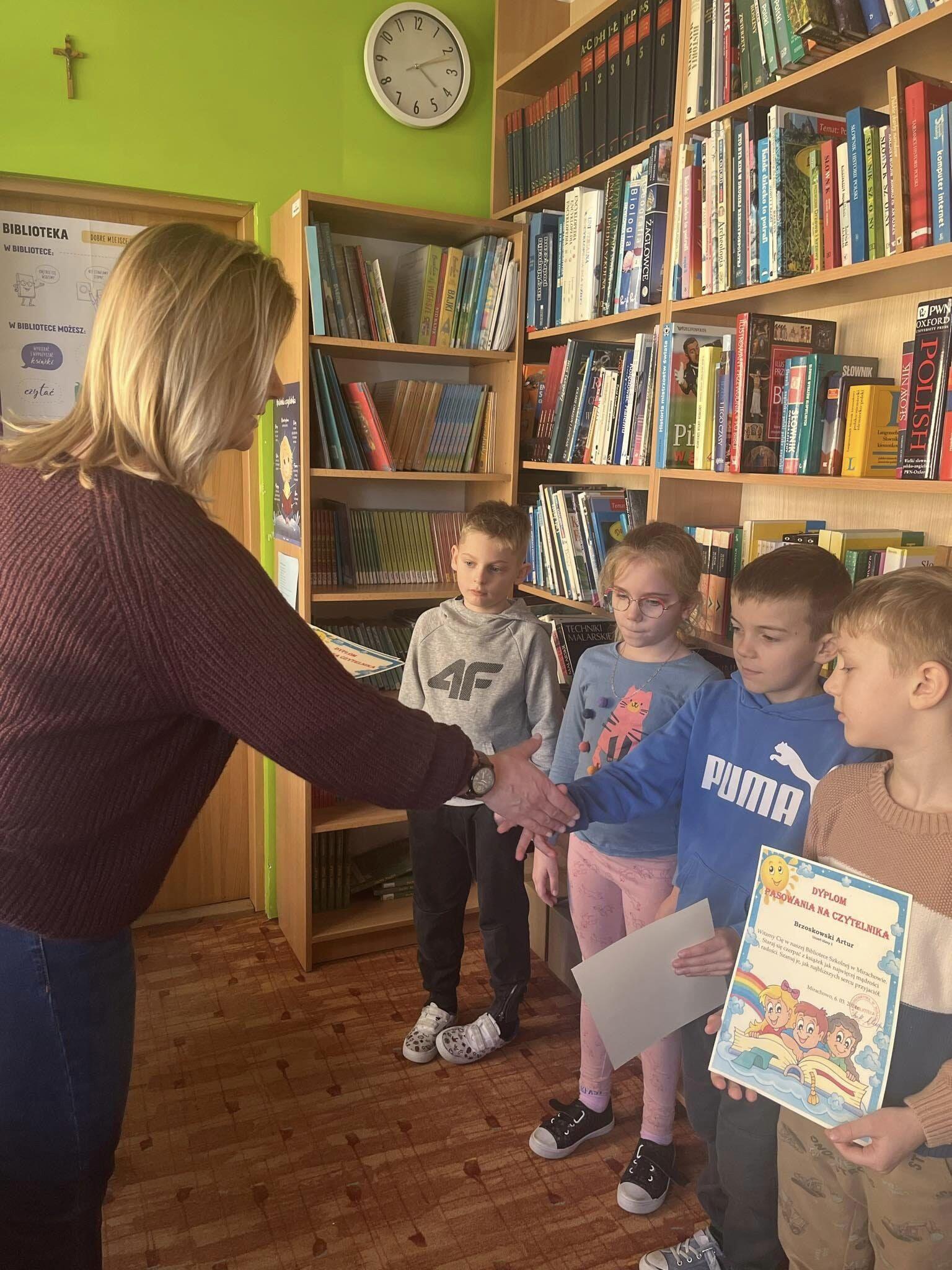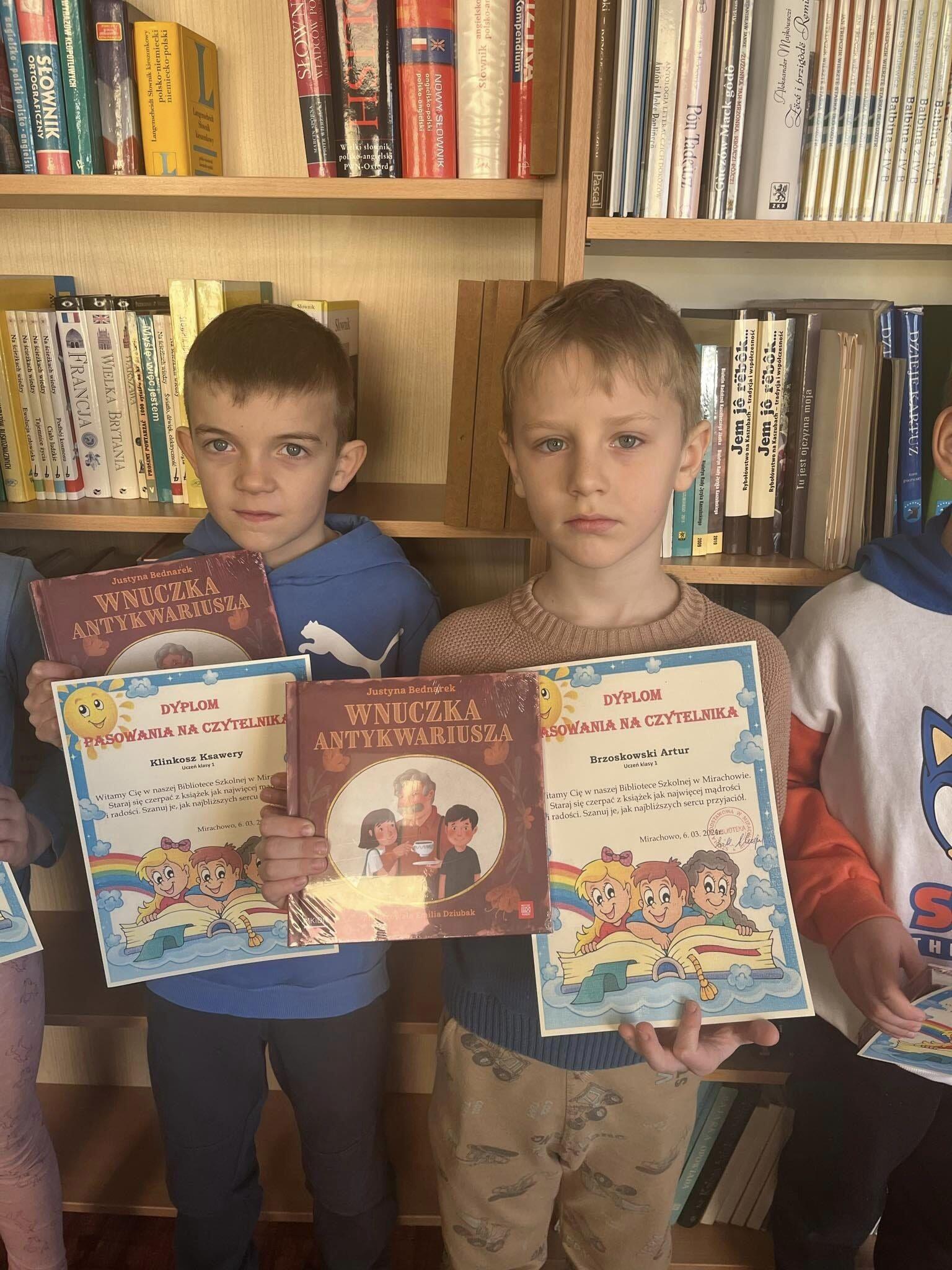 W tym roku szkolnym na uroczystym pasowaniu klasa pierwsza gościła w bibliotece w dniu 7 marca. Był to dzień, na który uczniowie czekali z utęsknieniem. Założenie karty bibliotecznej i pierwsze wypożyczanie książek dało dzieciom dużo radości i powodu do dumy.