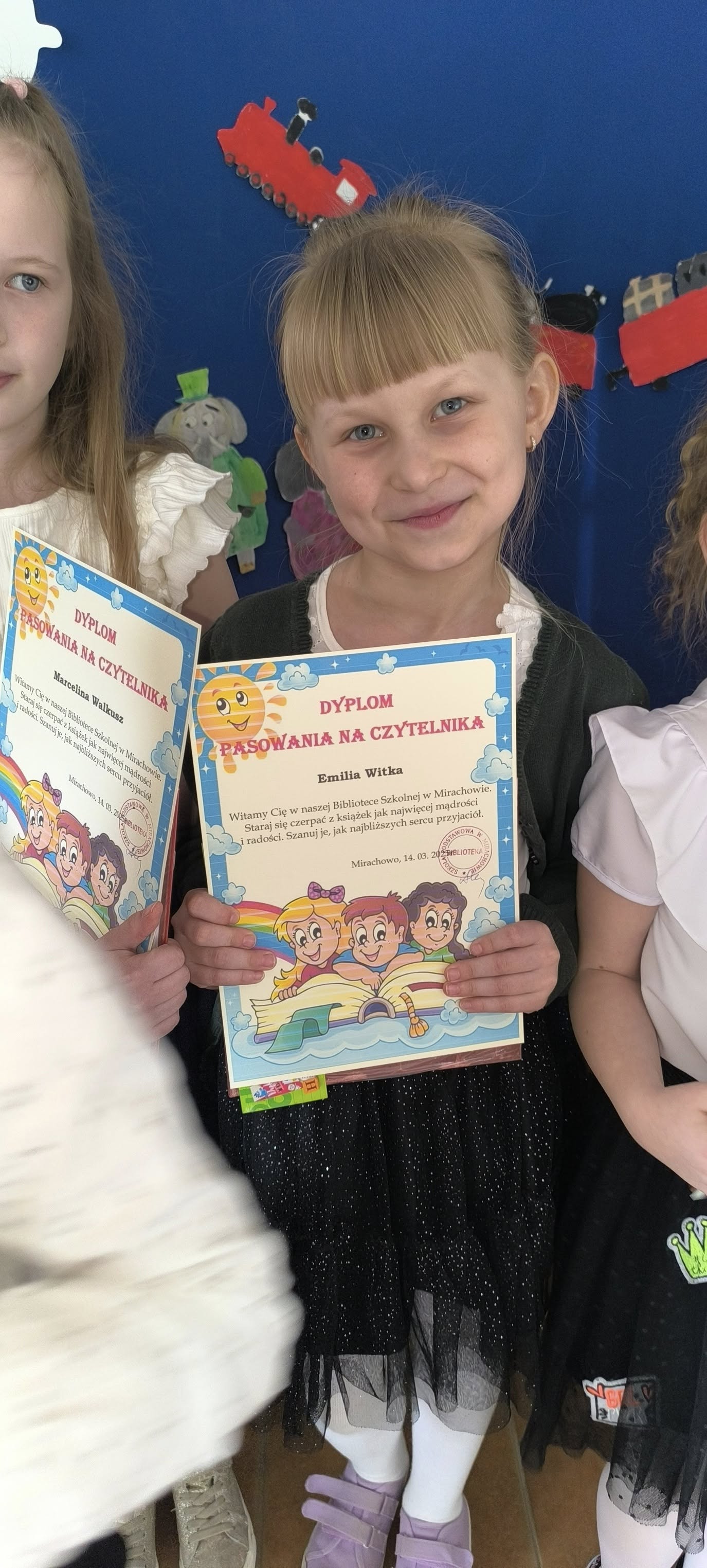 Po ślubowaniu każdy na pamiątkę tego wydarzenia otrzymał od pani Dyrektor dyplom oraz książkę.