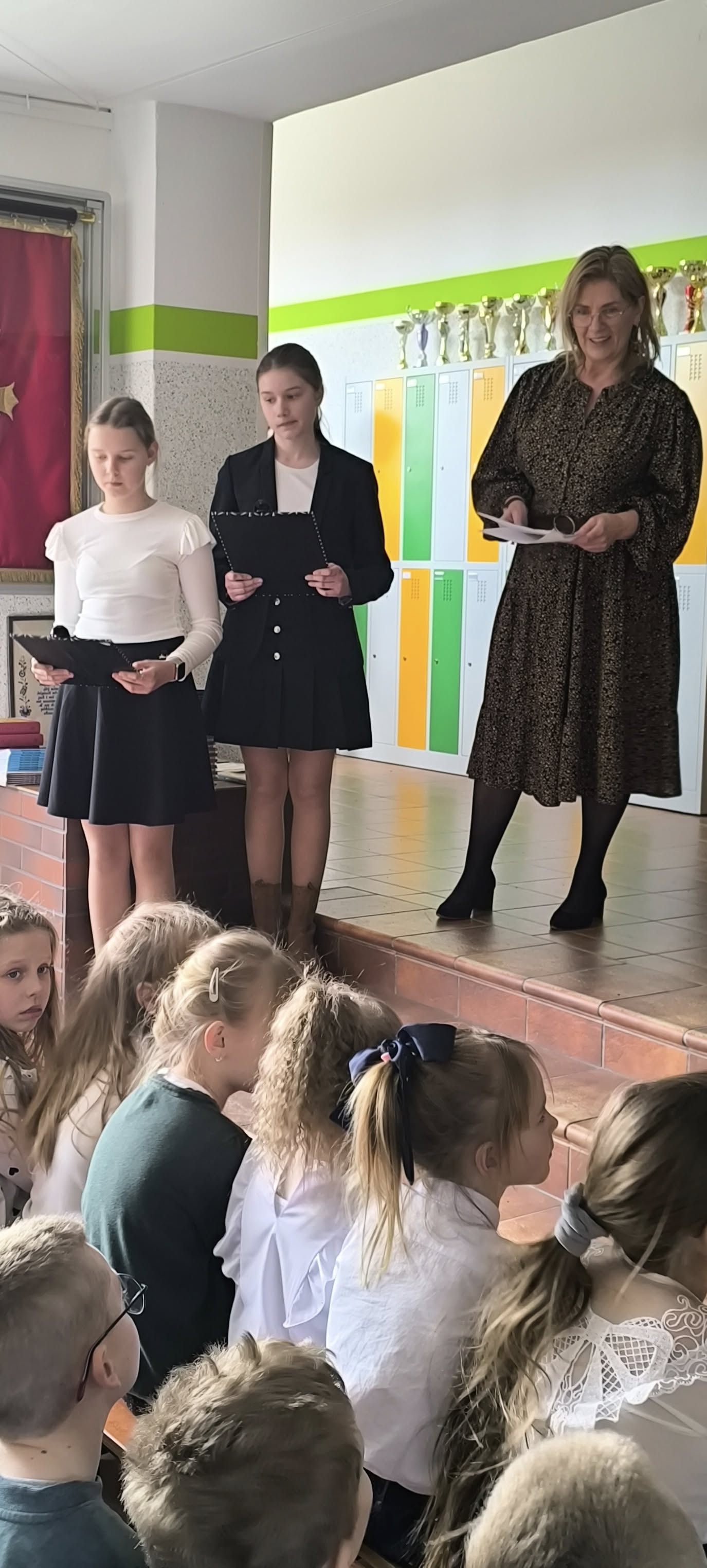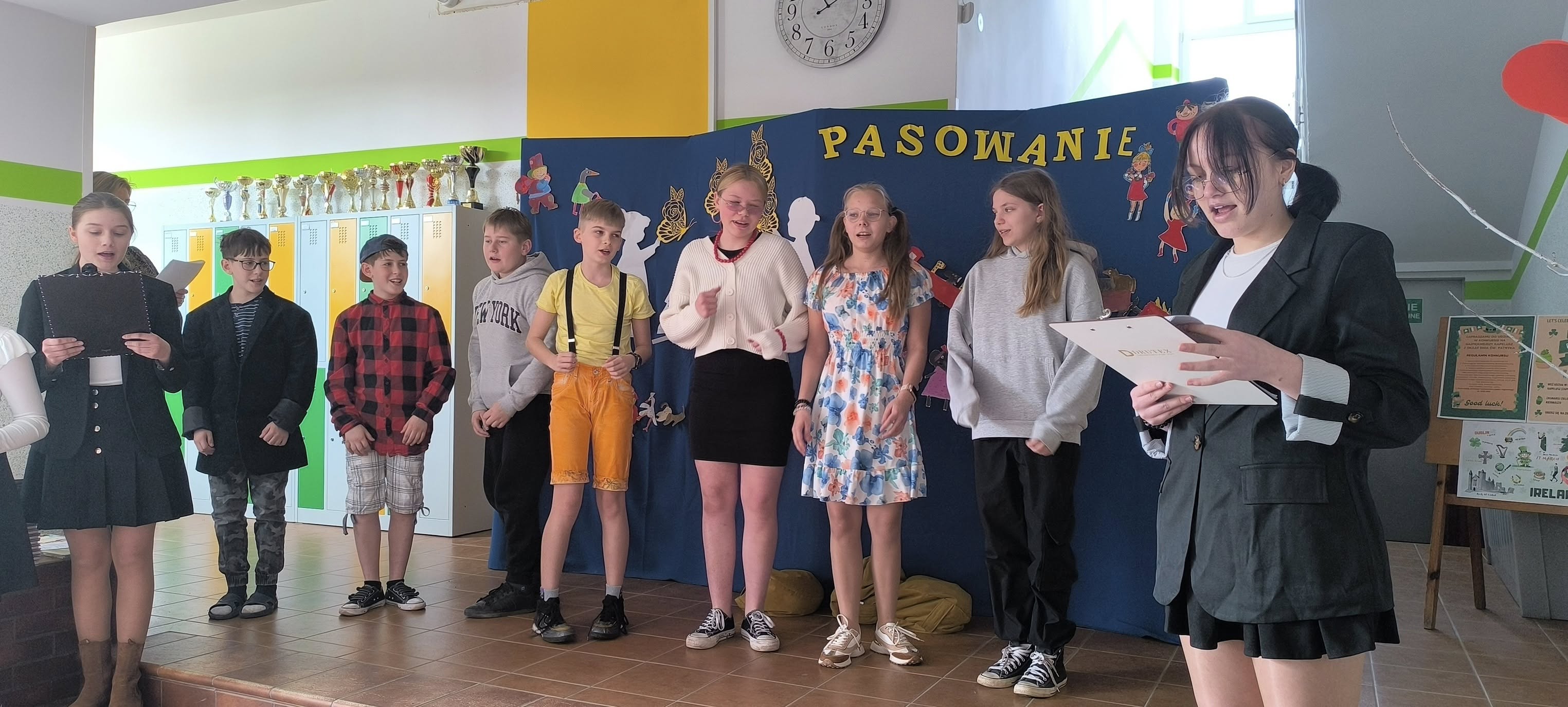 Uroczystość rozpoczęła się od przedstawienia przygotowanego przez uczniów klasy szóstej, którzy wcielili się w postacie z wierszy Juliana Tuwima