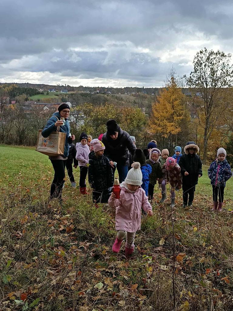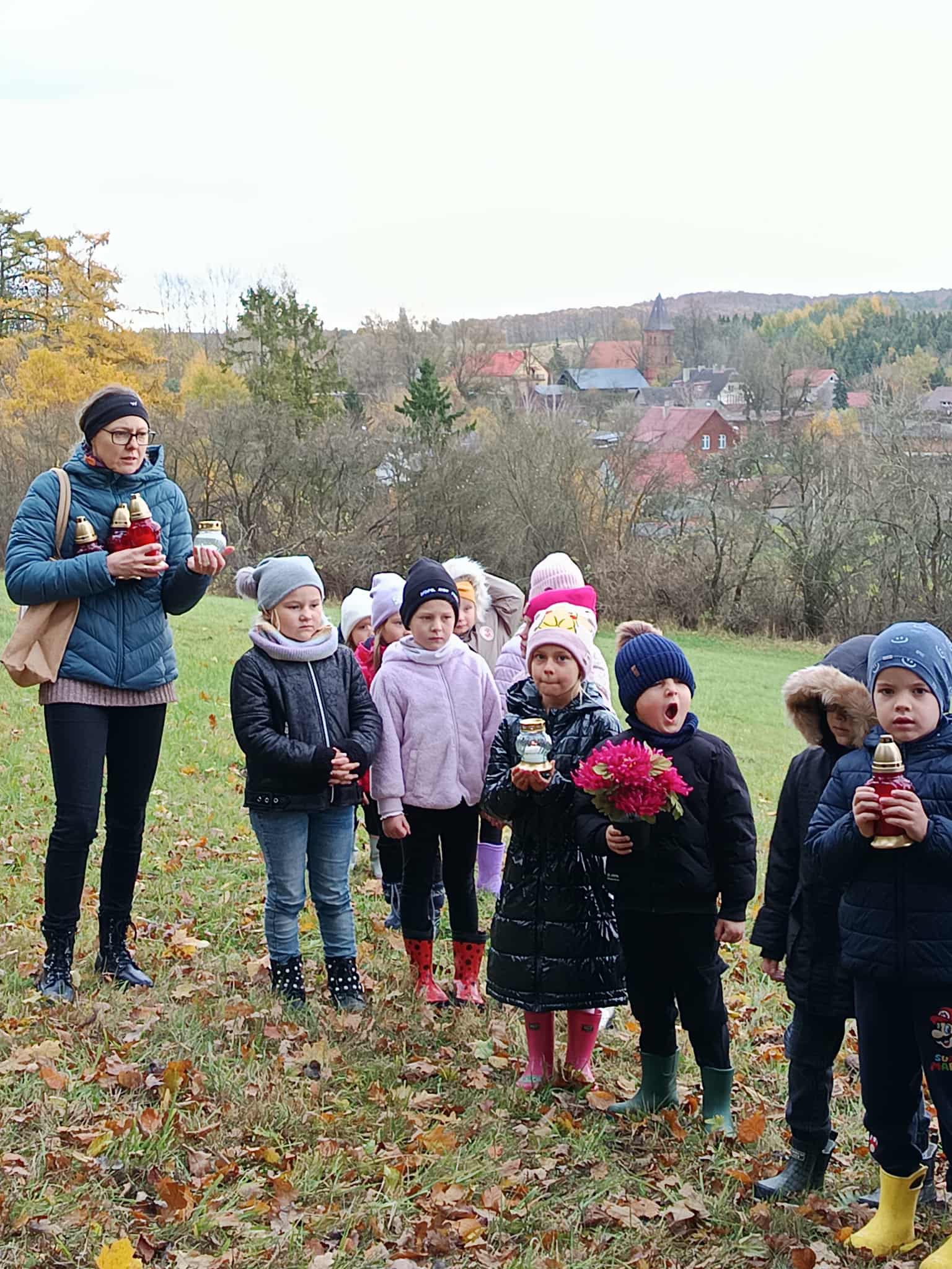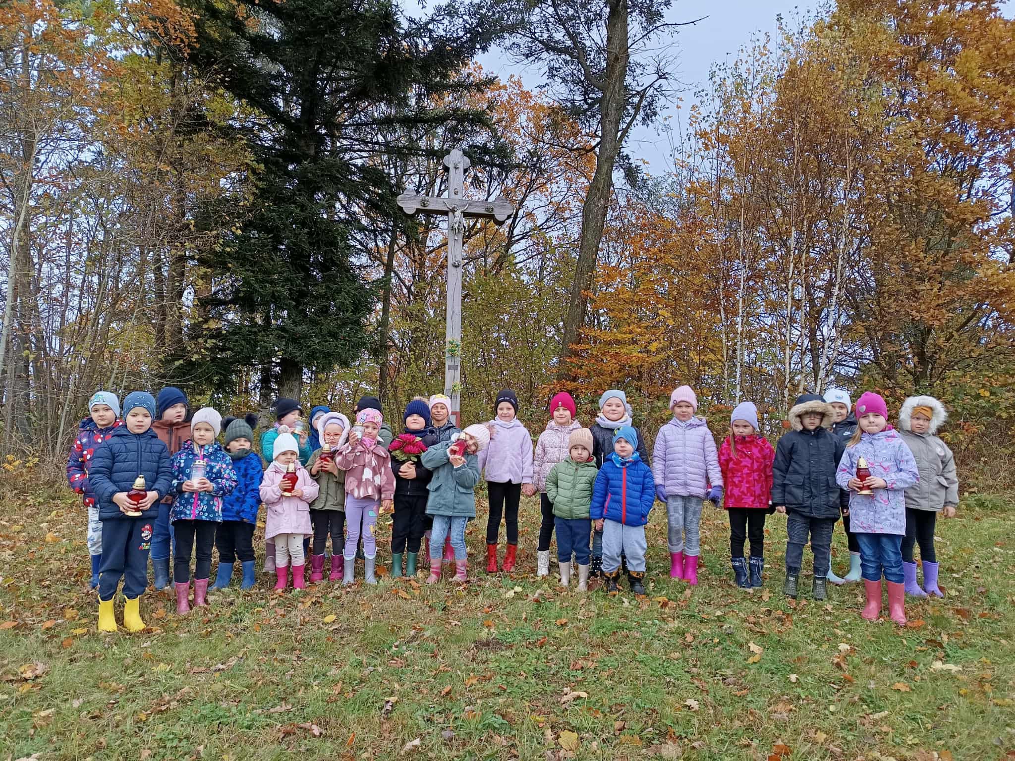 Tuż przed 1 listopada nasze Przedszkolaki odwiedziły Górę Świętopełka. Z okazji Święta Zmarłych dzieci zapaliły symboliczne światełka przy krzyżu oraz położyły kwiaty.