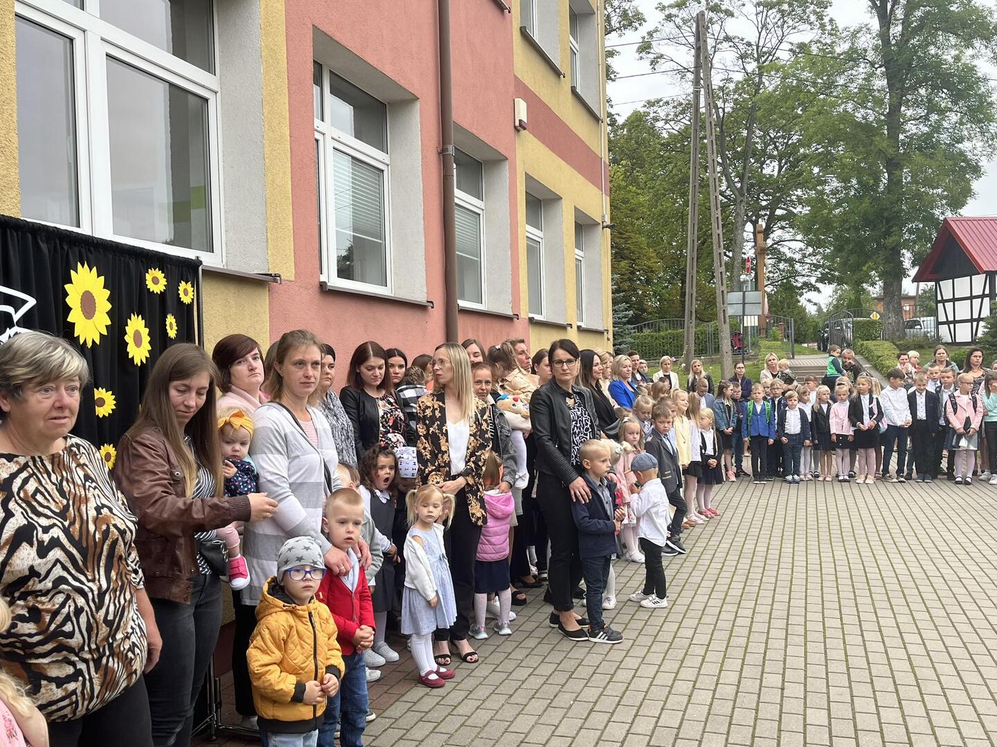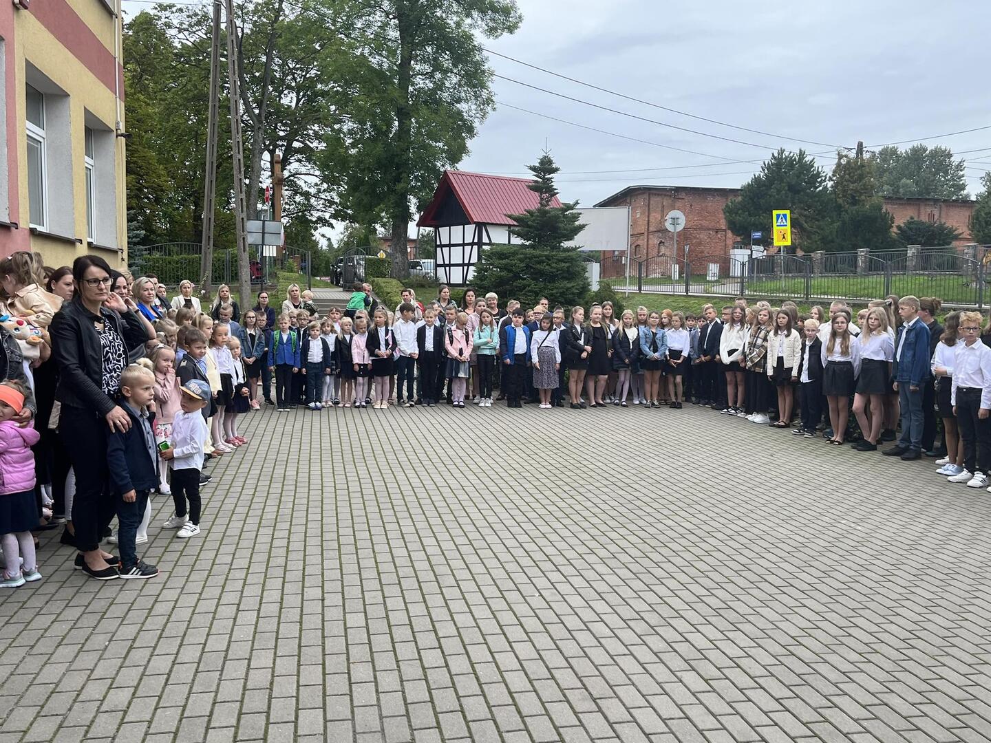Po wakacjach przyszła pora na rozpoczęcie nowego roku szkolnego 2023/2024. Czwartego września uczniowie naszej szkoły, podobnie jak ich koledzy w całym kraju, spotkali się na rozpoczęciu roku szkolnego. Tradycyjnie na początek pani dyrektor Hanna Plenikowska Pionk bardzo serecznie powitała przybyłych uczniów , rodziców i grono pedagogiczne, następnie przedstawiła wychowawców klas oraz nowych zatrudnionych nauczycieli, życząc wszystkim wiele sukcesów i wytrwałości w dążeniach do celu.
