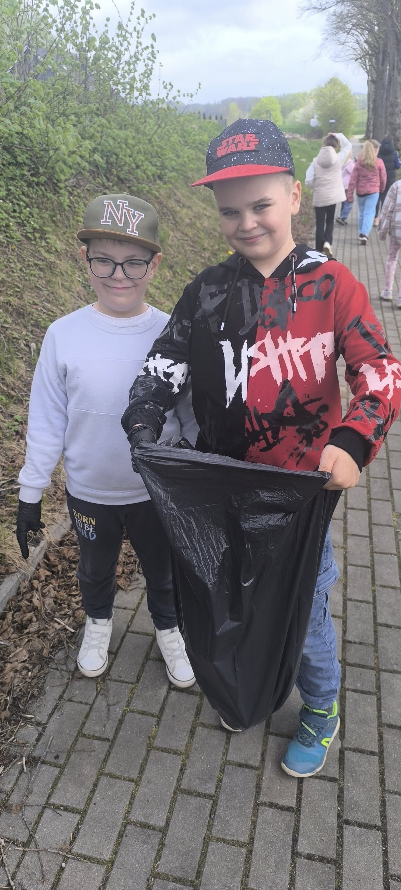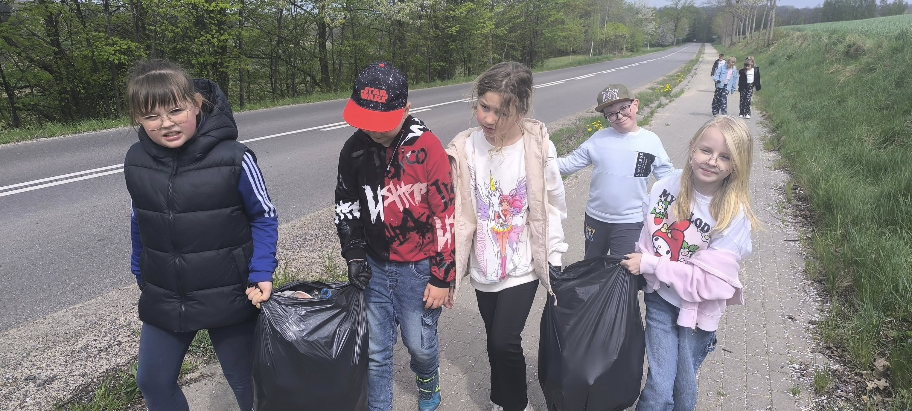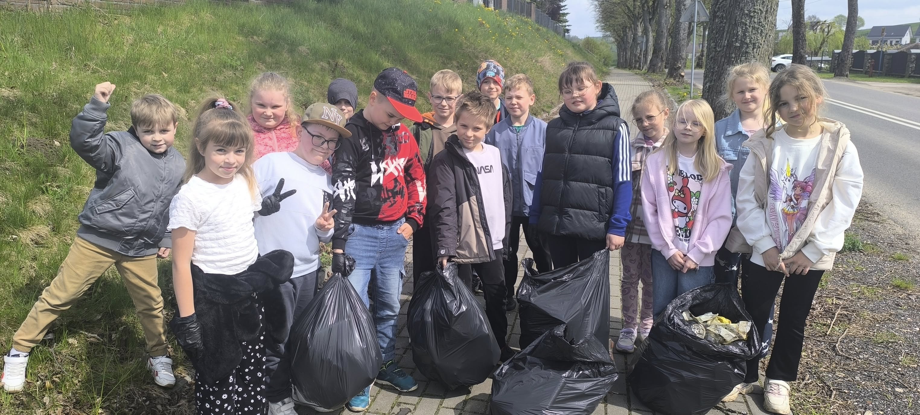 Uczniowie pod opieką nauczycieli, zaopatrzeni w worki i rękawiczki, wyruszyli w teren, aby posprzątać okolicę szkoły oraz pobliskie ulice. Dzięki wspólnemu zaangażowaniu udało się zebrać wiele worków śmieci i sprawić, że nasza przestrzeń stała się czystsza i bardziej przyjazna.
