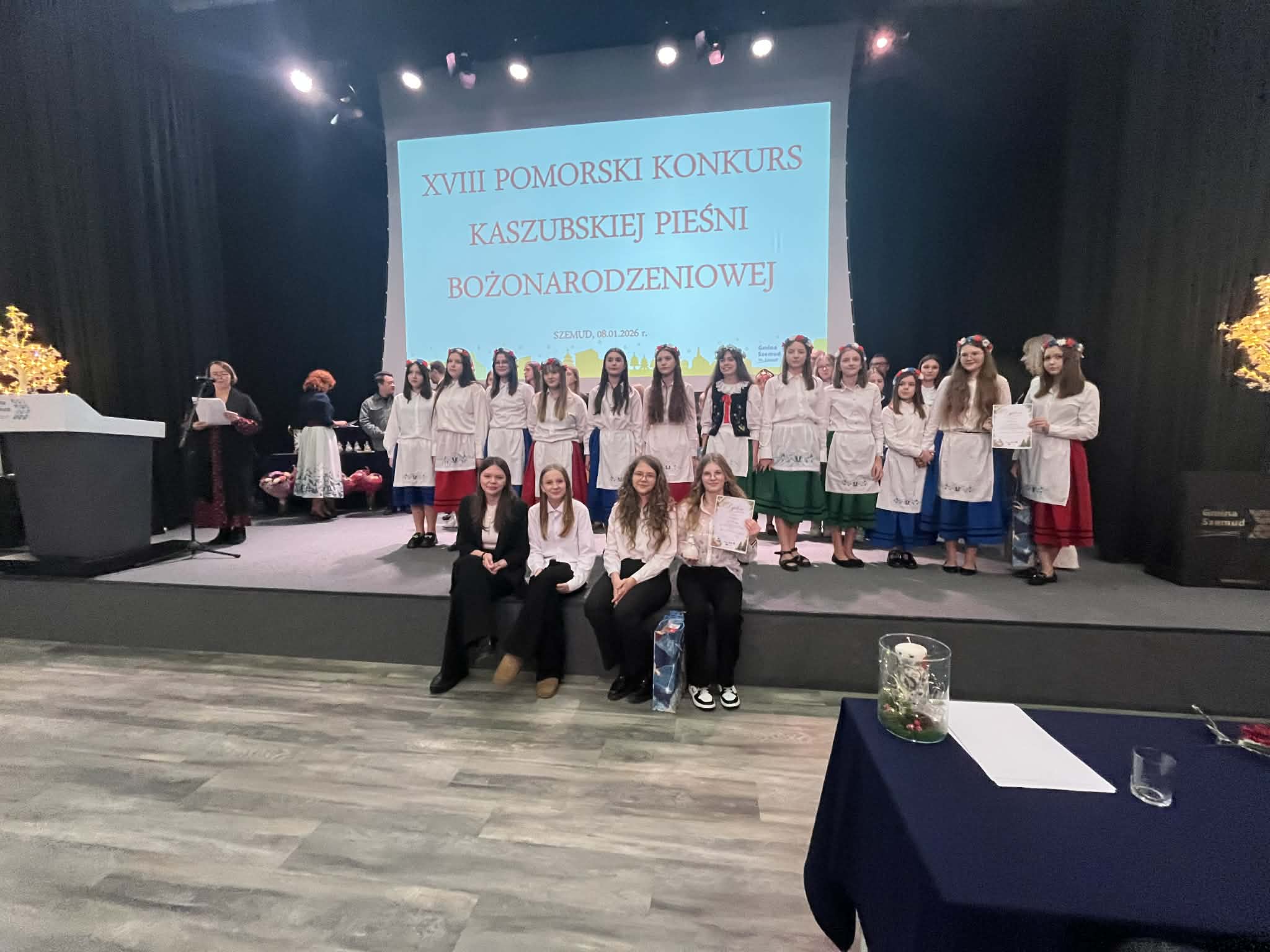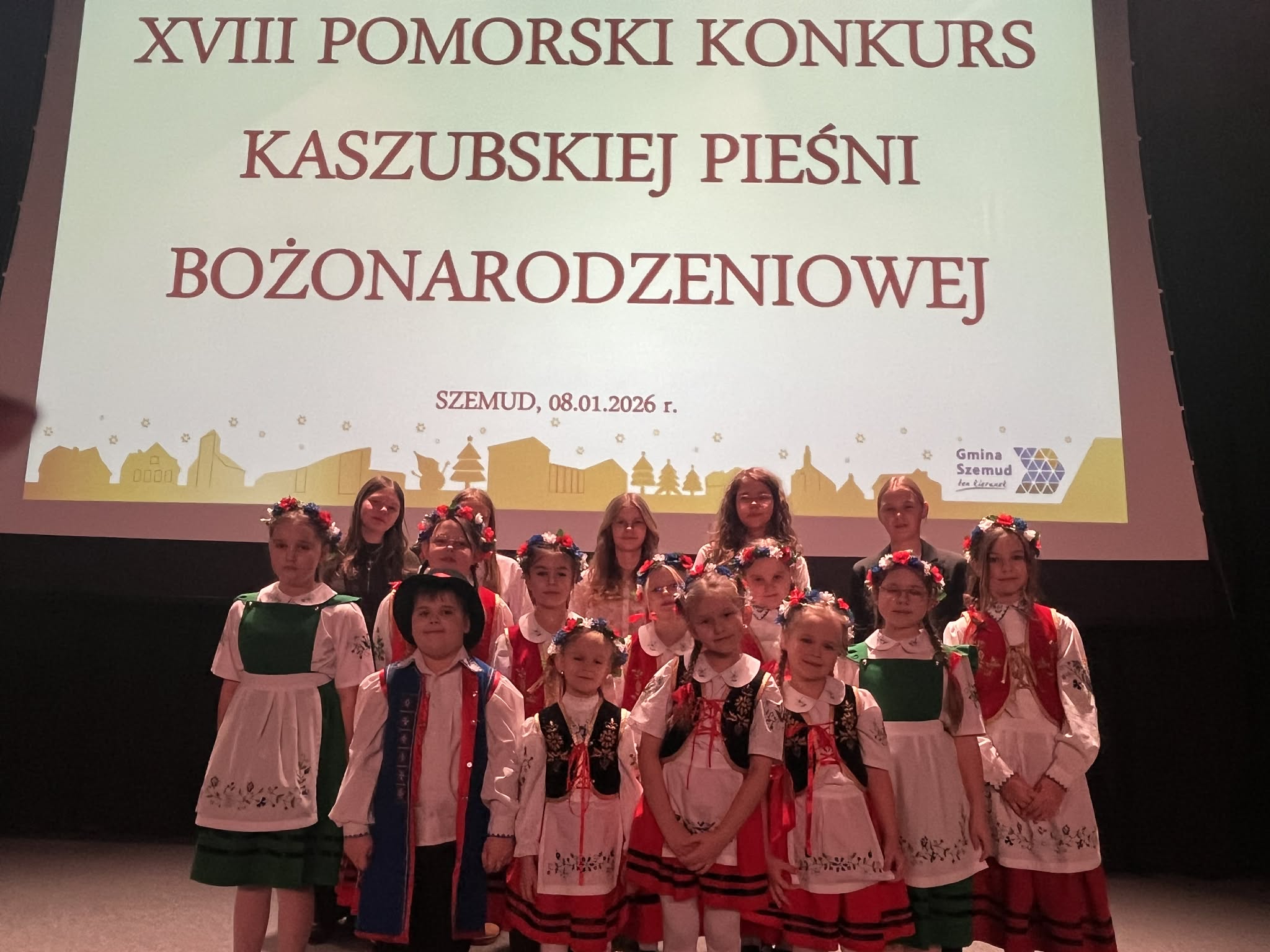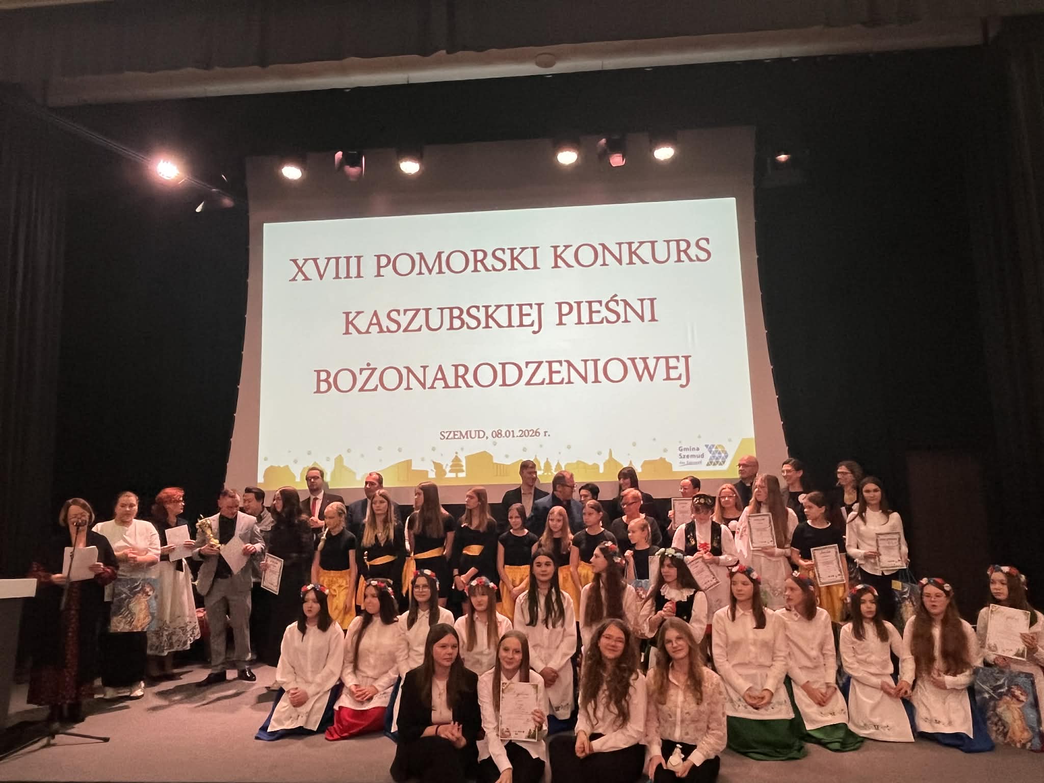 8 stycznia 2026 roku w Centrum Samorządowym w Szemudzie odbył się 17. Pomorski Konkurs Kaszubskiej Pieśni Bożonarodzeniowej, w którym wzięło udział ponad 300 uczestników z całego regionu. W konkursie z powodzeniem zaprezentowali się również uczniowie naszej szkoły, godnie ją reprezentując i odnosząc znaczące sukcesy.