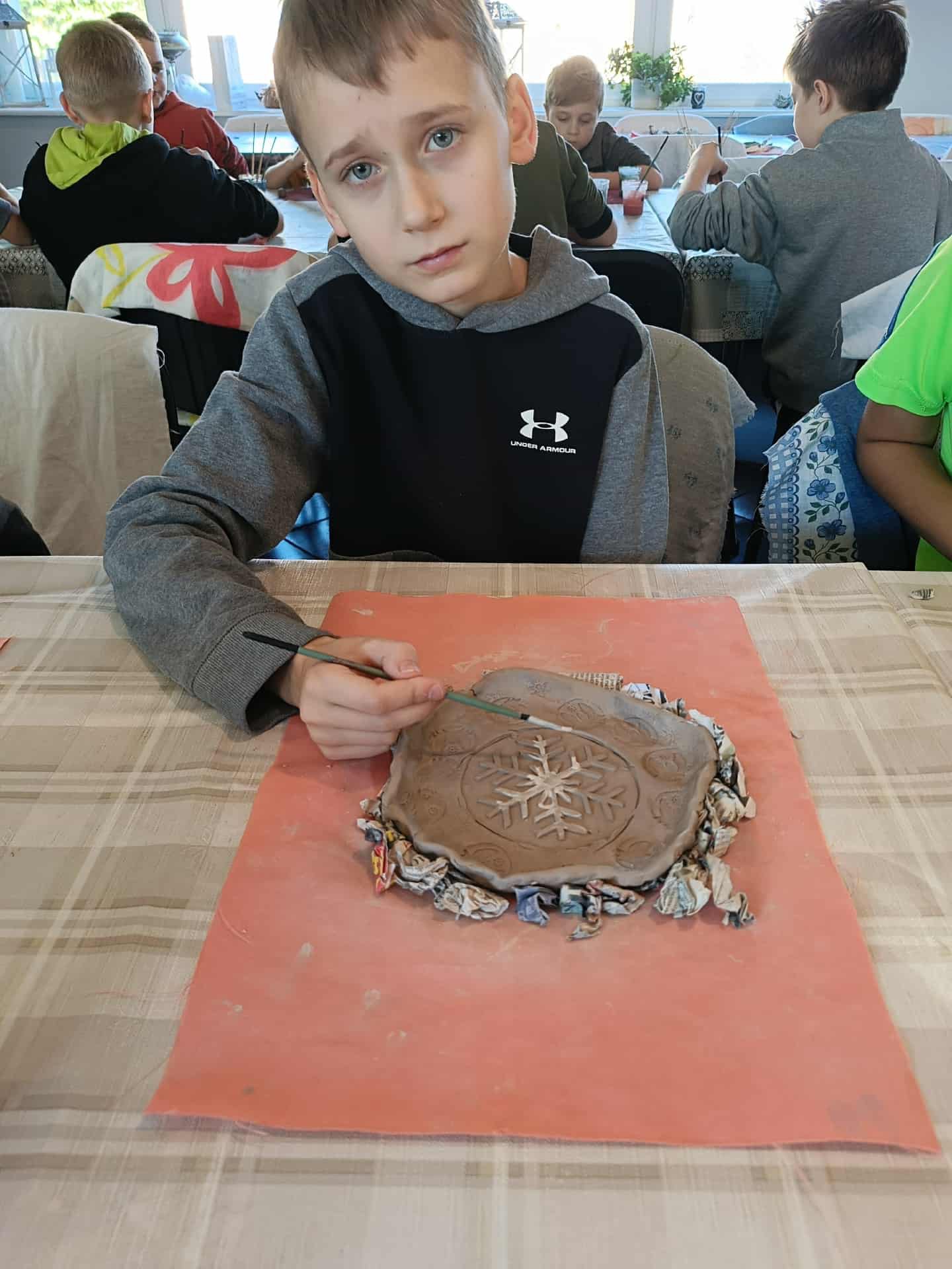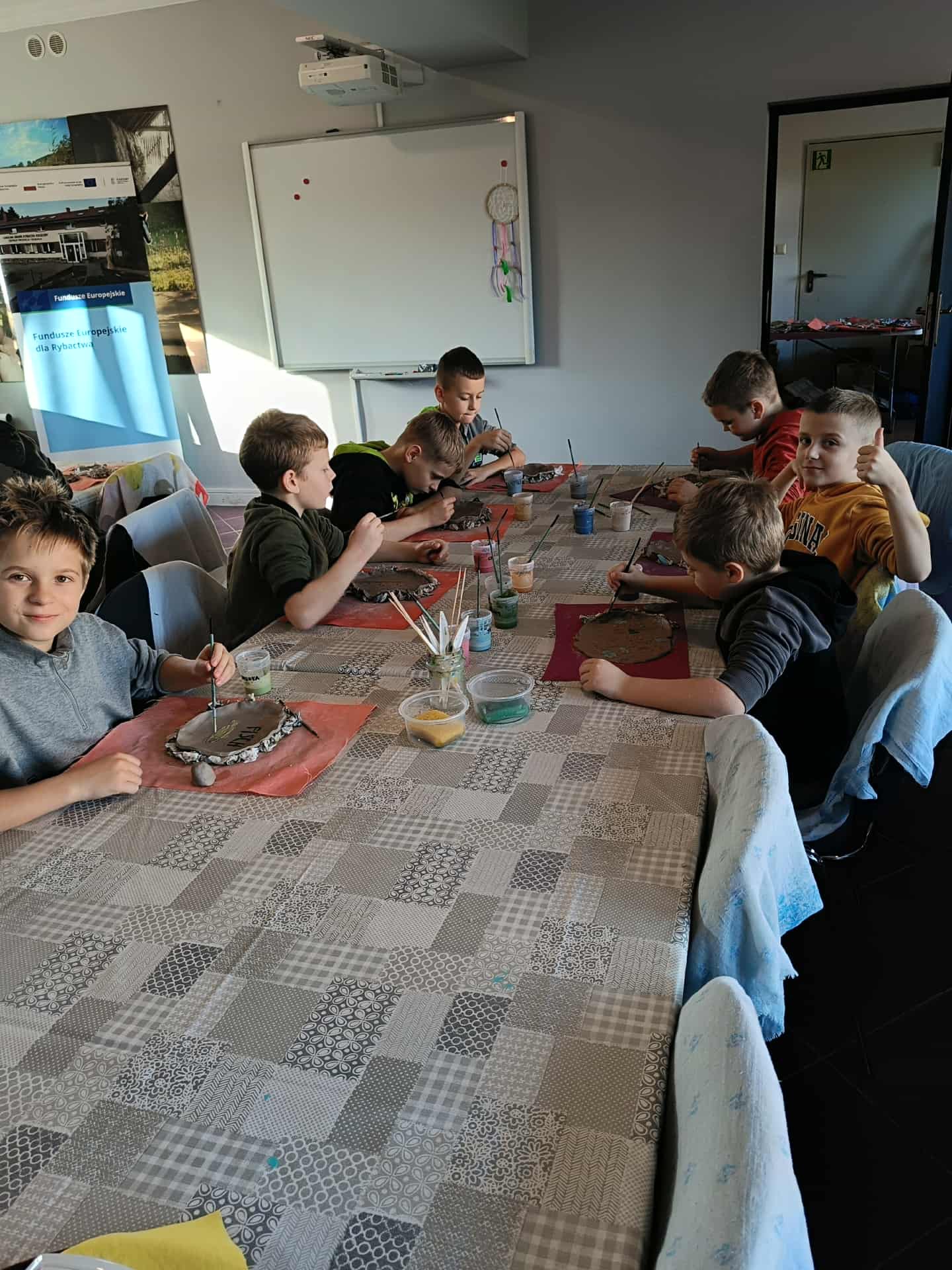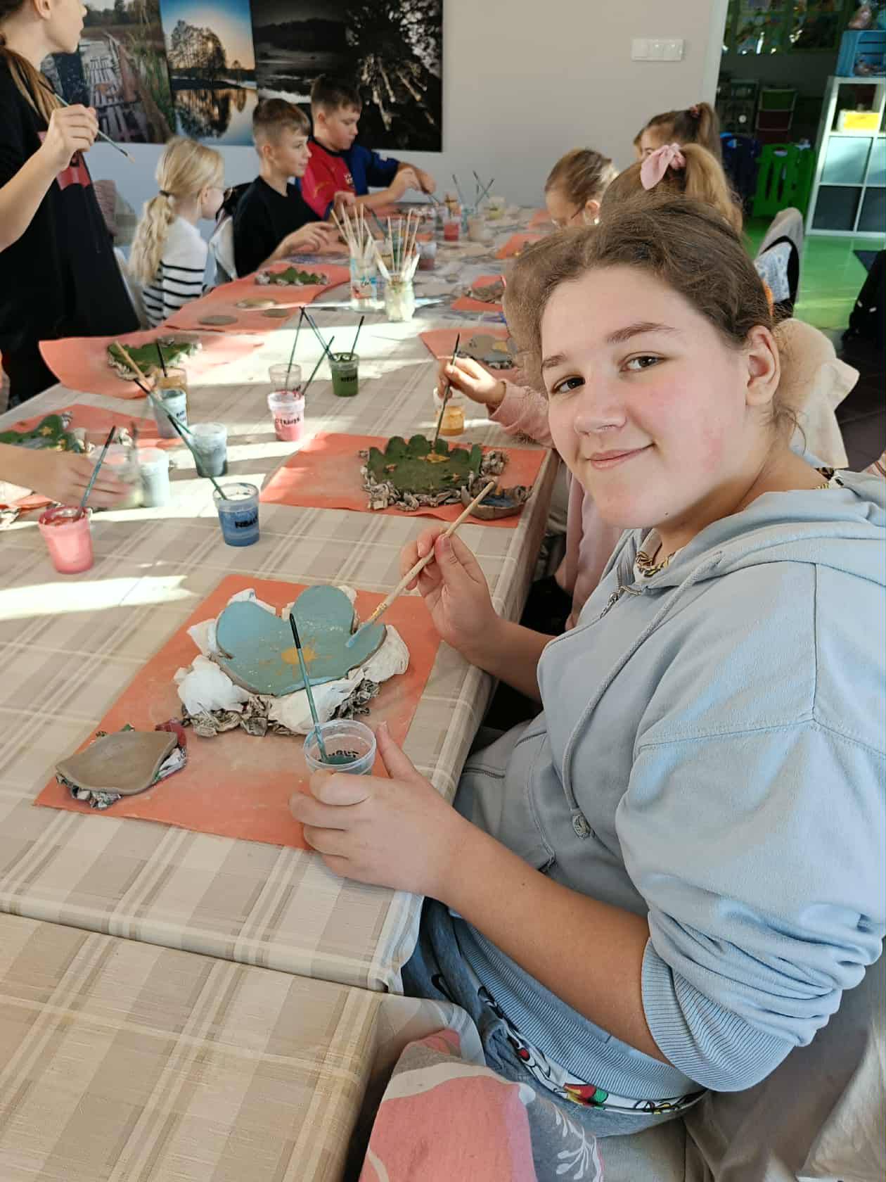 Zajęcia z ceramiki rozwinęły zmysł dotyku, orientacji przestrzennej i poczucie estetyki, a uczniowie mieli możliwość realizować swoje pomysły i cieszyć się tworzeniem pięknych, niepowtarzalnych prac. Po warsztatach udali się do Kina za Rogiem w Chmielnie na film animowany ,,Łowcy przygód ''.