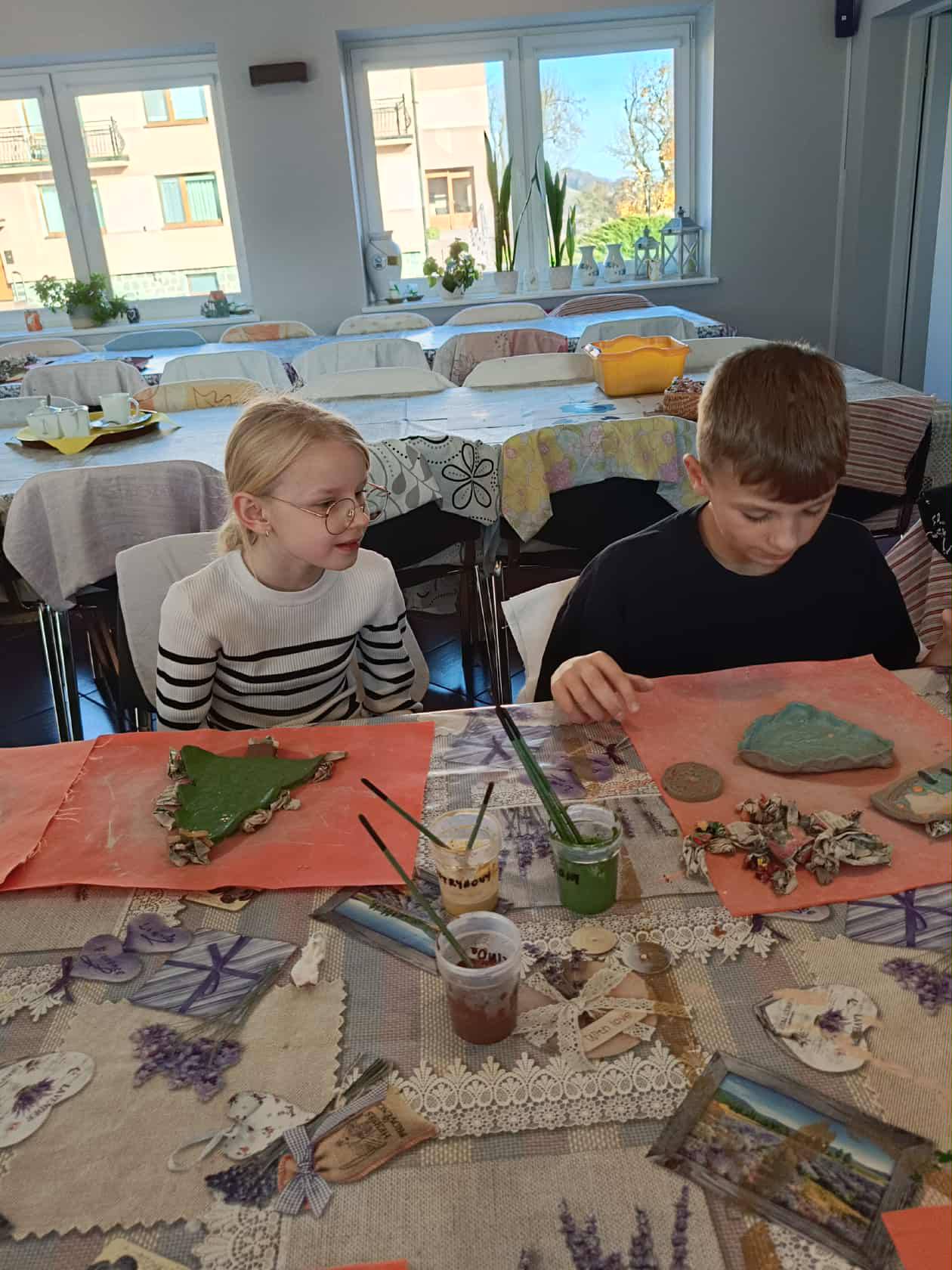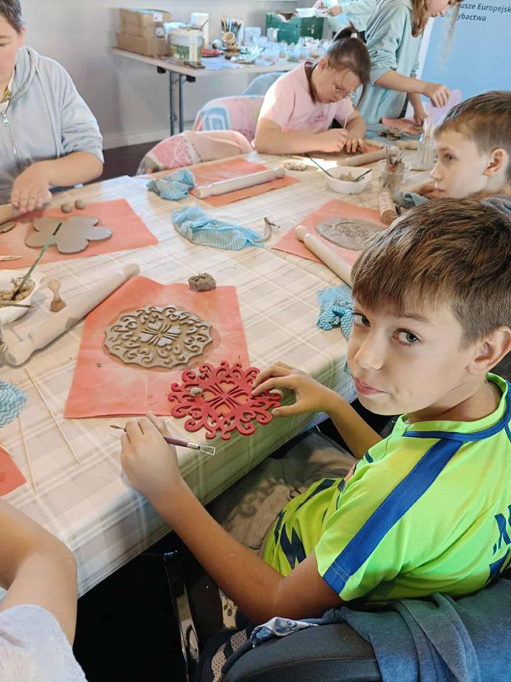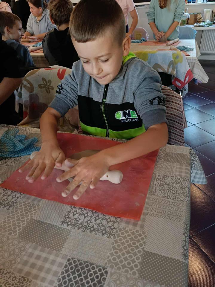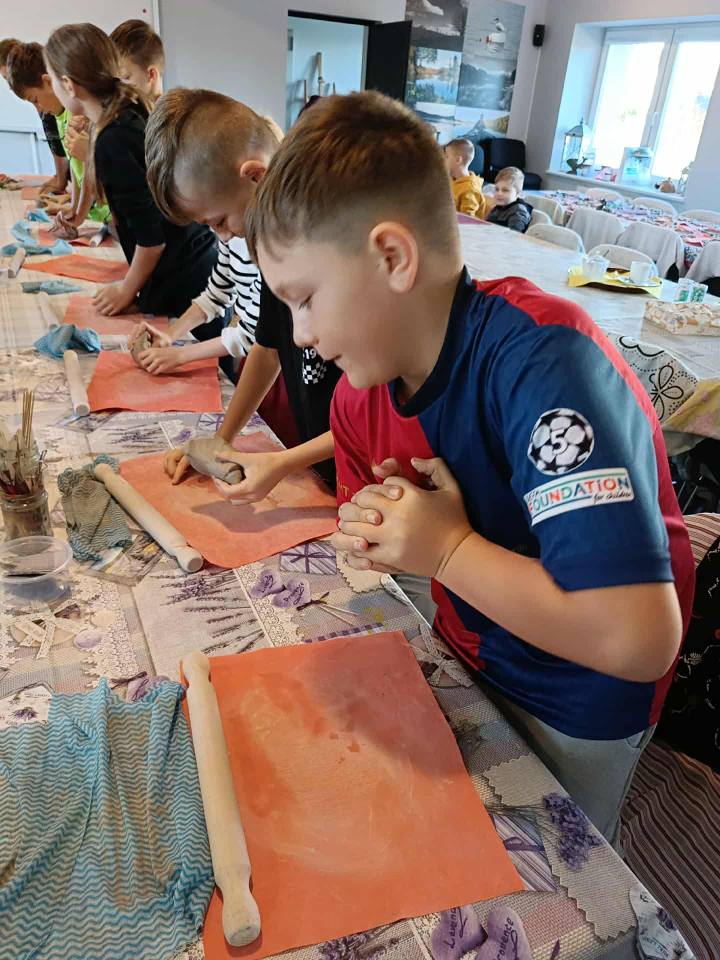 6 listopada uczniowie klas IV i V wzięli udział w warsztatach ceramicznych w Centrum Promocji i Edukacji LGR KASZUBY w Chmielnie. Uczniowie mieli możliwość samodzielnie tworzyć z gliny - lepili piękne talerze, miseczki, podkładki, itp. Z pomocą instruktorki poznawali tajniki ceramiki, ucząc się technik formowania, wygładzania i zdobienia.
