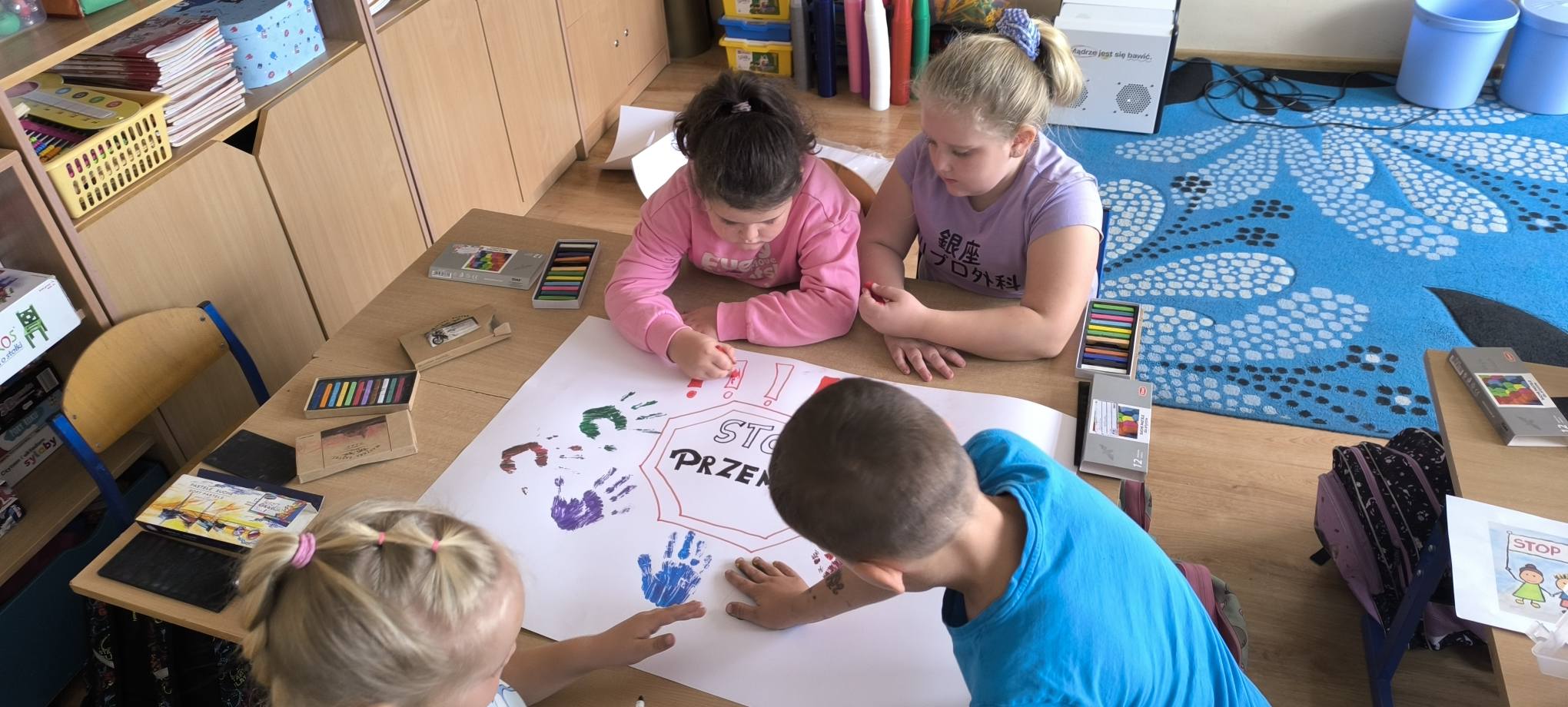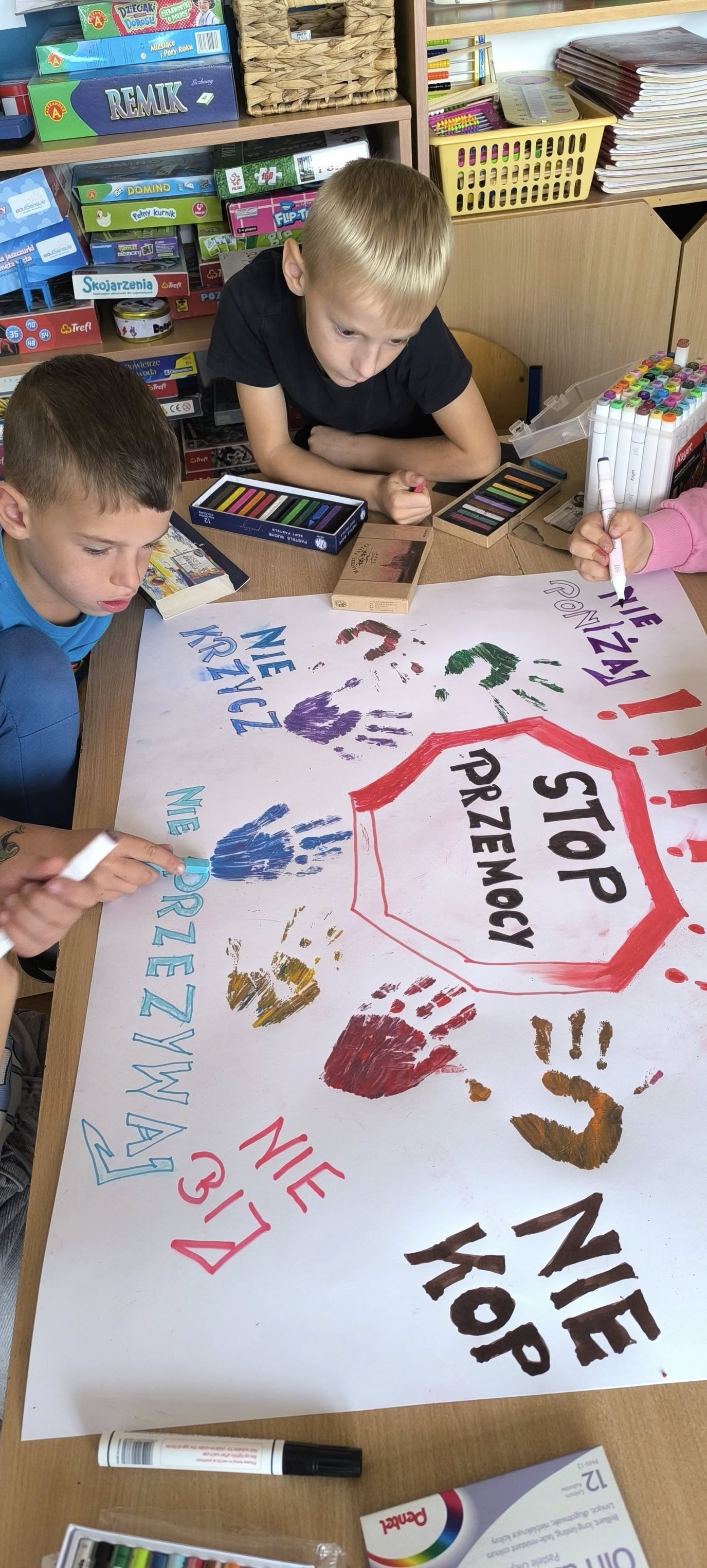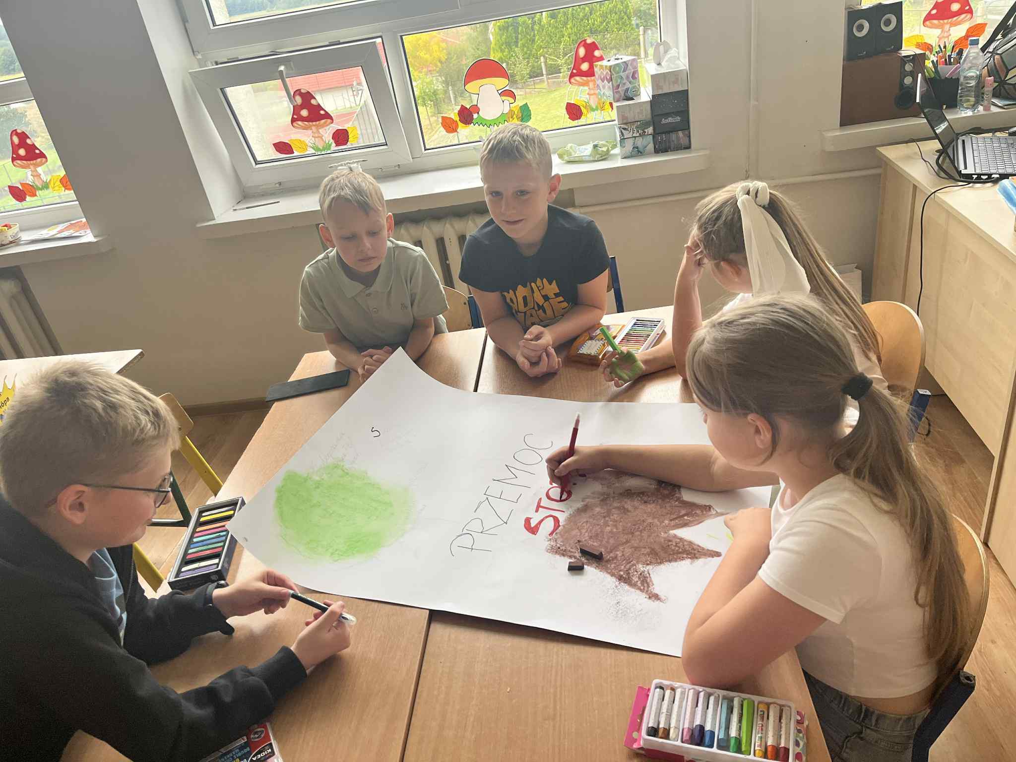 Uczniowie wykonali plakaty z hasłami przeciw przemocy – ich kreatywność i zaangażowanie zachwyciły!