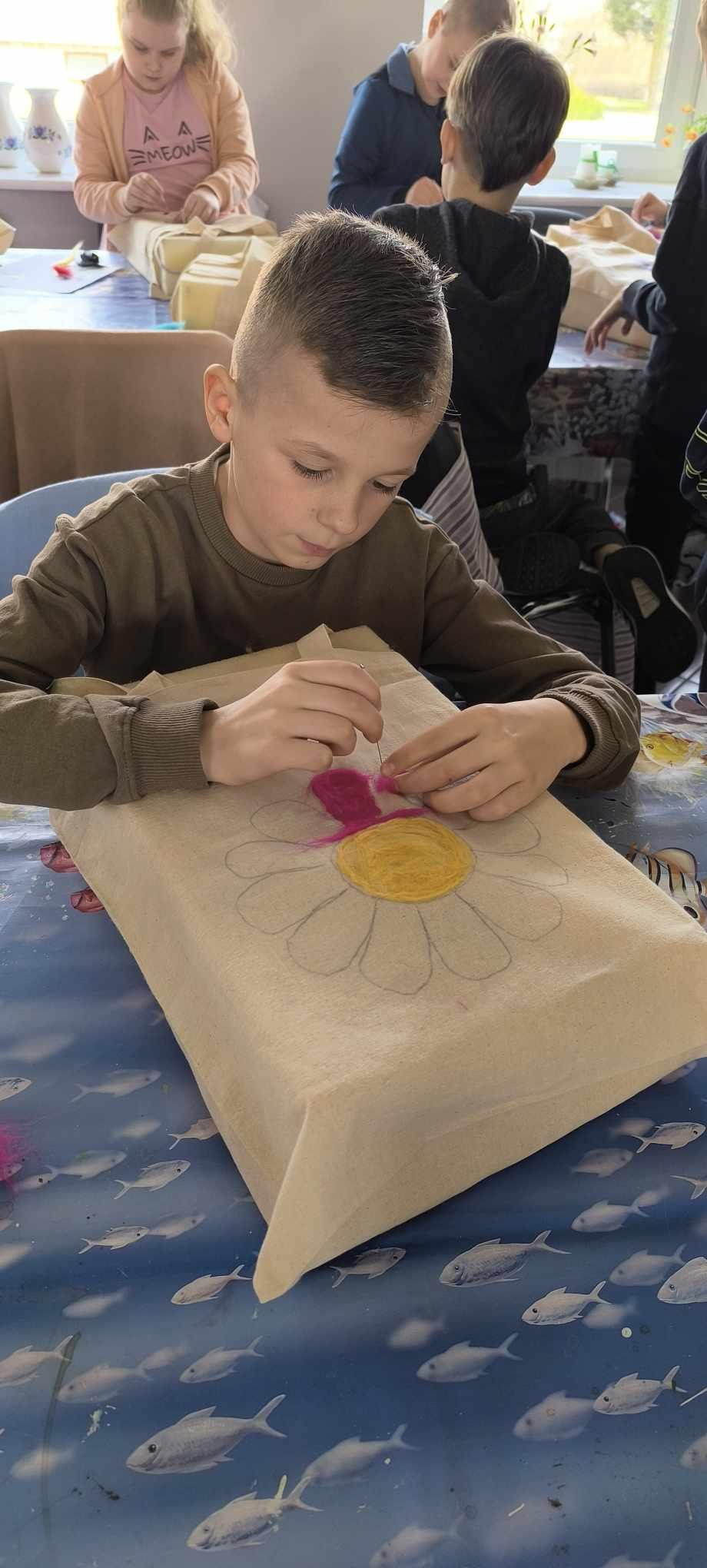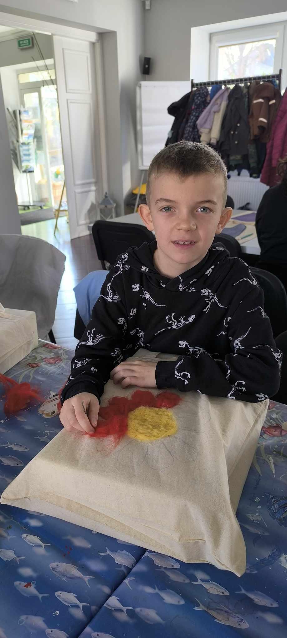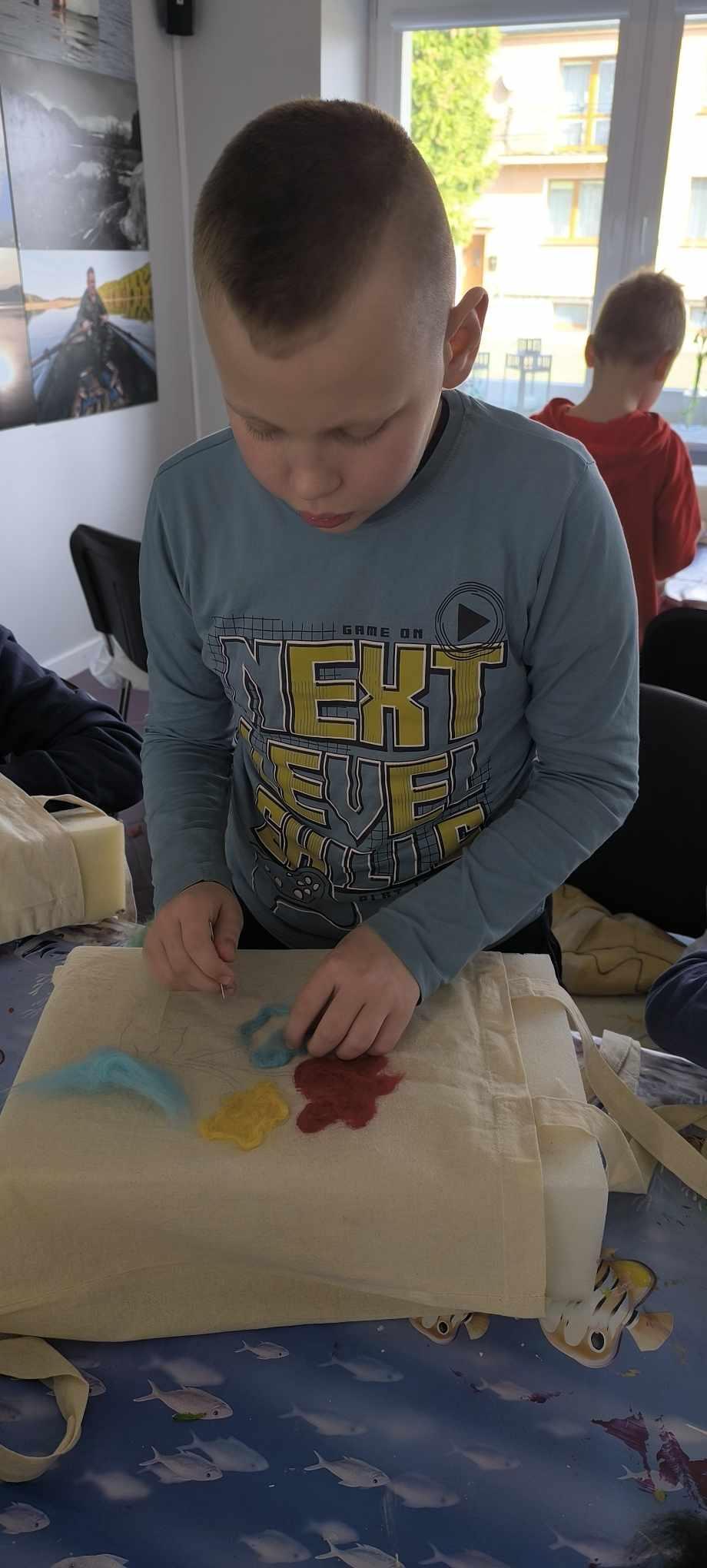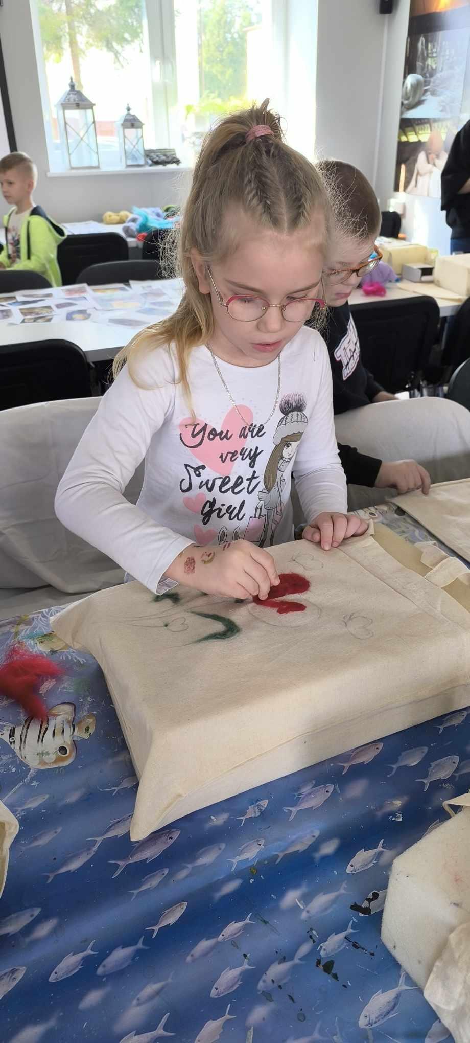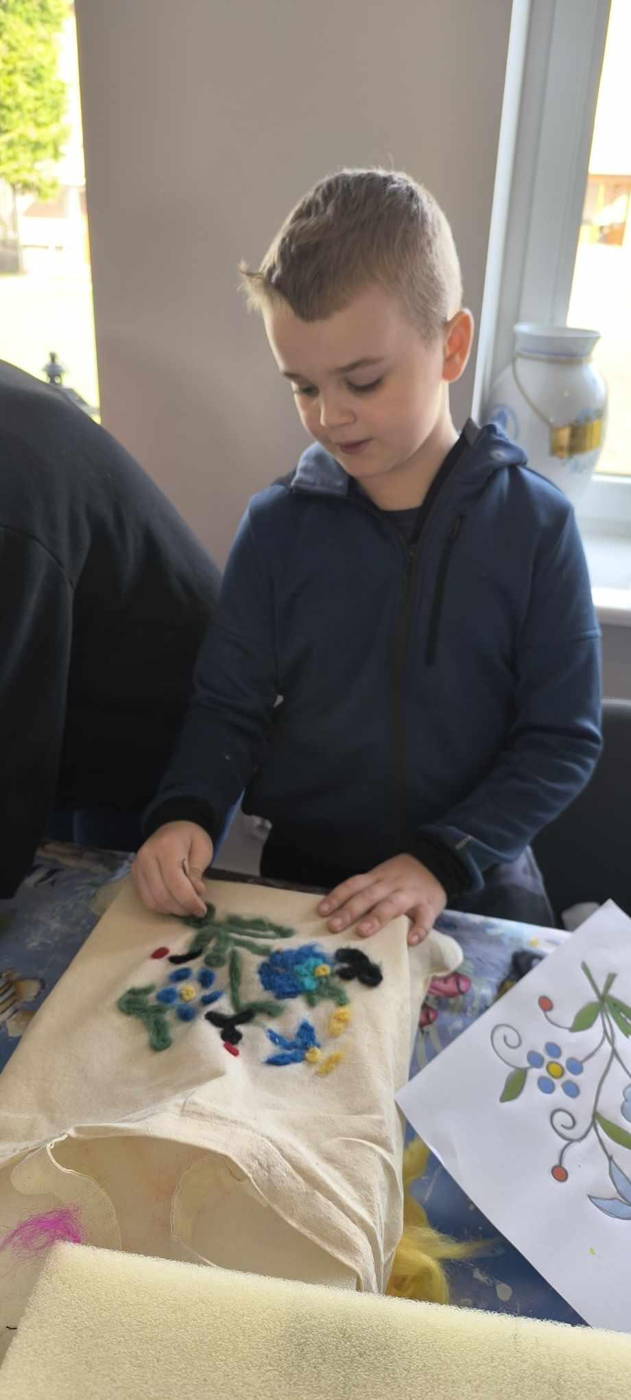 Dzisiaj mieliśmy niesamowity dzień pełen wrażeń i atrakcji. Na początek odwiedziliśmy Lokalna Grupę Rybacką w Chmielnie, gdzie sympatyczne panie przeprowadziły z nami warsztaty filcowania. Dzieci przy pomocy specjalnej igły i wełny czesankowej wykonały samodzielnie piękne kwiaty na lnianych torbach. Następnie udaliśmy się do Kina za Rogiem, gdzie wspólnie obejrzeliśmy film o czarnym kocie i biedronce. Na zakończenie pobytu w Chmielnie zjedliśmy smaczą pizzę . Najedzeni i zmęczeni udaliśmy się w drogę powrotną opowiadając sobie o wrażeniach z wycieczki.