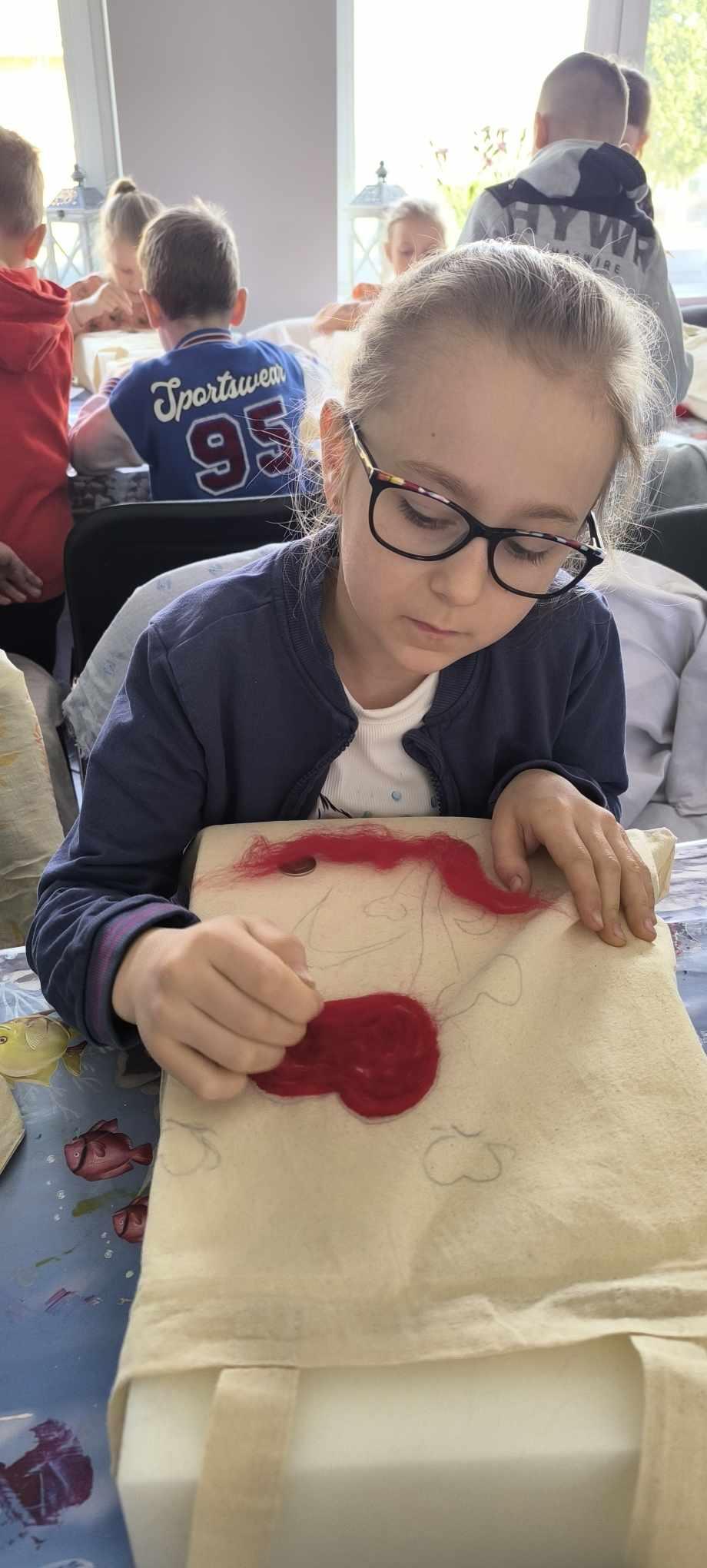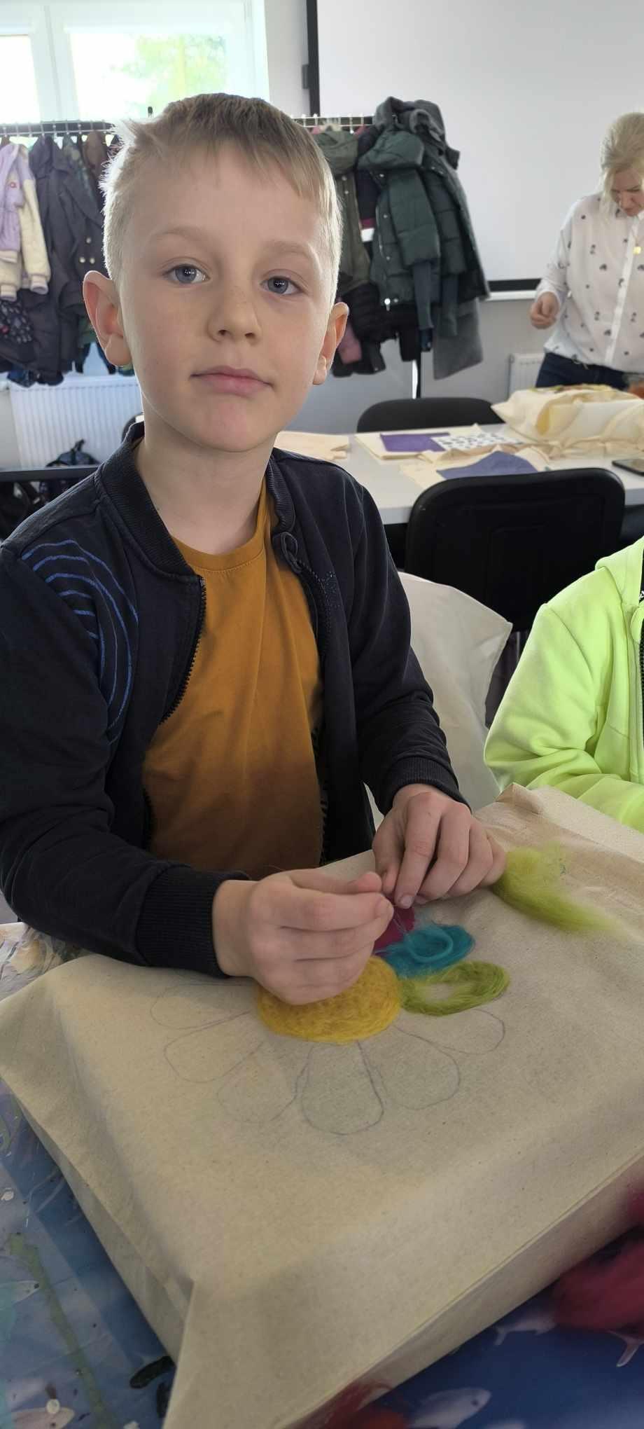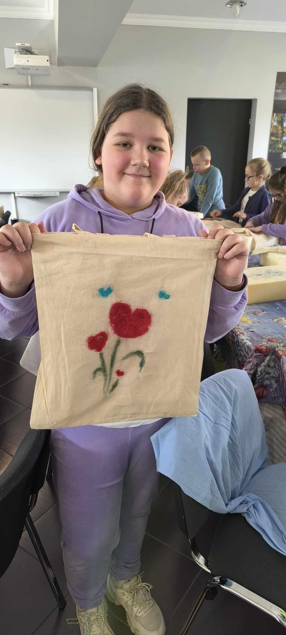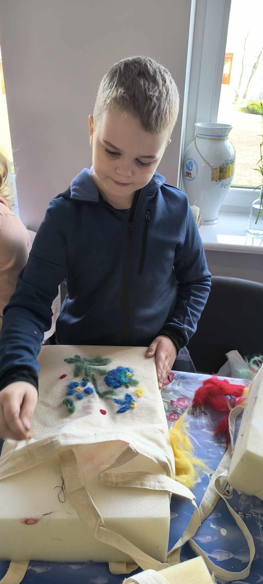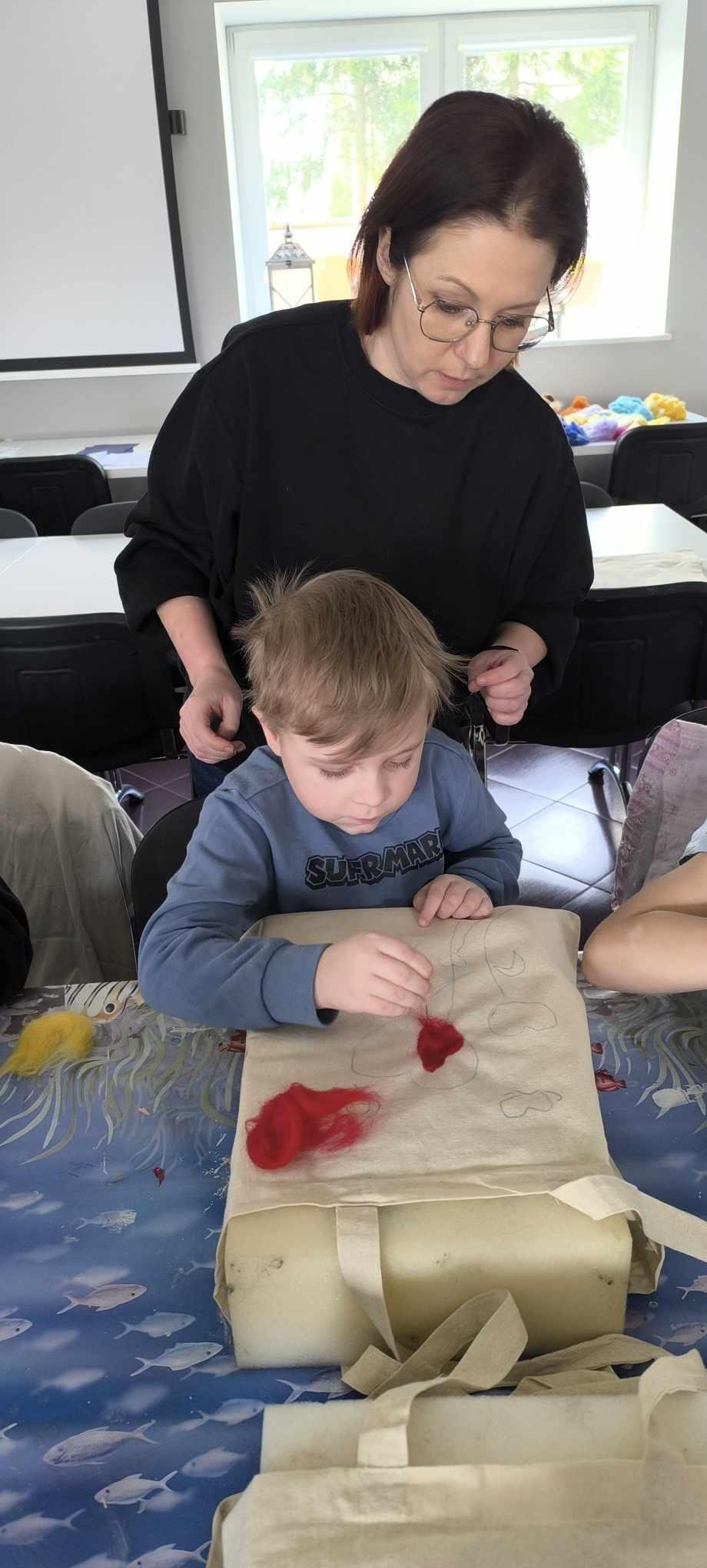 Dzisiaj mieliśmy niesamowity dzień pełen wrażeń i atrakcji. Na początek odwiedziliśmy Lokalna Grupę Rybacką w Chmielnie, gdzie sympatyczne panie przeprowadziły z nami warsztaty filcowania. Dzieci przy pomocy specjalnej igły i wełny czesankowej wykonały samodzielnie piękne kwiaty na lnianych torbach. Następnie udaliśmy się do Kina za Rogiem, gdzie wspólnie obejrzeliśmy film o czarnym kocie i biedronce. Na zakończenie pobytu w Chmielnie zjedliśmy smaczą pizzę . Najedzeni i zmęczeni udaliśmy się w drogę powrotną opowiadając sobie o wrażeniach z wycieczki.