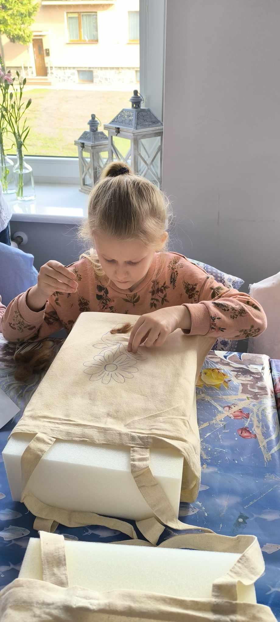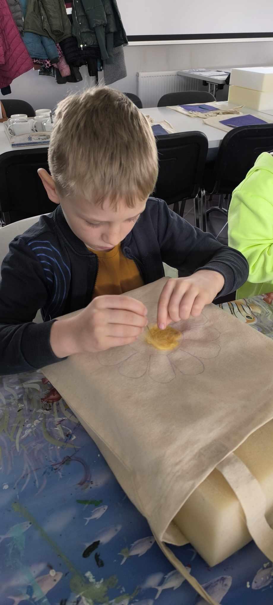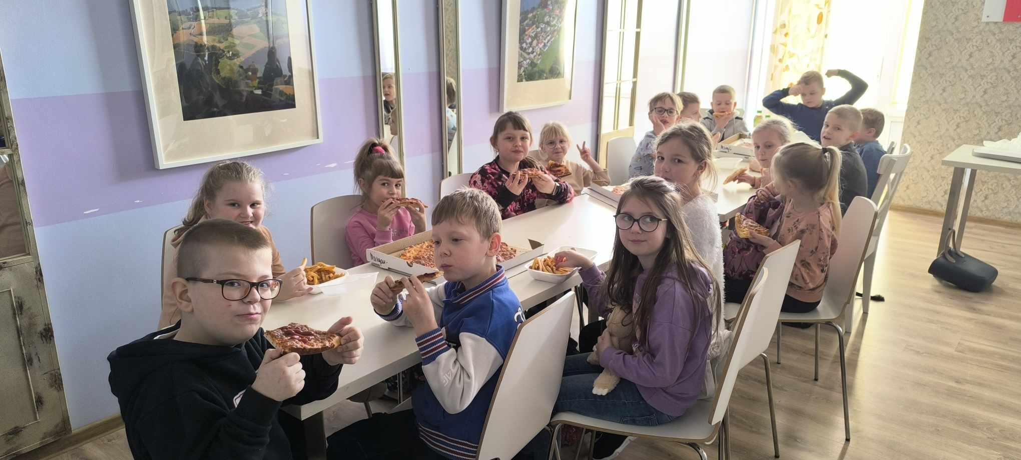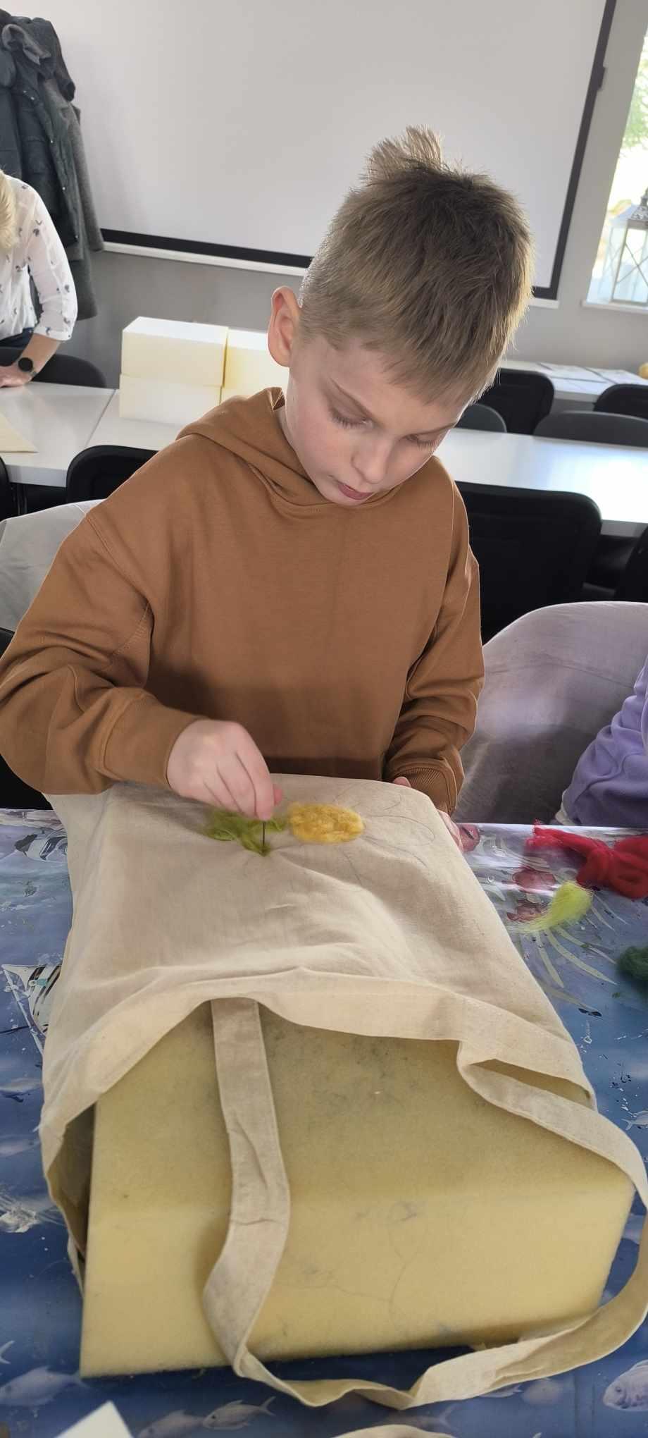 Dzisiaj mieliśmy niesamowity dzień pełen wrażeń i atrakcji. Na początek odwiedziliśmy Lokalna Grupę Rybacką w Chmielnie, gdzie sympatyczne panie przeprowadziły z nami warsztaty filcowania. Dzieci przy pomocy specjalnej igły i wełny czesankowej wykonały samodzielnie piękne kwiaty na lnianych torbach. Następnie udaliśmy się do Kina za Rogiem, gdzie wspólnie obejrzeliśmy film o czarnym kocie i biedronce. Na zakończenie pobytu w Chmielnie zjedliśmy smaczą pizzę . Najedzeni i zmęczeni udaliśmy się w drogę powrotną opowiadając sobie o wrażeniach z wycieczki.