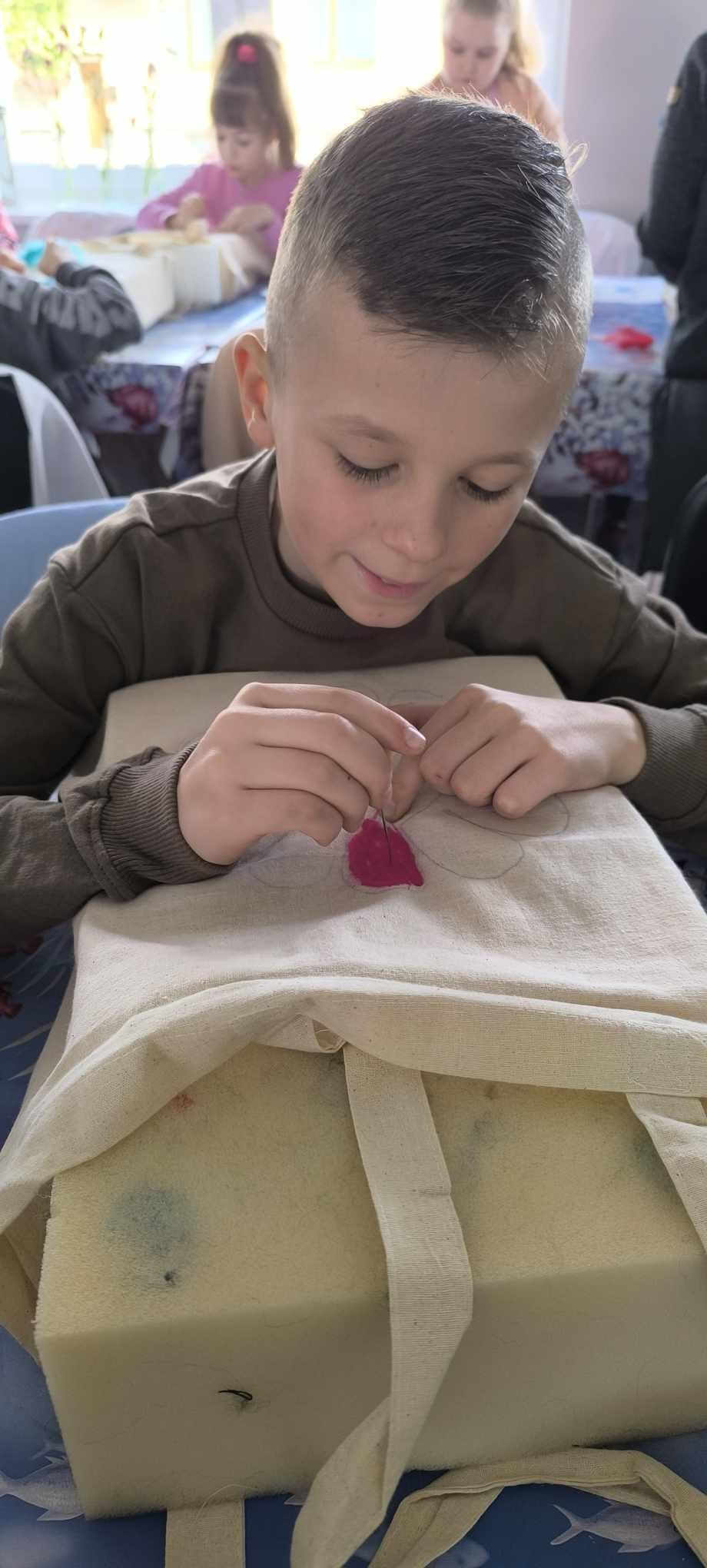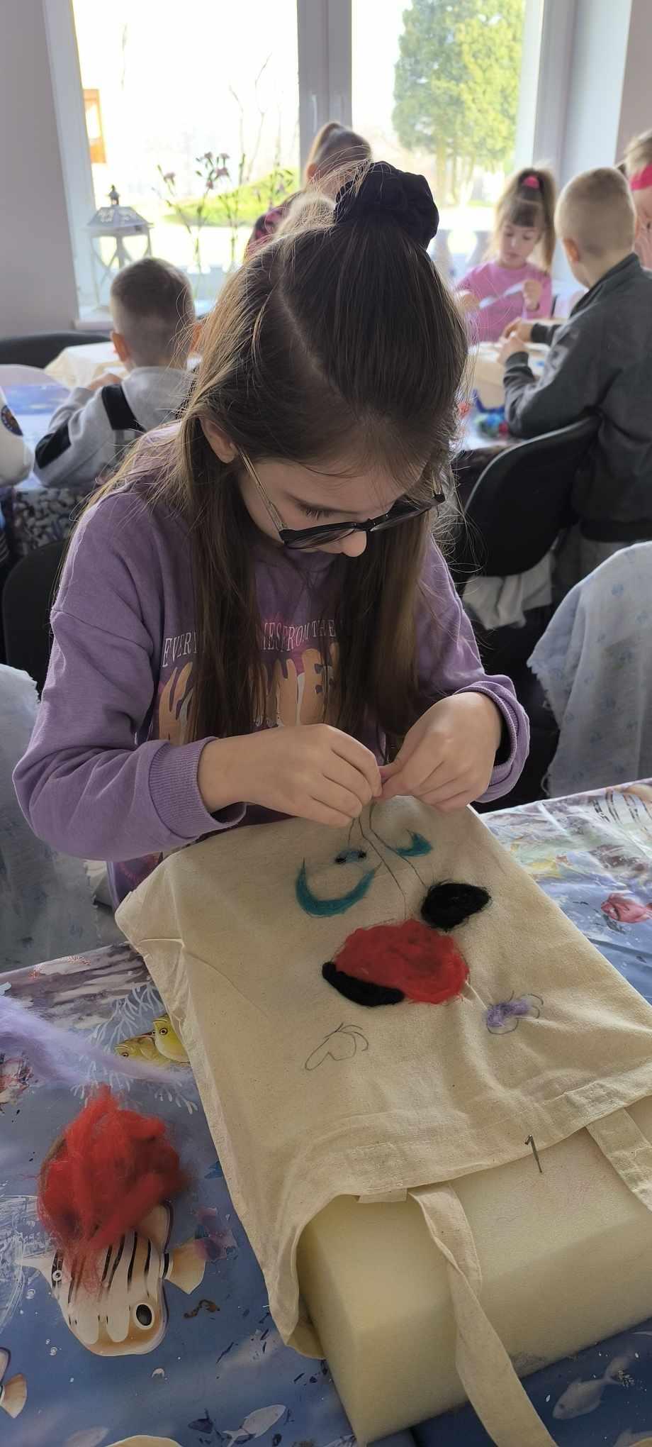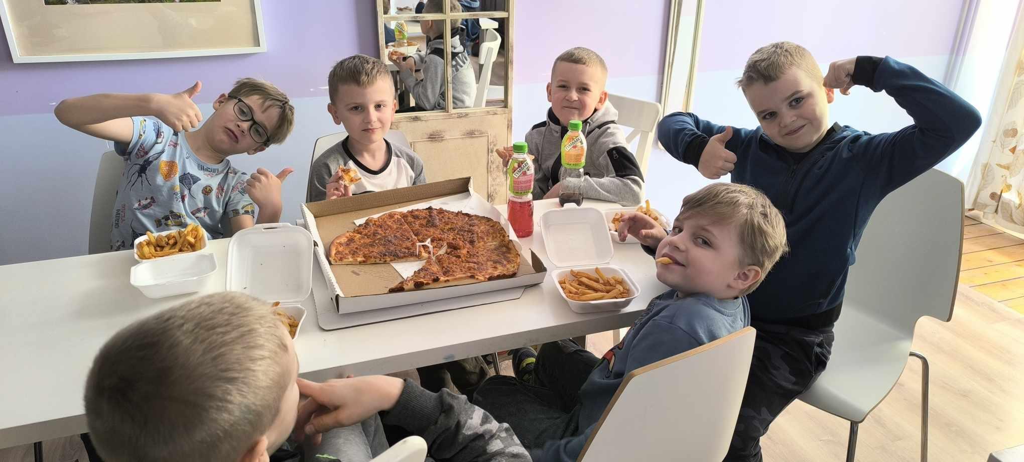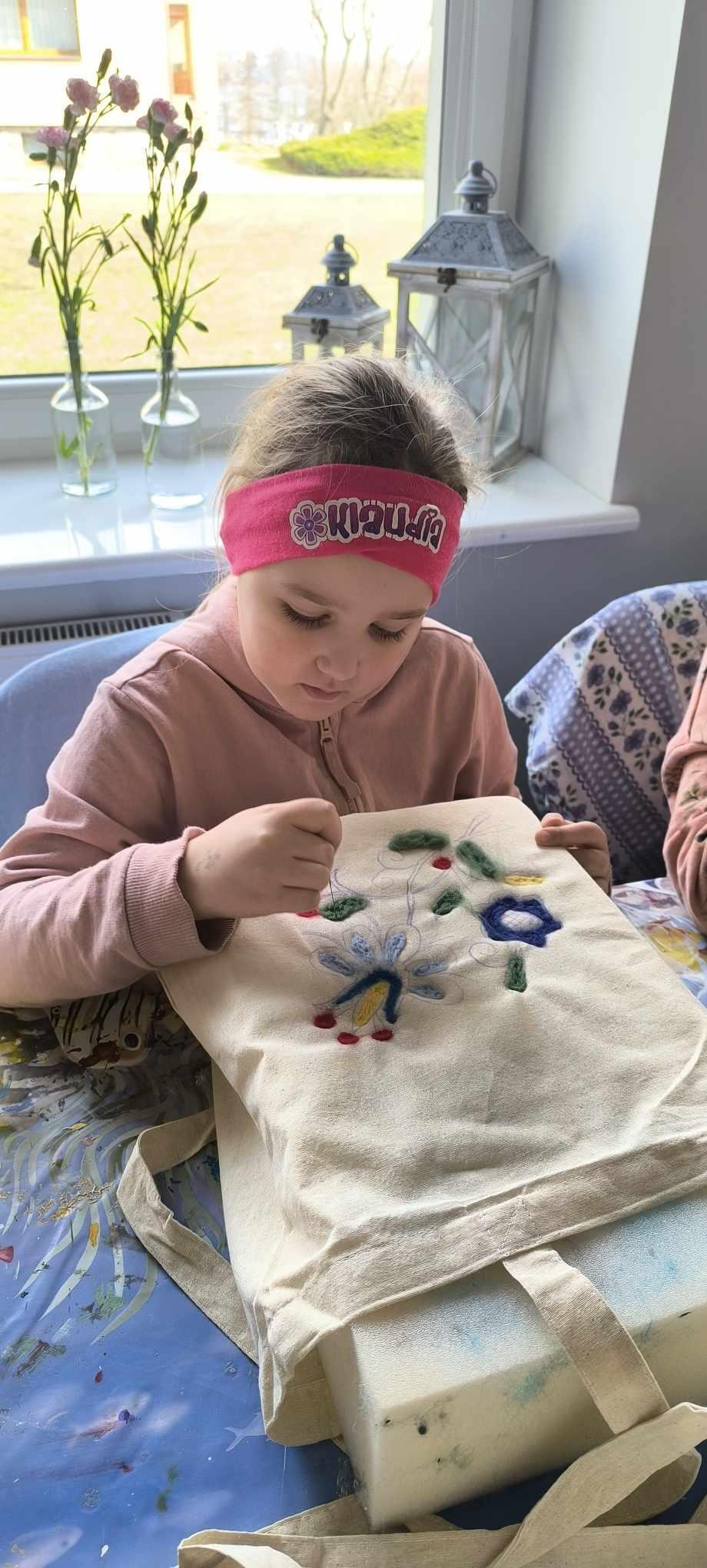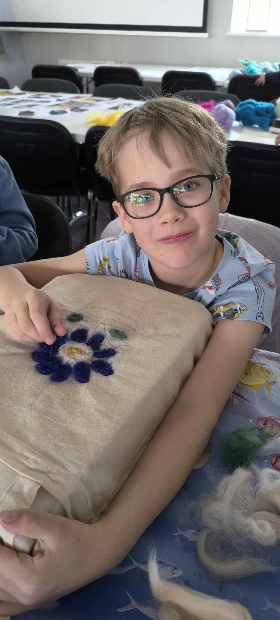 Dzisiaj mieliśmy niesamowity dzień pełen wrażeń i atrakcji. Na początek odwiedziliśmy Lokalna Grupę Rybacką w Chmielnie, gdzie sympatyczne panie przeprowadziły z nami warsztaty filcowania. Dzieci przy pomocy specjalnej igły i wełny czesankowej wykonały samodzielnie piękne kwiaty na lnianych torbach. Następnie udaliśmy się do Kina za Rogiem, gdzie wspólnie obejrzeliśmy film o czarnym kocie i biedronce. Na zakończenie pobytu w Chmielnie zjedliśmy smaczą pizzę . Najedzeni i zmęczeni udaliśmy się w drogę powrotną opowiadając sobie o wrażeniach z wycieczki.