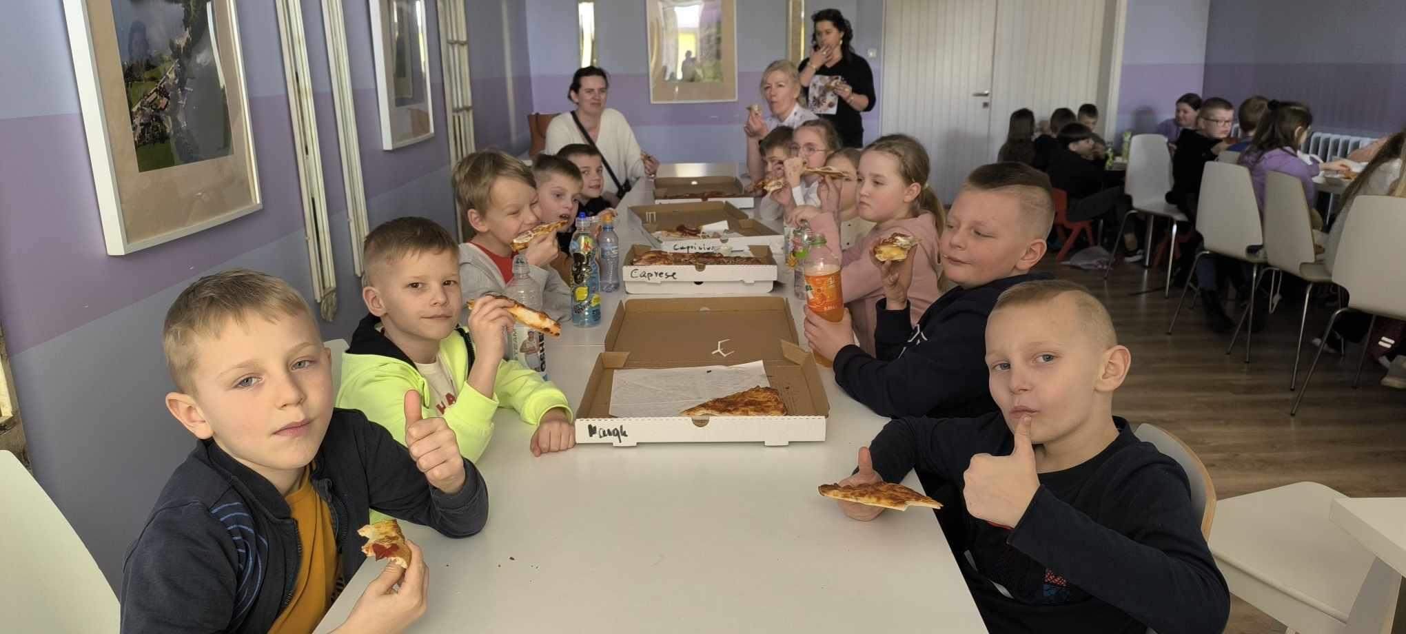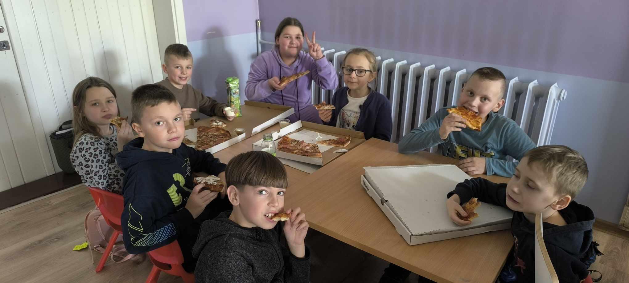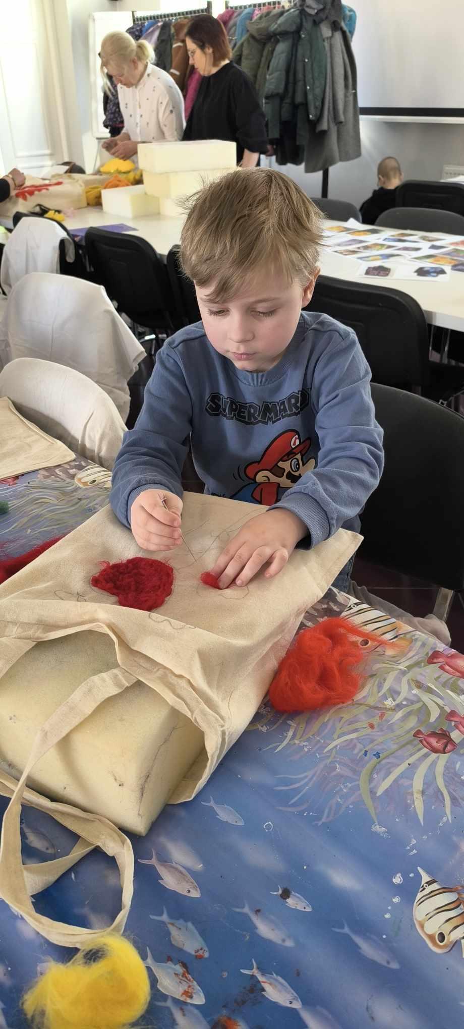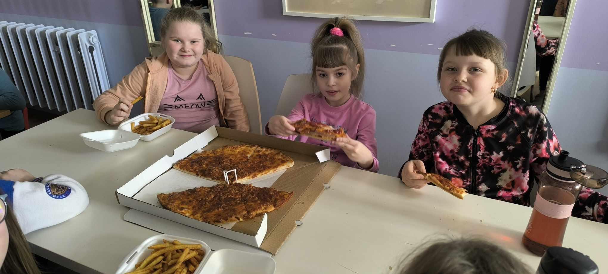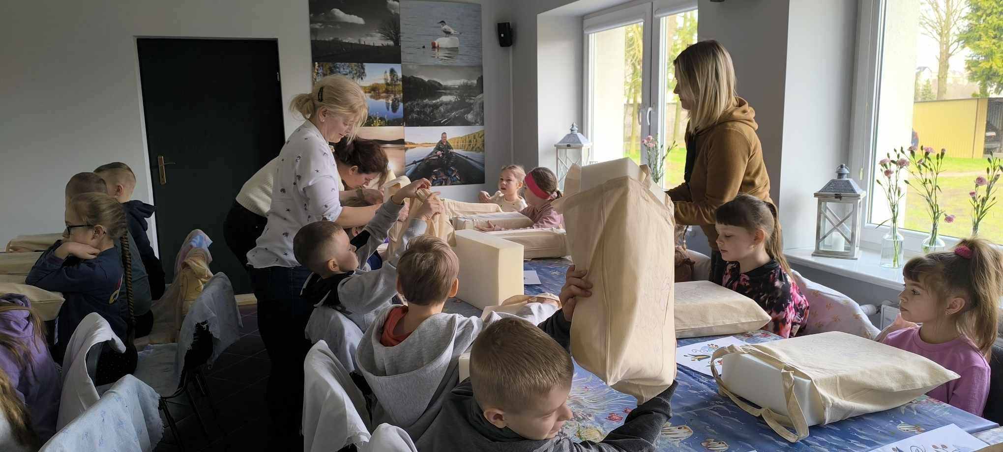 Dzisiaj mieliśmy niesamowity dzień pełen wrażeń i atrakcji. Na początek odwiedziliśmy Lokalna Grupę Rybacką w Chmielnie, gdzie sympatyczne panie przeprowadziły z nami warsztaty filcowania. Dzieci przy pomocy specjalnej igły i wełny czesankowej wykonały samodzielnie piękne kwiaty na lnianych torbach. Następnie udaliśmy się do Kina za Rogiem, gdzie wspólnie obejrzeliśmy film o czarnym kocie i biedronce. Na zakończenie pobytu w Chmielnie zjedliśmy smaczą pizzę . Najedzeni i zmęczeni udaliśmy się w drogę powrotną opowiadając sobie o wrażeniach z wycieczki.