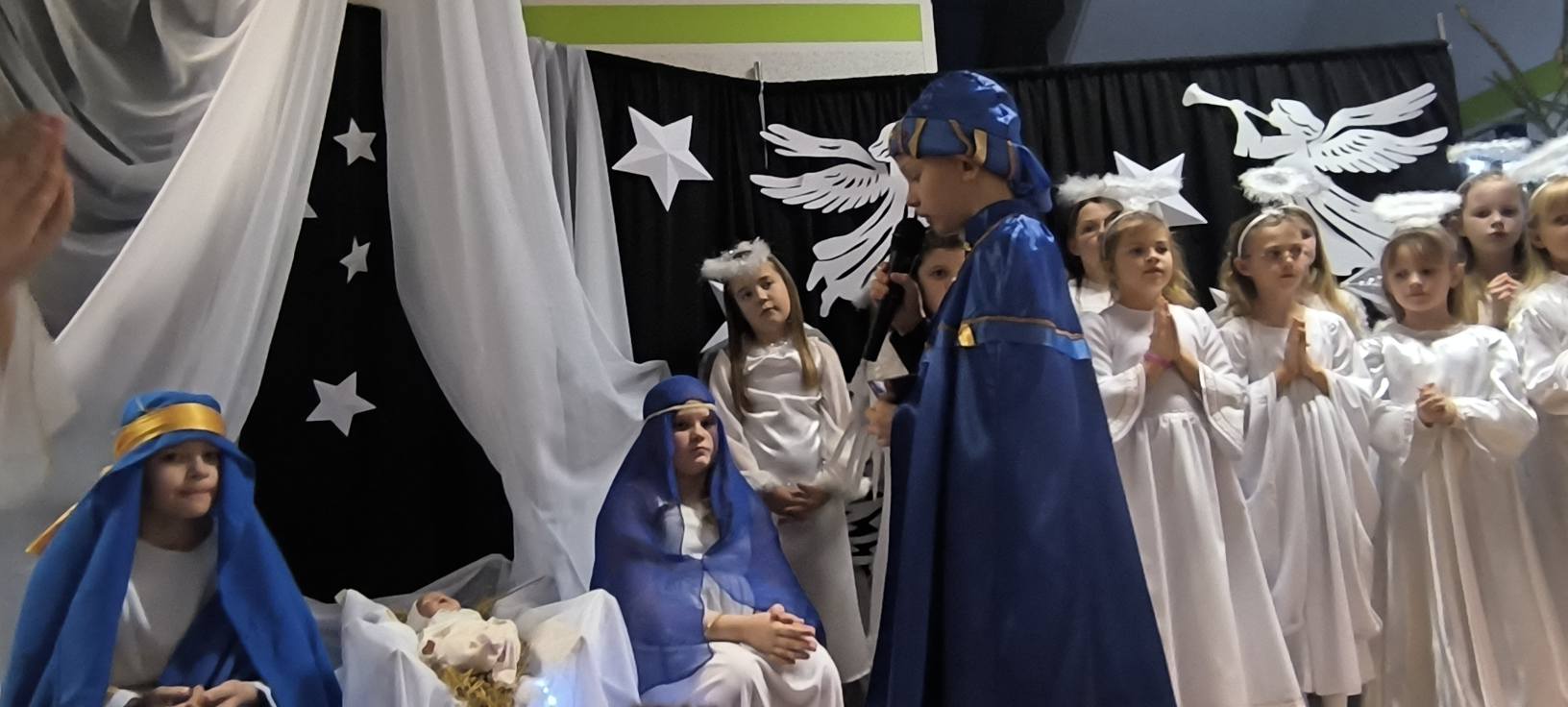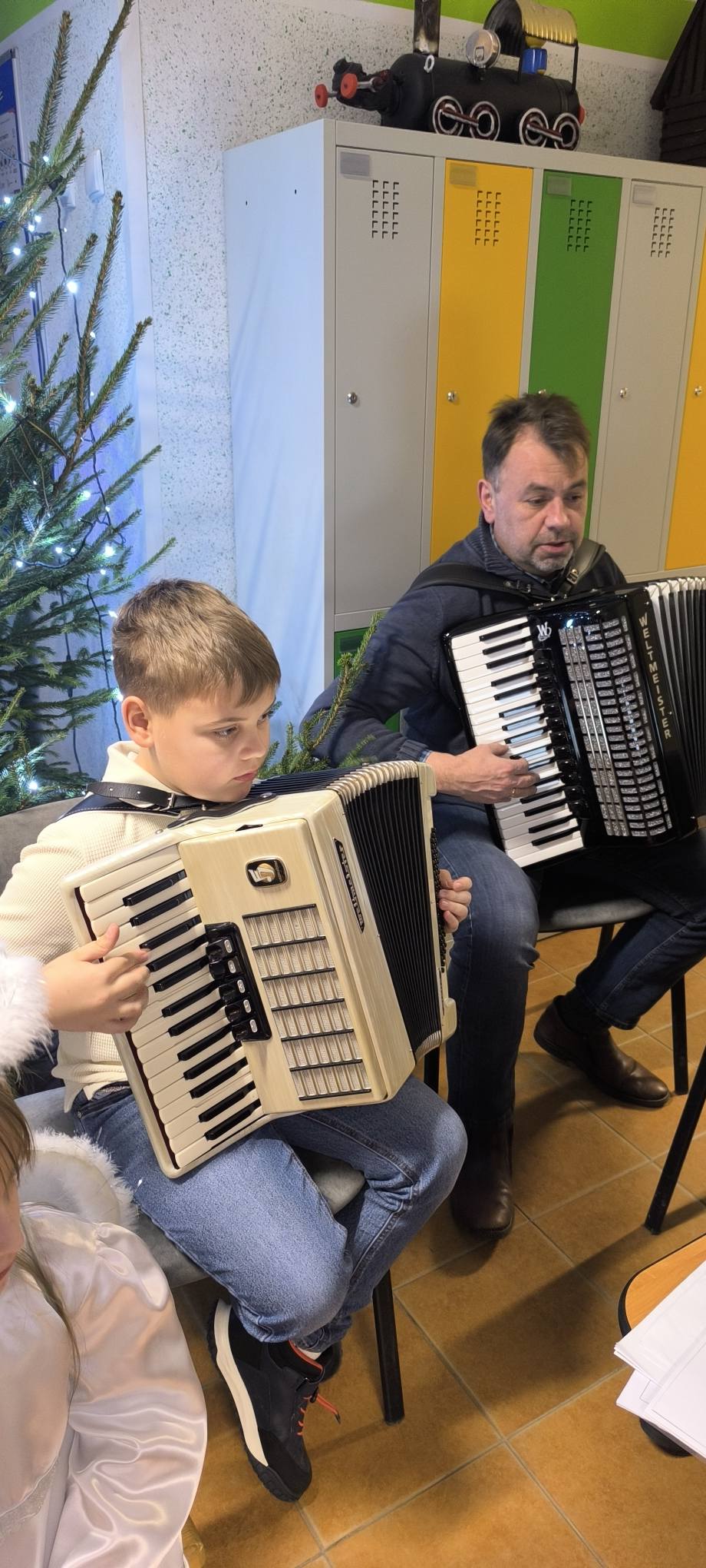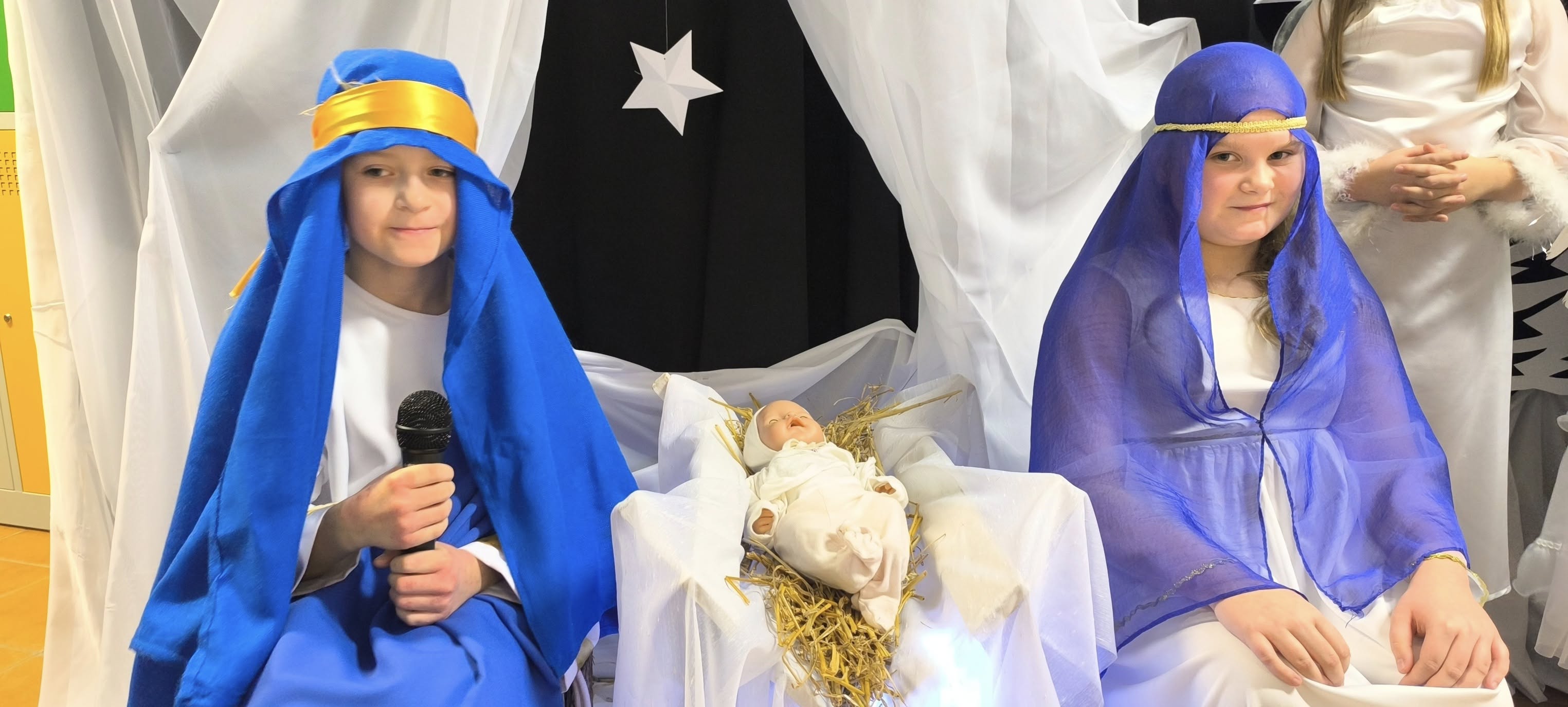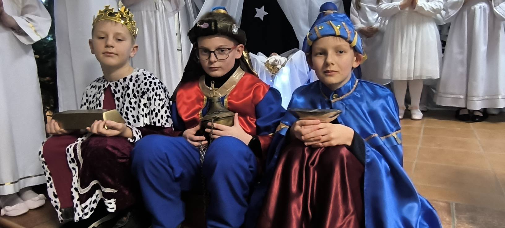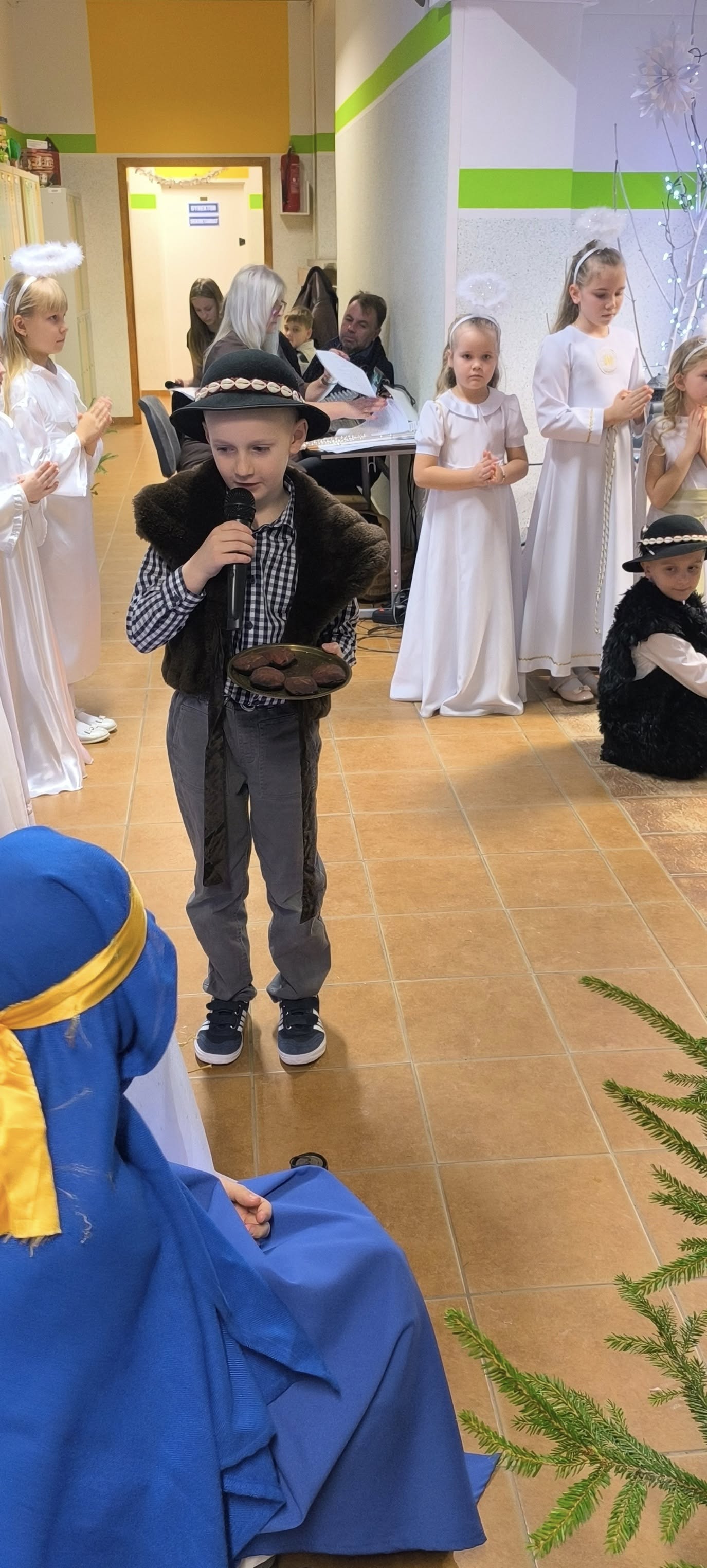Podczas spotkania uczniowie naszej szkoły zaprezentowali piękne jasełka. Następnie wspólnie kolędowaliśmy, śpiewając znane i lubiane kolędy przy akompaniamencie akordeonów.