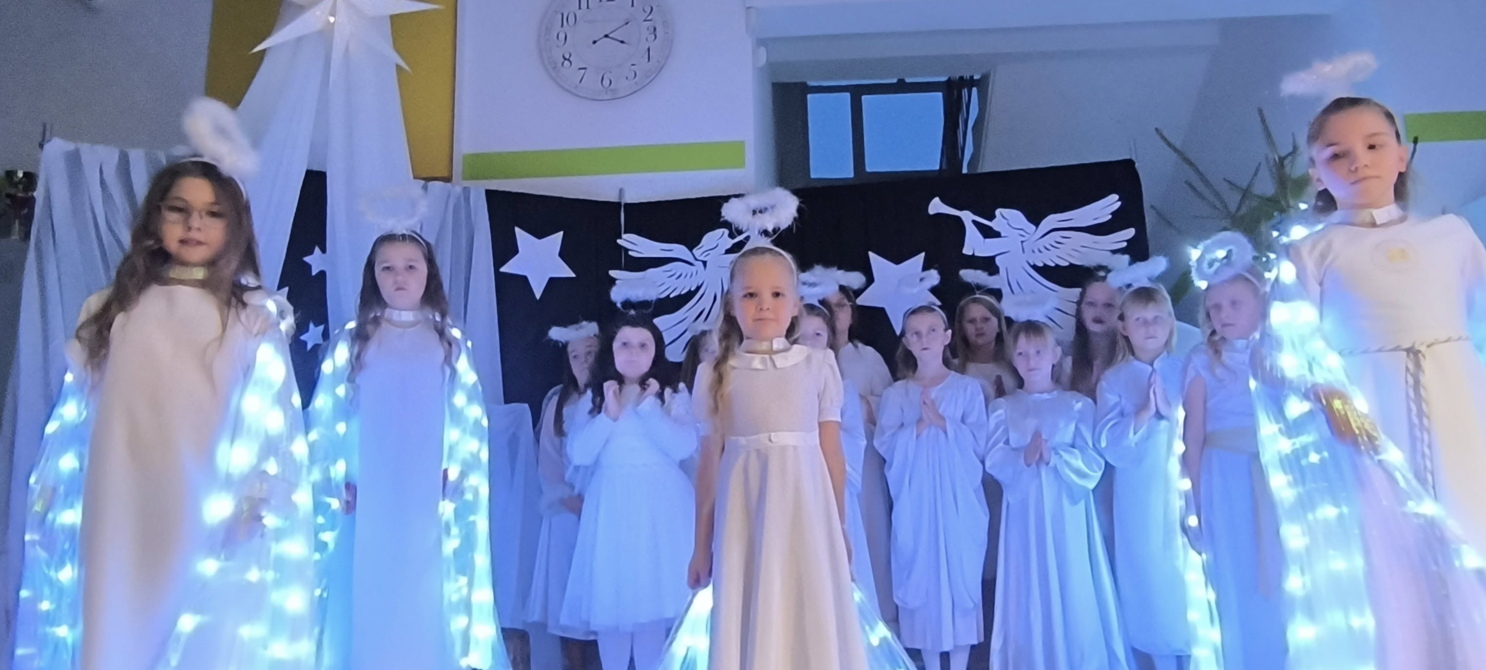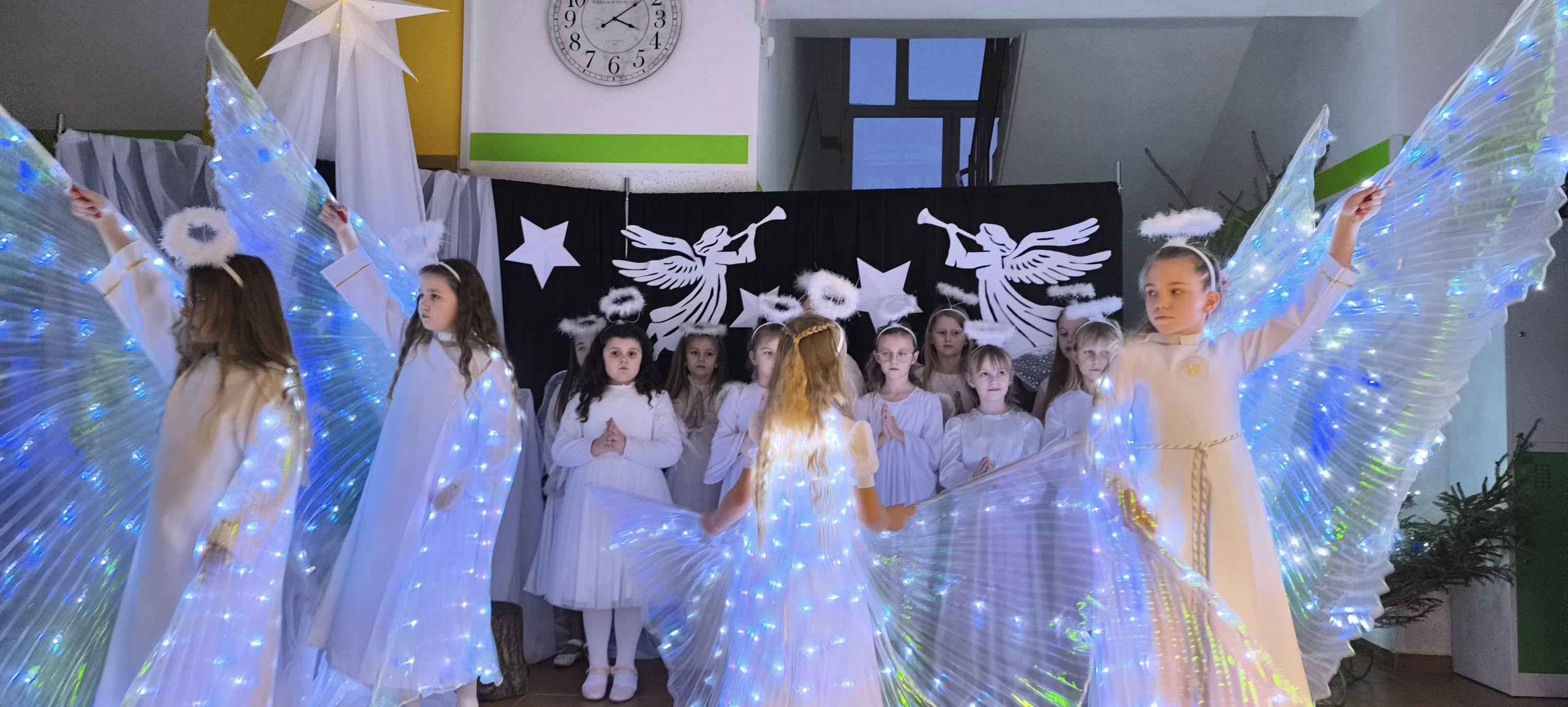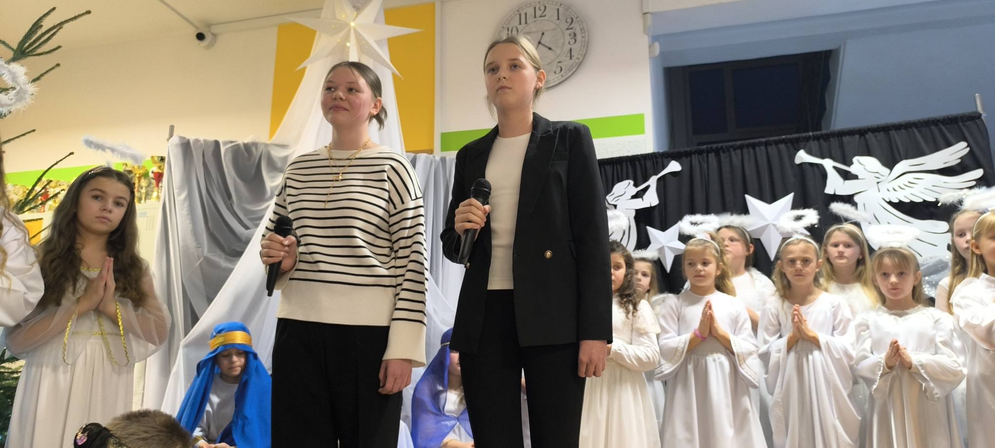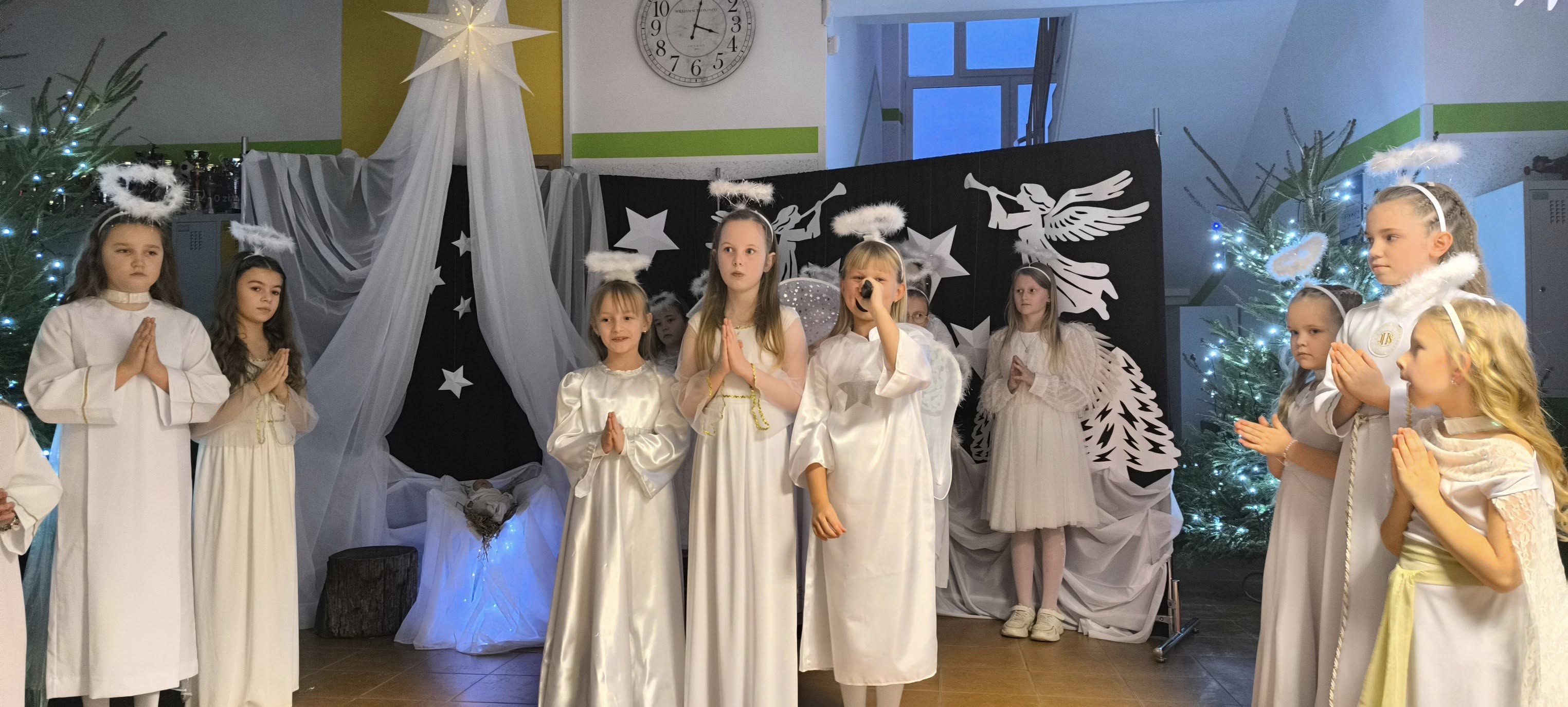 Podczas spotkania uczniowie naszej szkoły zaprezentowali piękne jasełka. Następnie wspólnie kolędowaliśmy, śpiewając znane i lubiane kolędy przy akompaniamencie akordeonów.