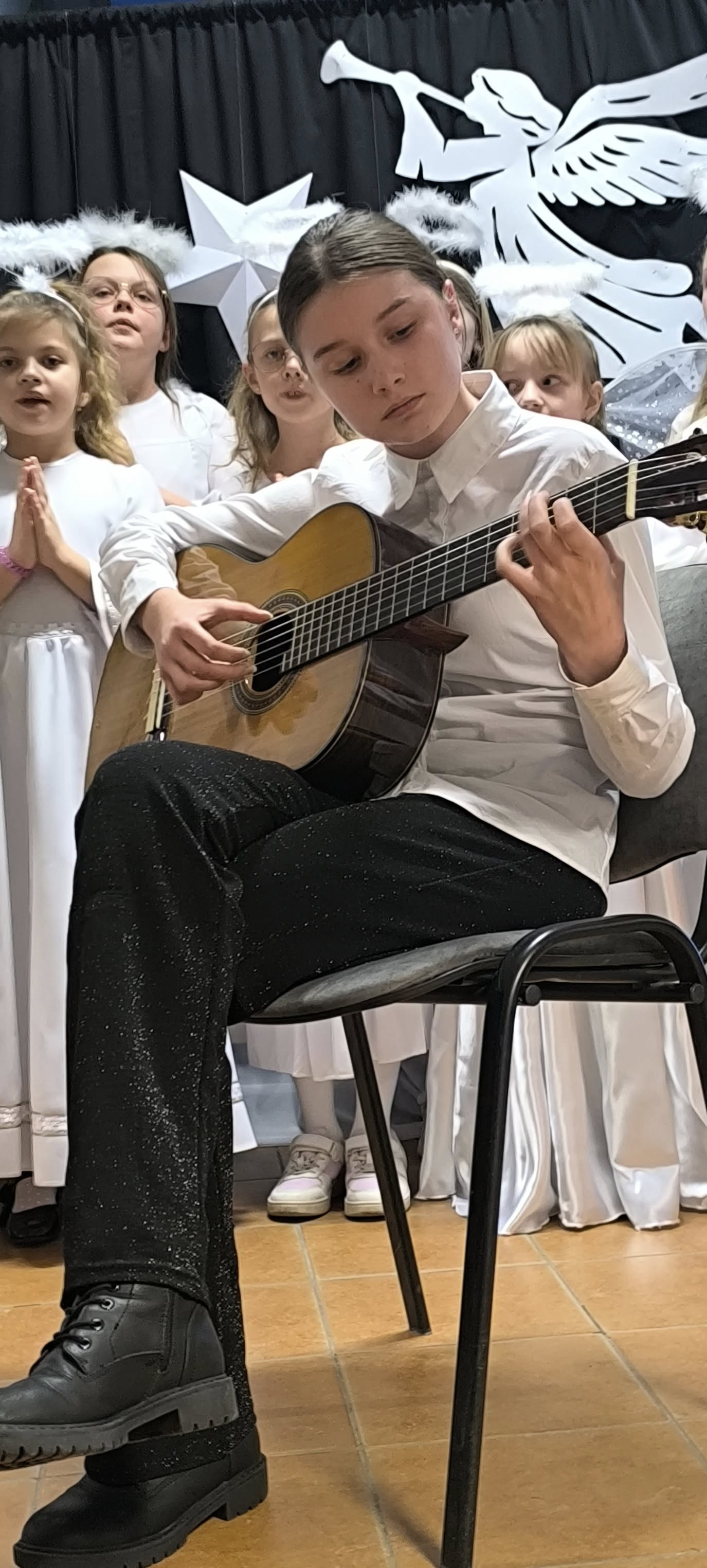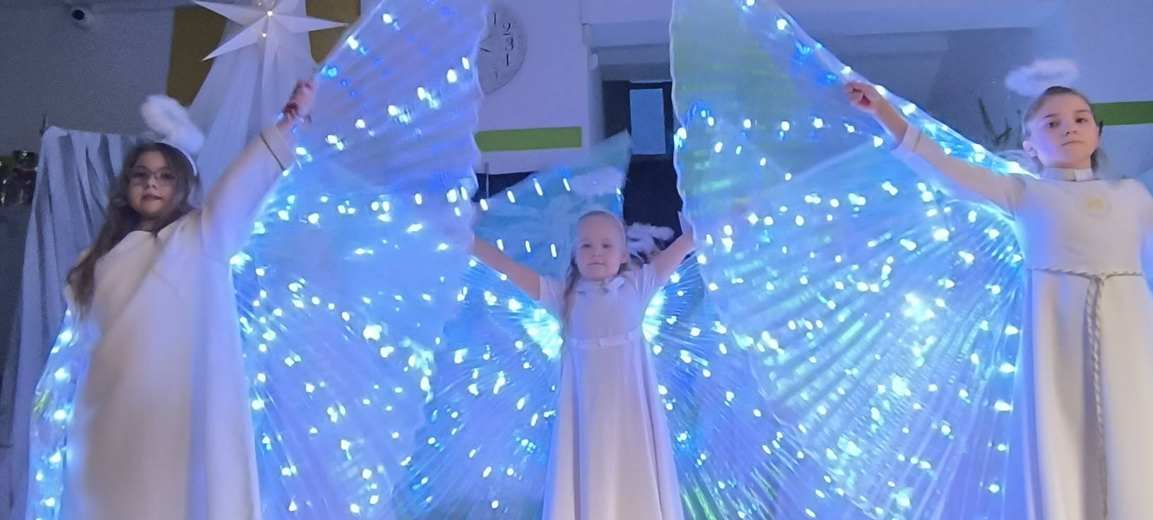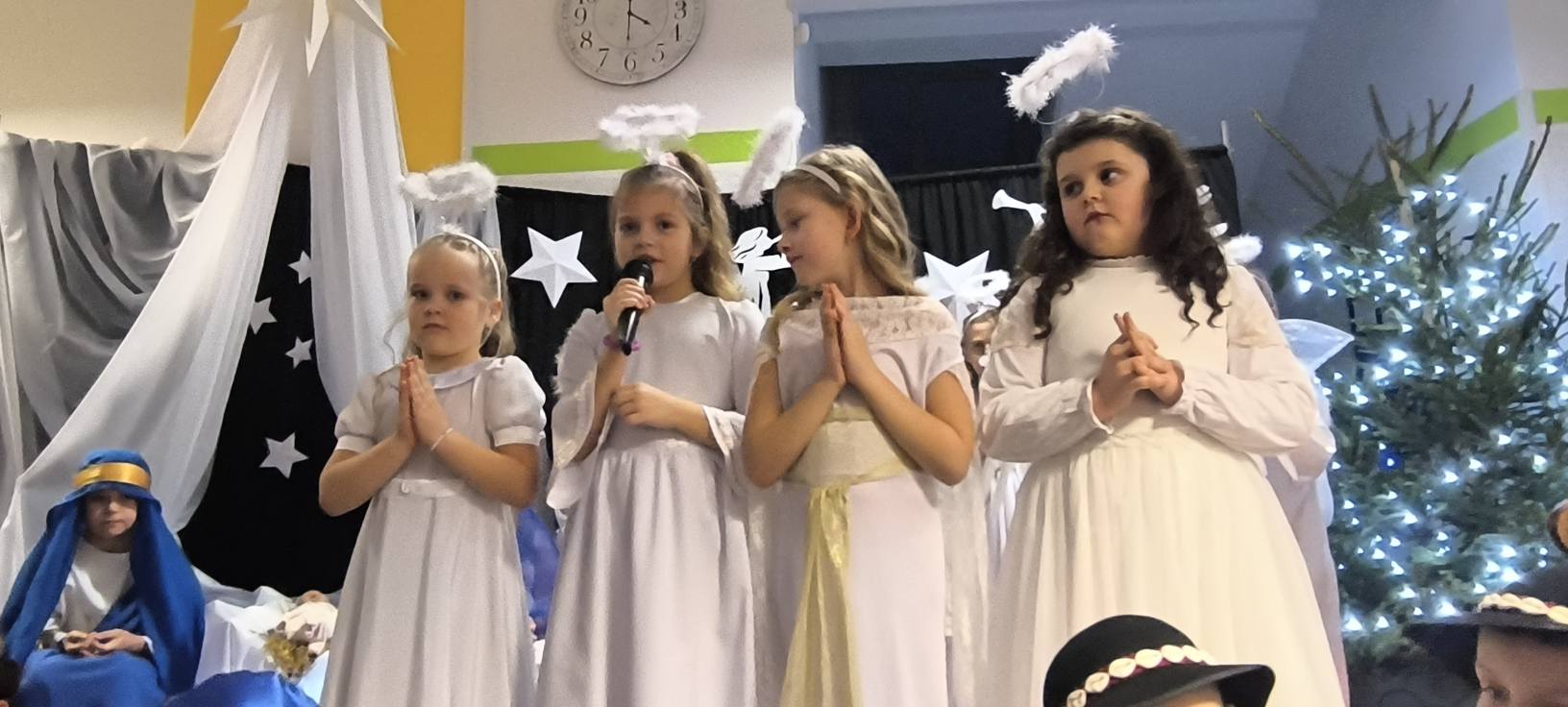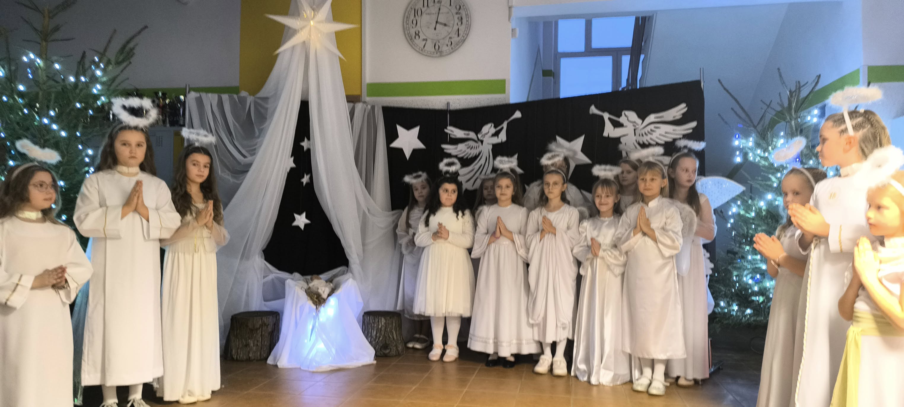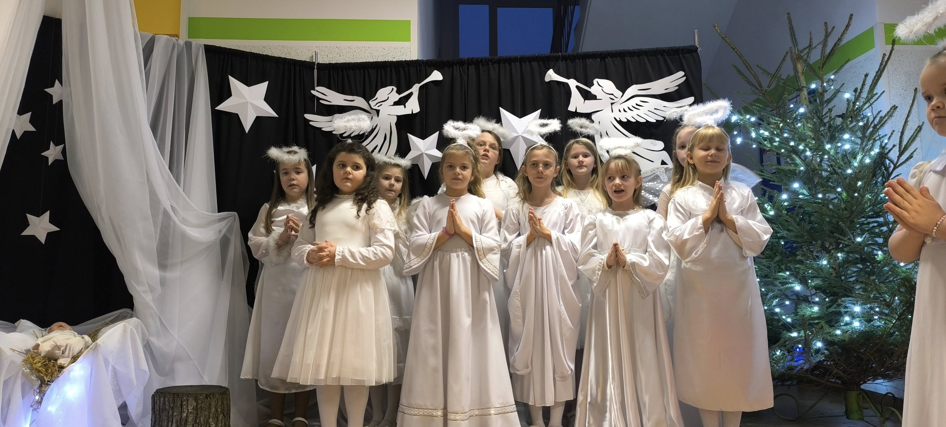 Podczas spotkania uczniowie naszej szkoły zaprezentowali piękne jasełka. Następnie wspólnie kolędowaliśmy, śpiewając znane i lubiane kolędy przy akompaniamencie akordeonów.