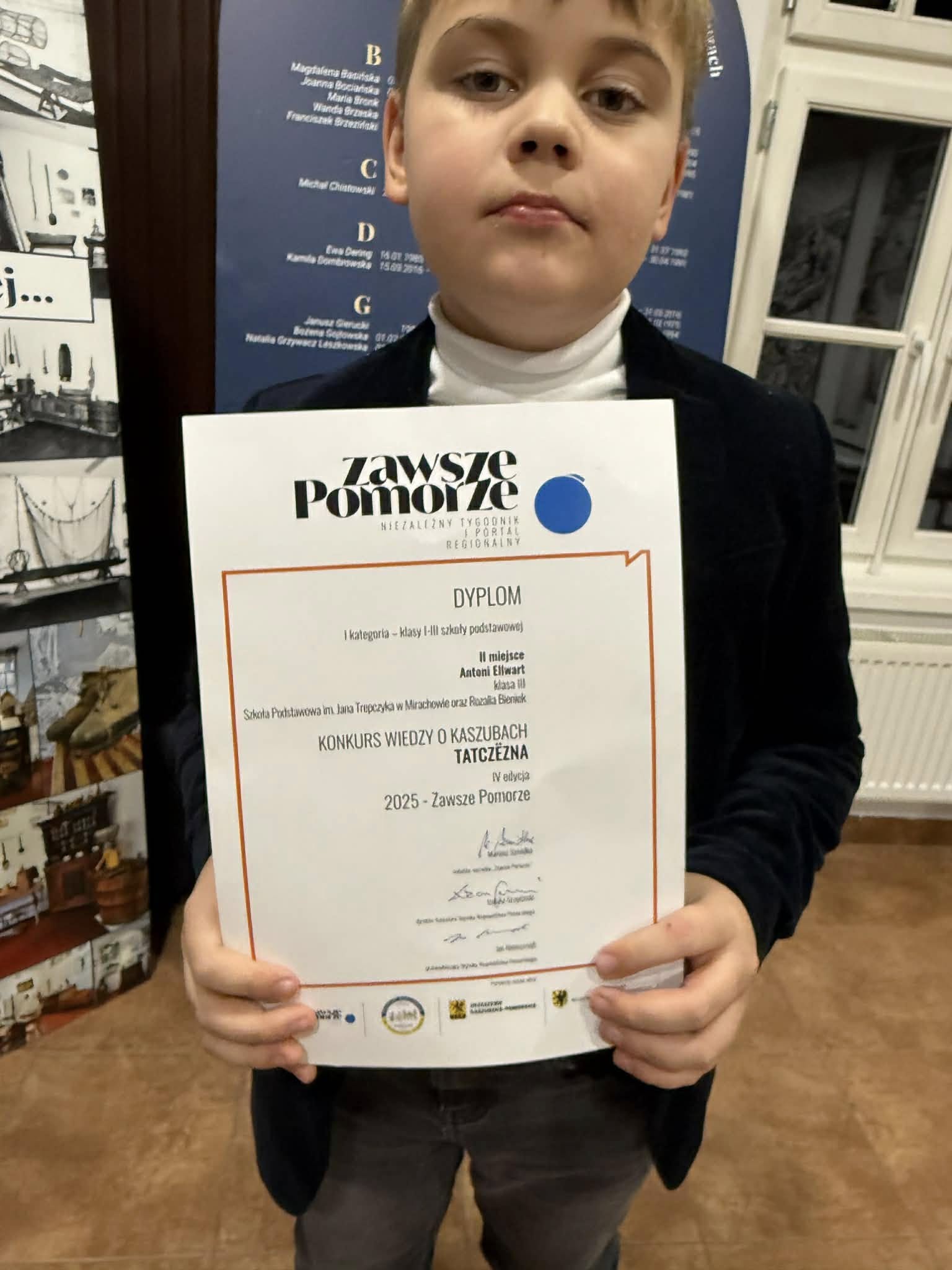 W tegorocznej edycji Konkursu Wiedzy o Kaszubach „Tatczëzna”, w którym wzięło udział aż 647 uczniów z 94 szkół województwa pomorskiego, nasz reprezentant – Antoni Ellwart – zdobył II miejsce.