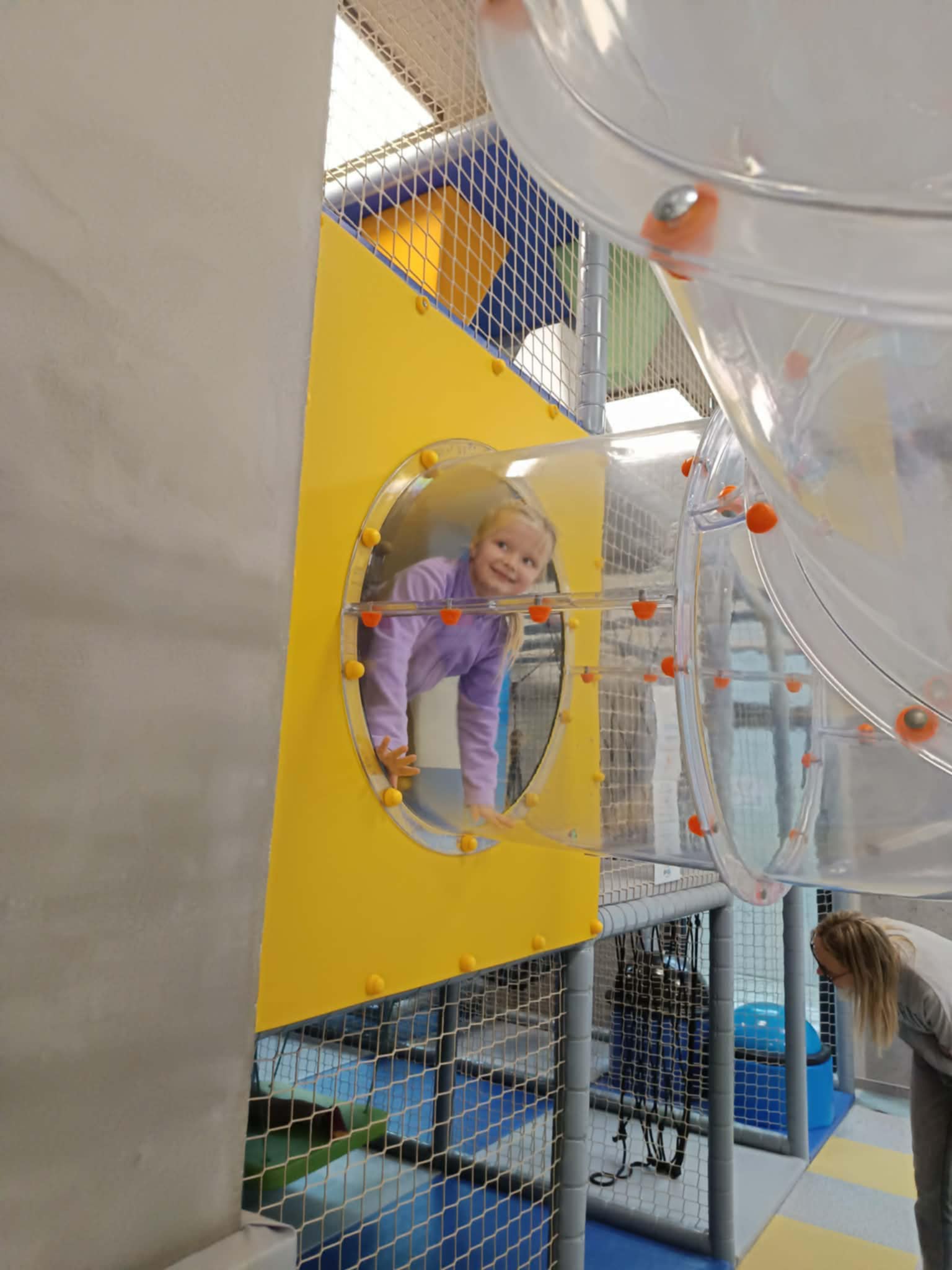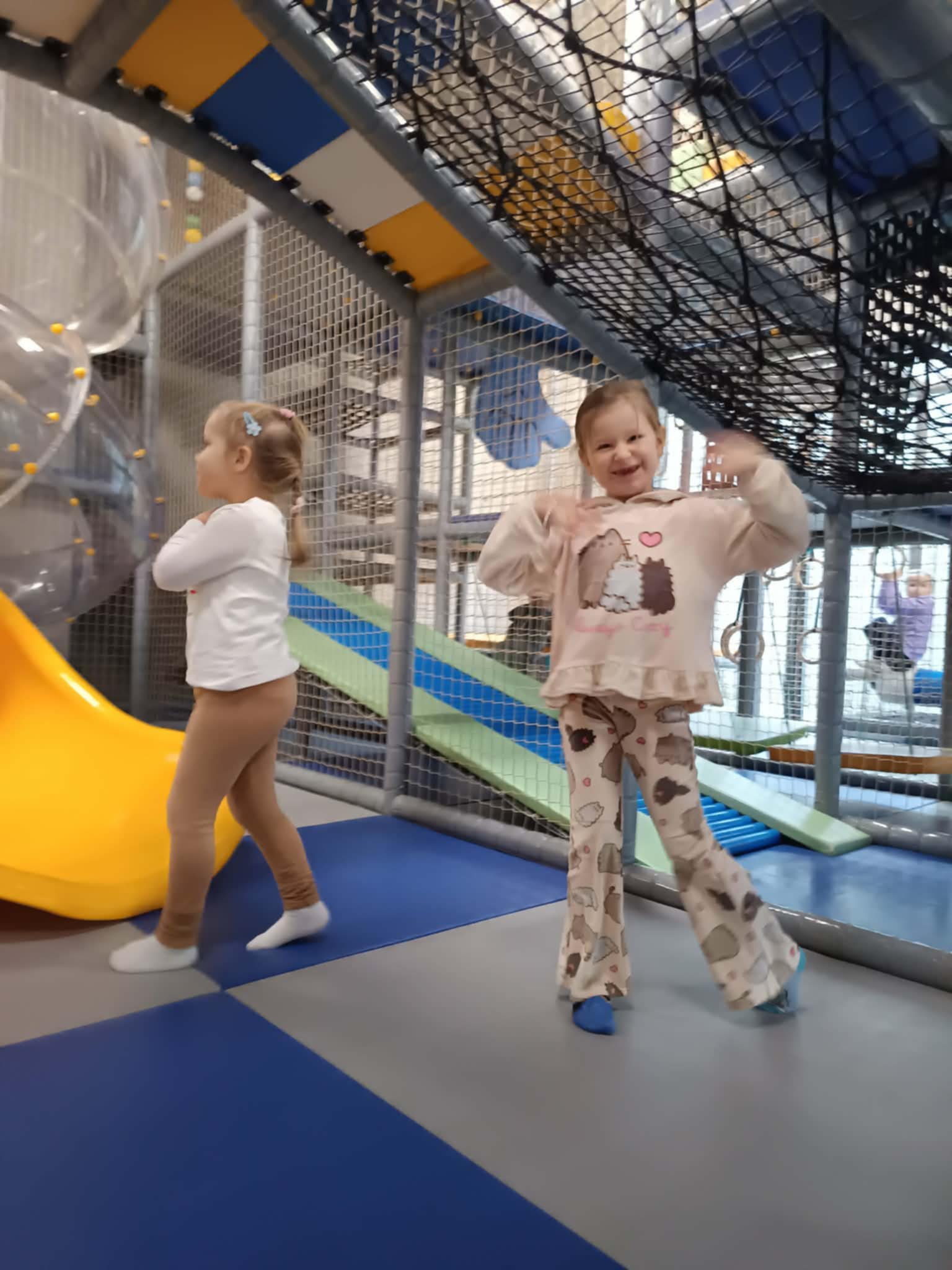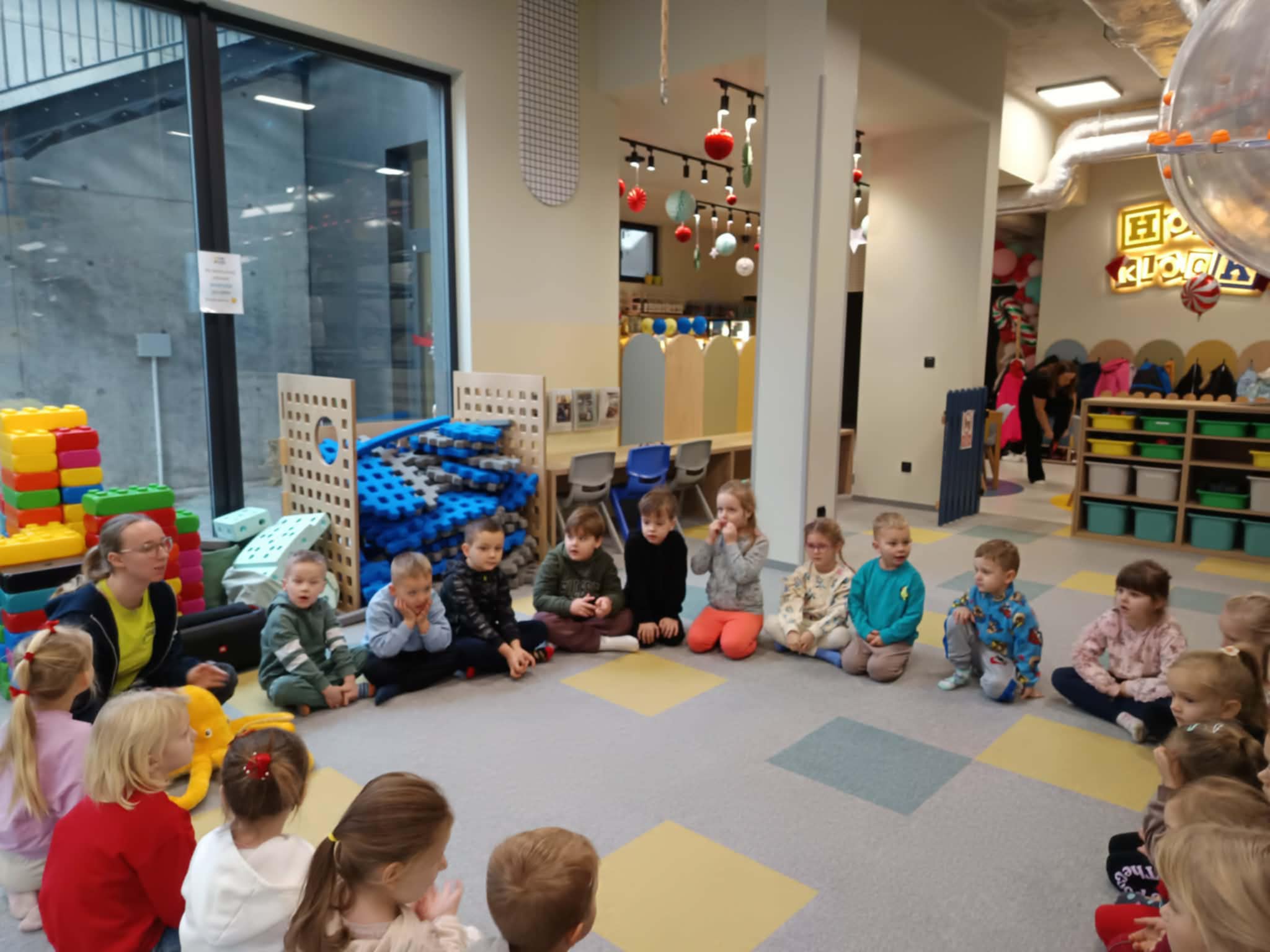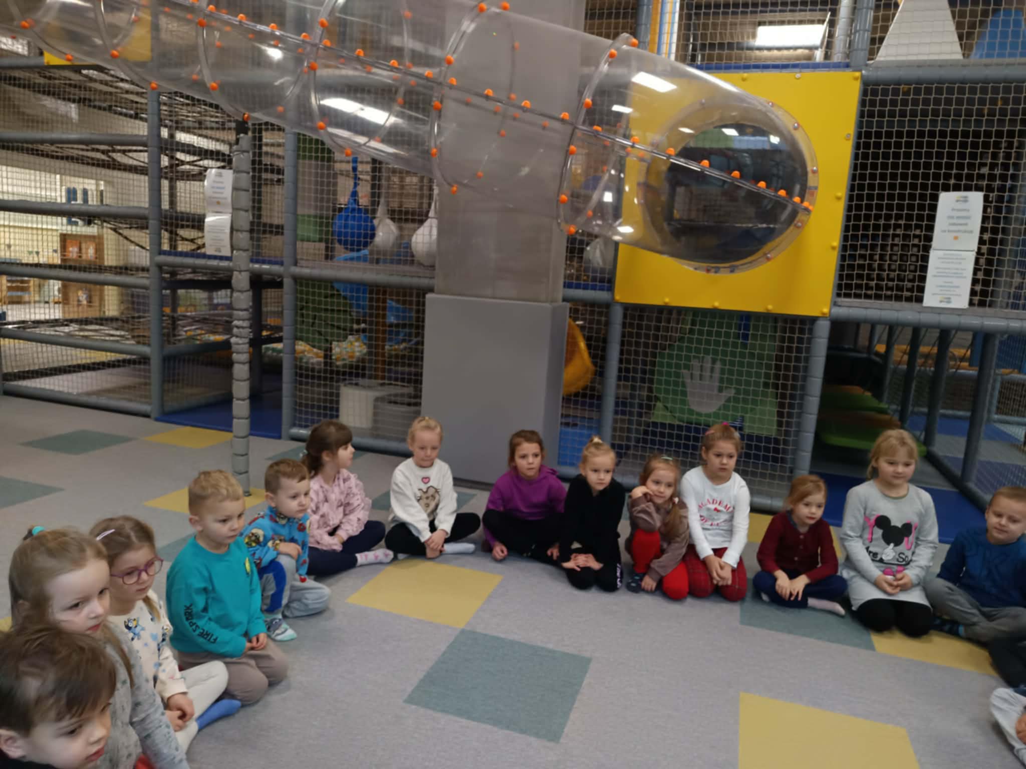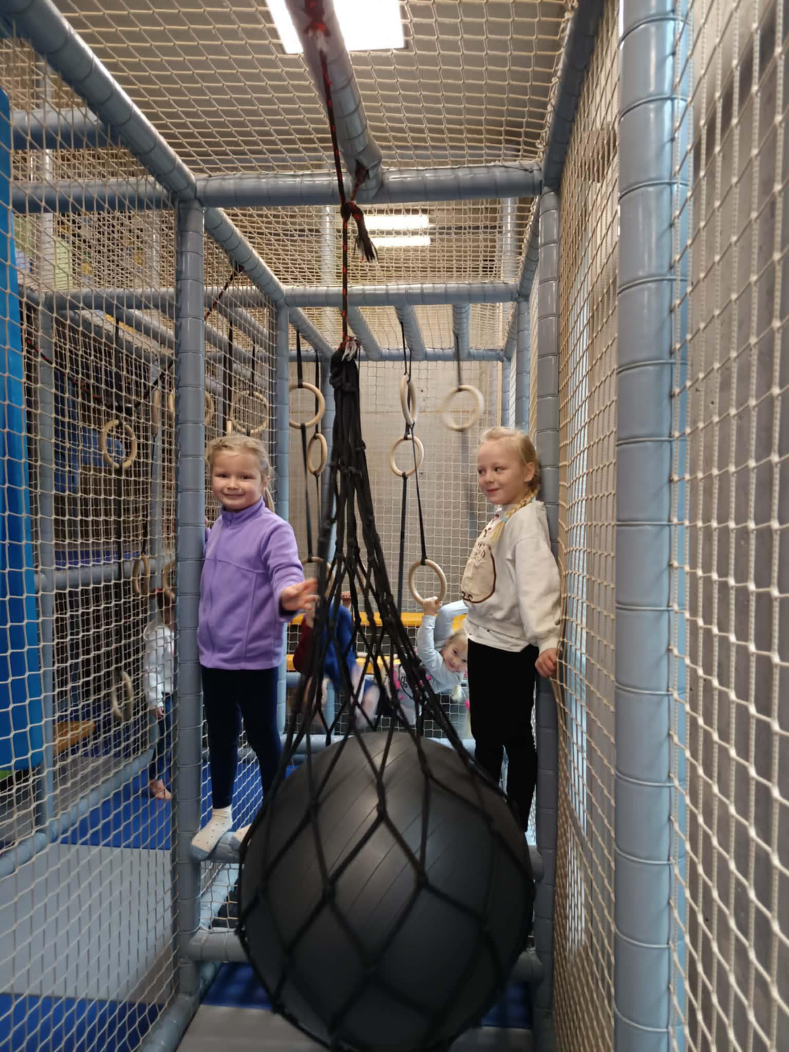 Następnie grupa odwiedziła salę zabaw Hocki Klocki w Kartuzach, gdzie dzieci mogły aktywnie spędzić czas, rozwijać sprawność ruchową i integrować się podczas wspólnej zabawy.