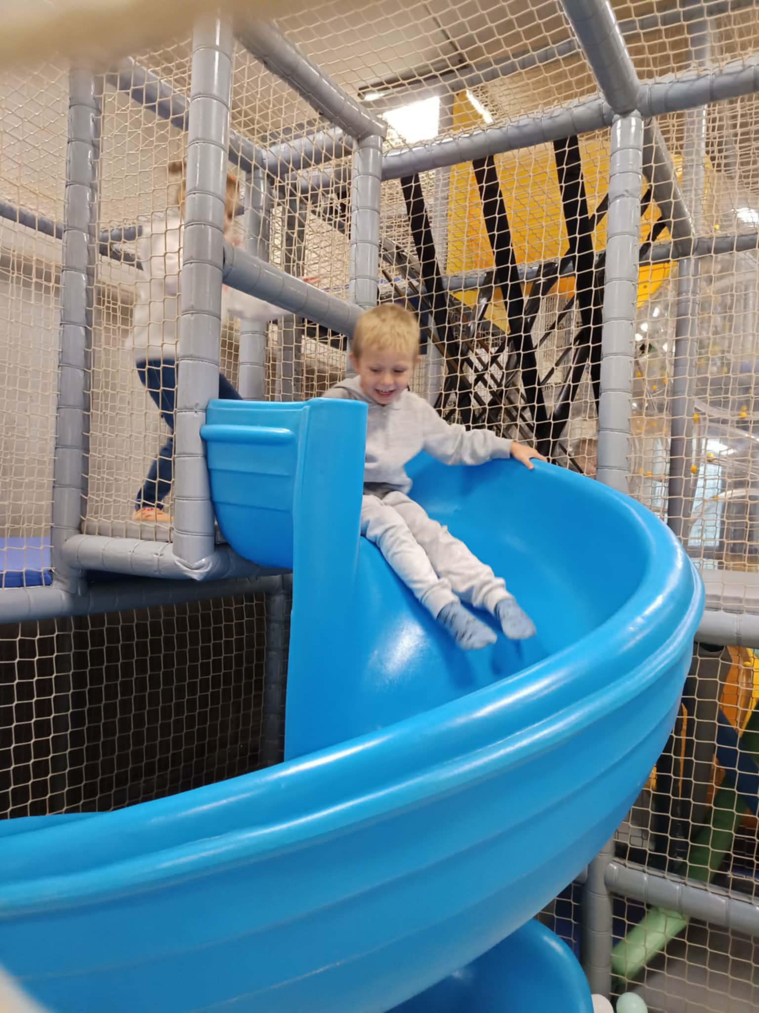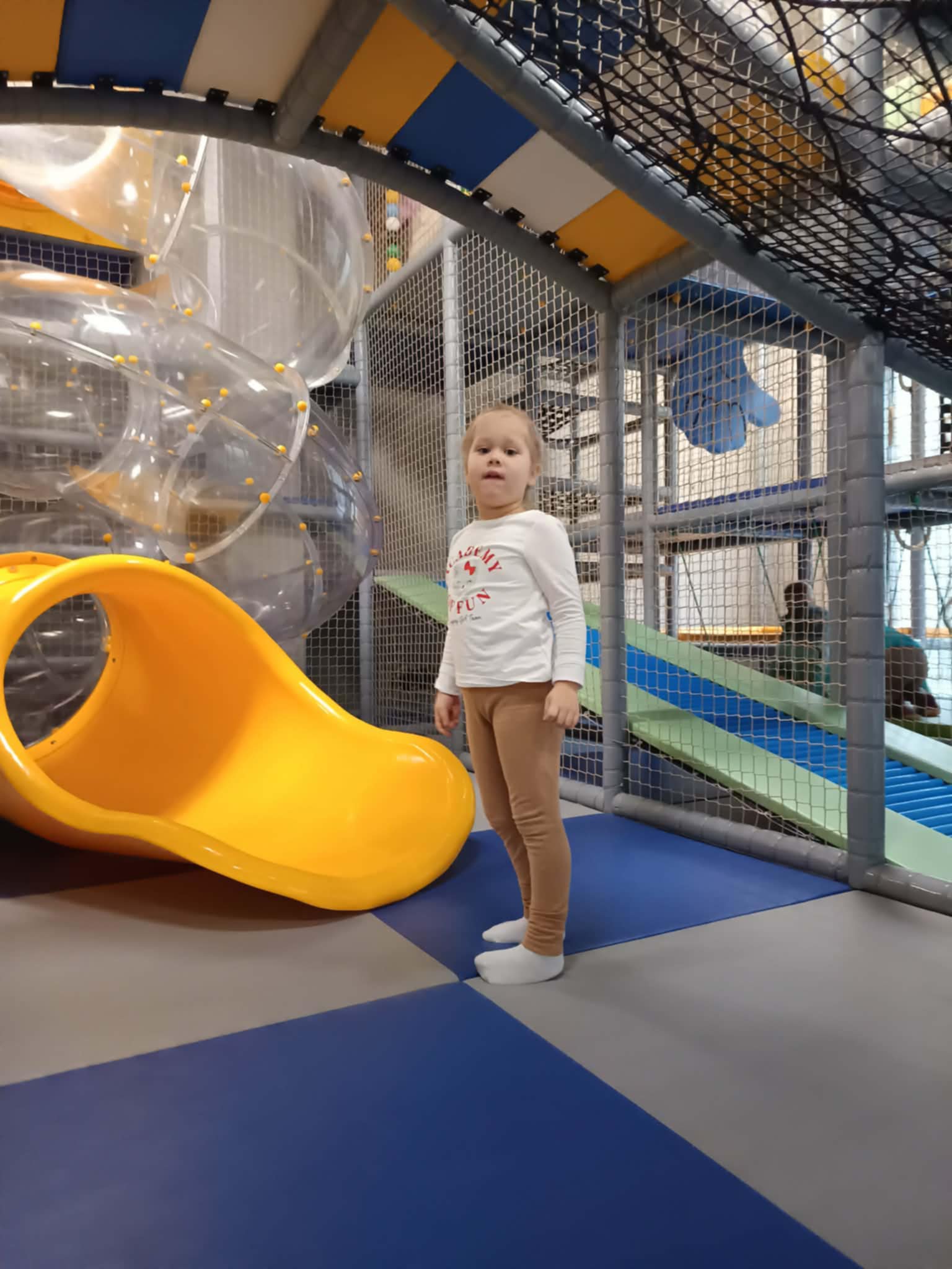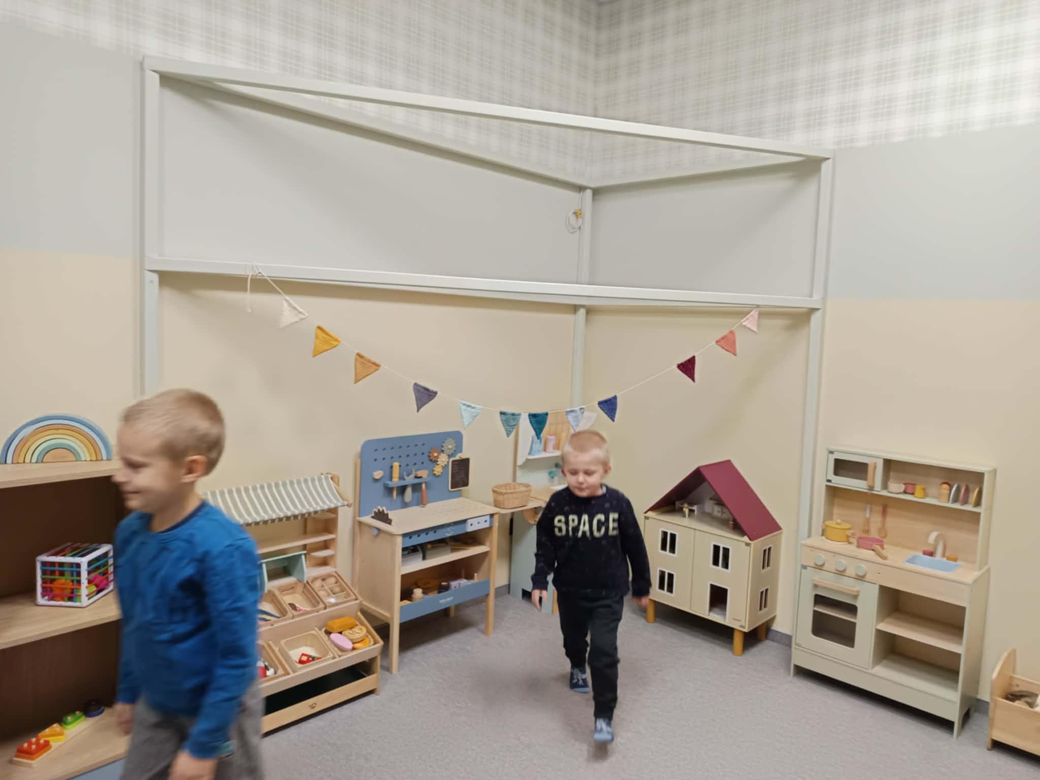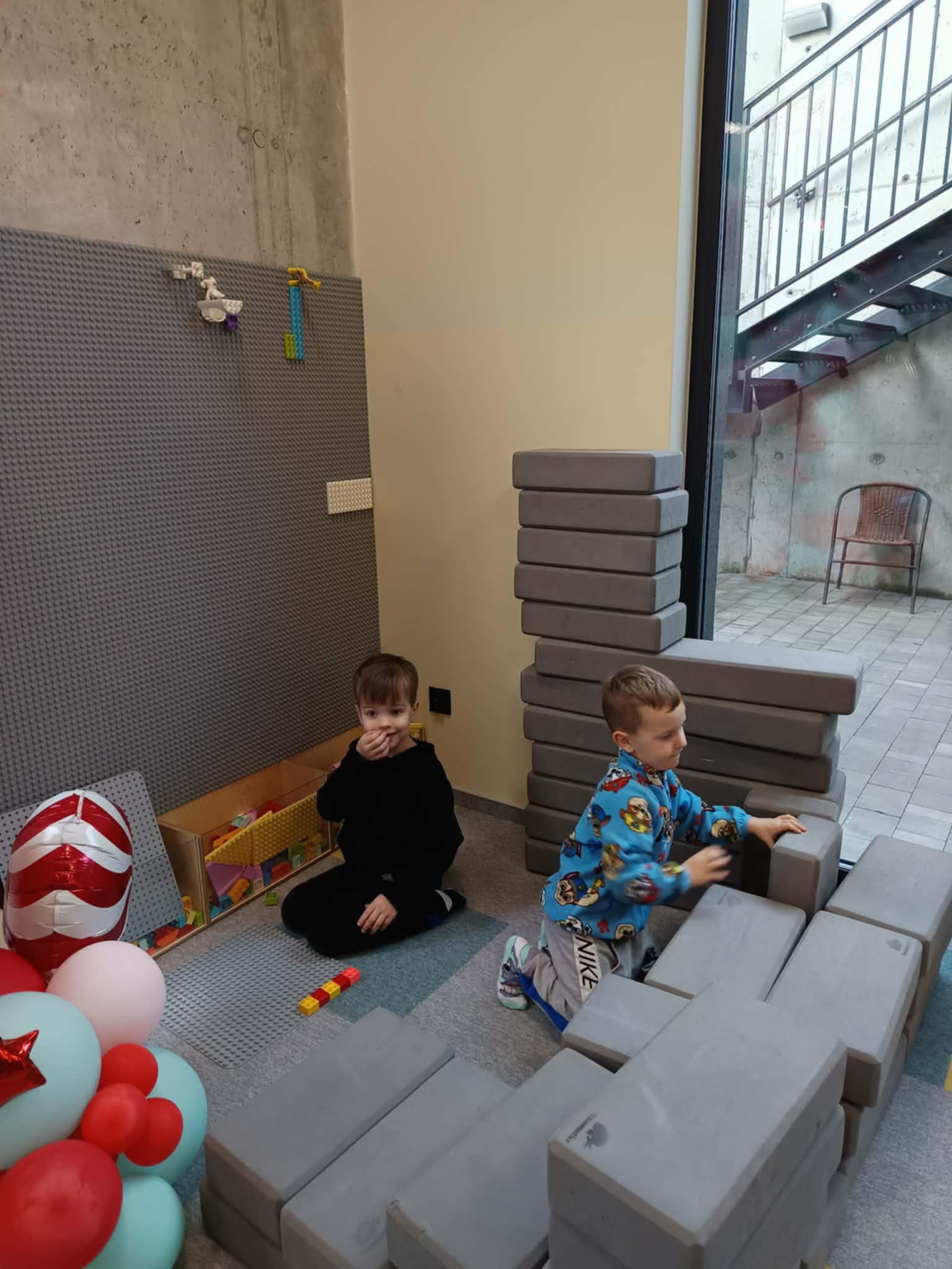 Następnie grupa odwiedziła salę zabaw Hocki Klocki w Kartuzach, gdzie dzieci mogły aktywnie spędzić czas, rozwijać sprawność ruchową i integrować się podczas wspólnej zabawy.