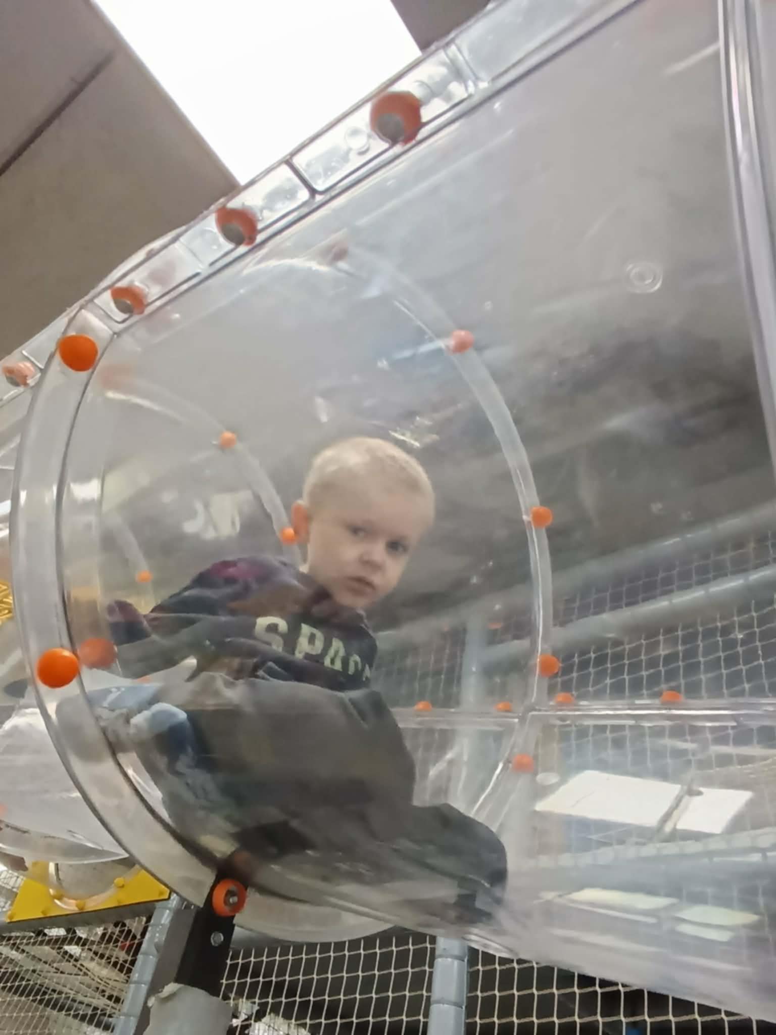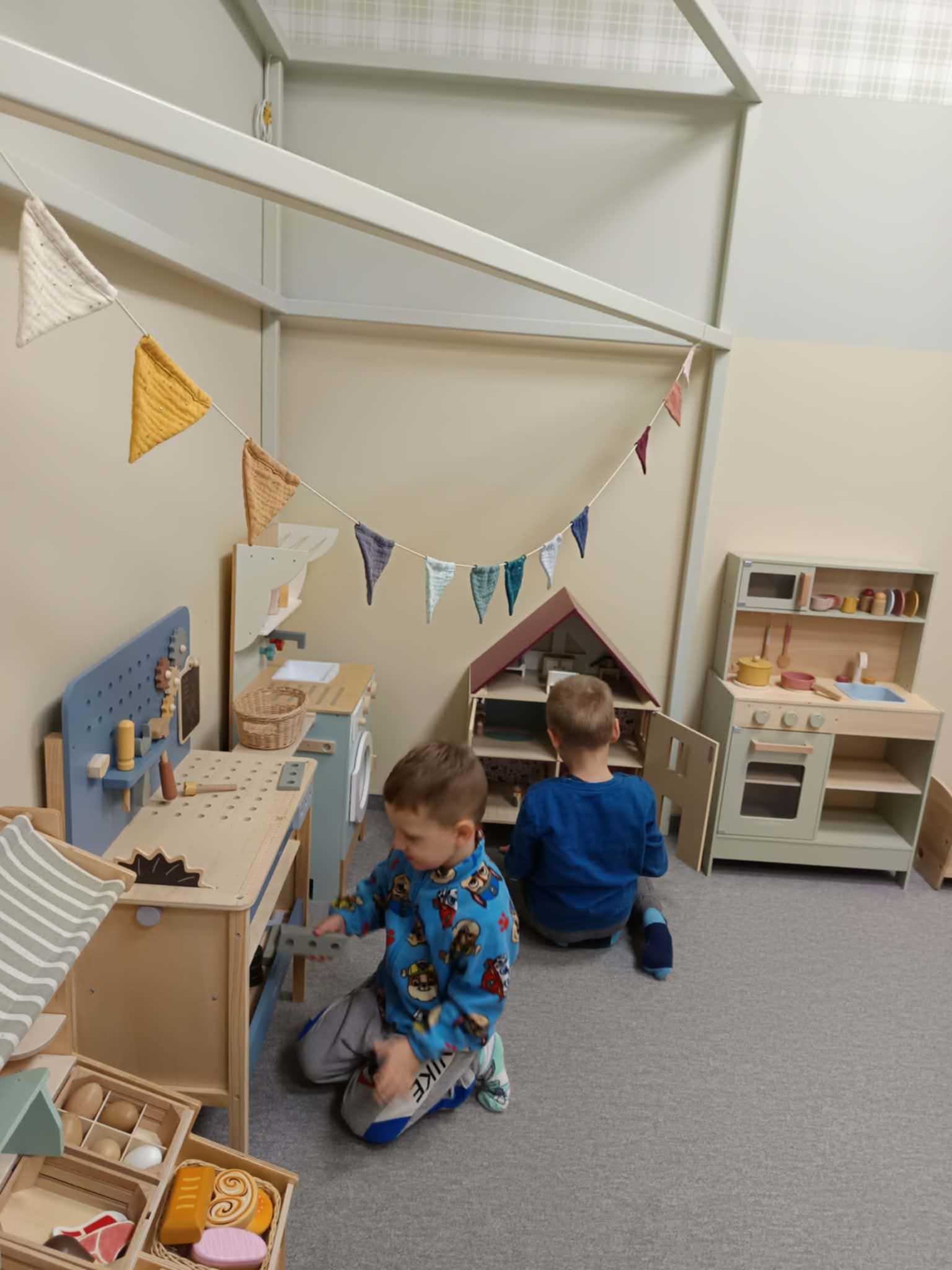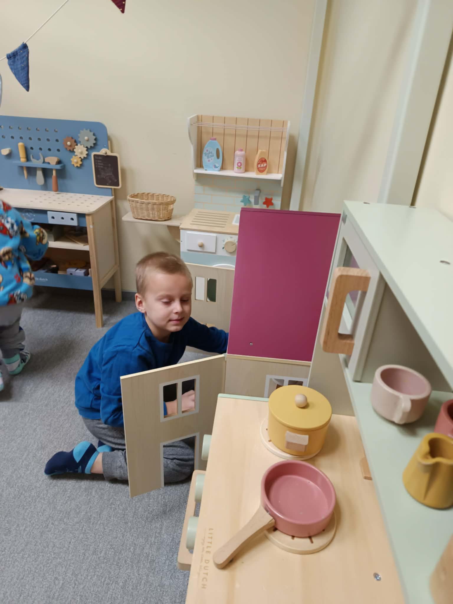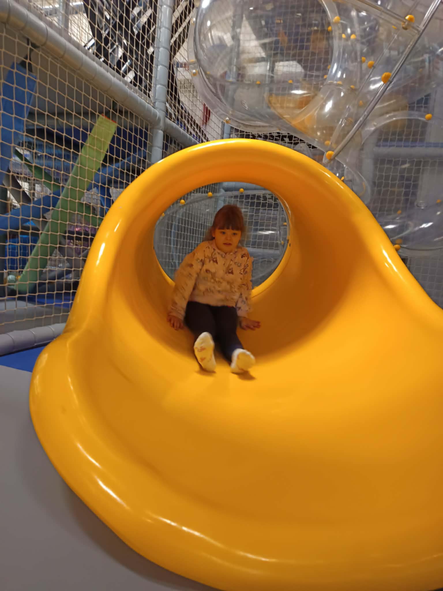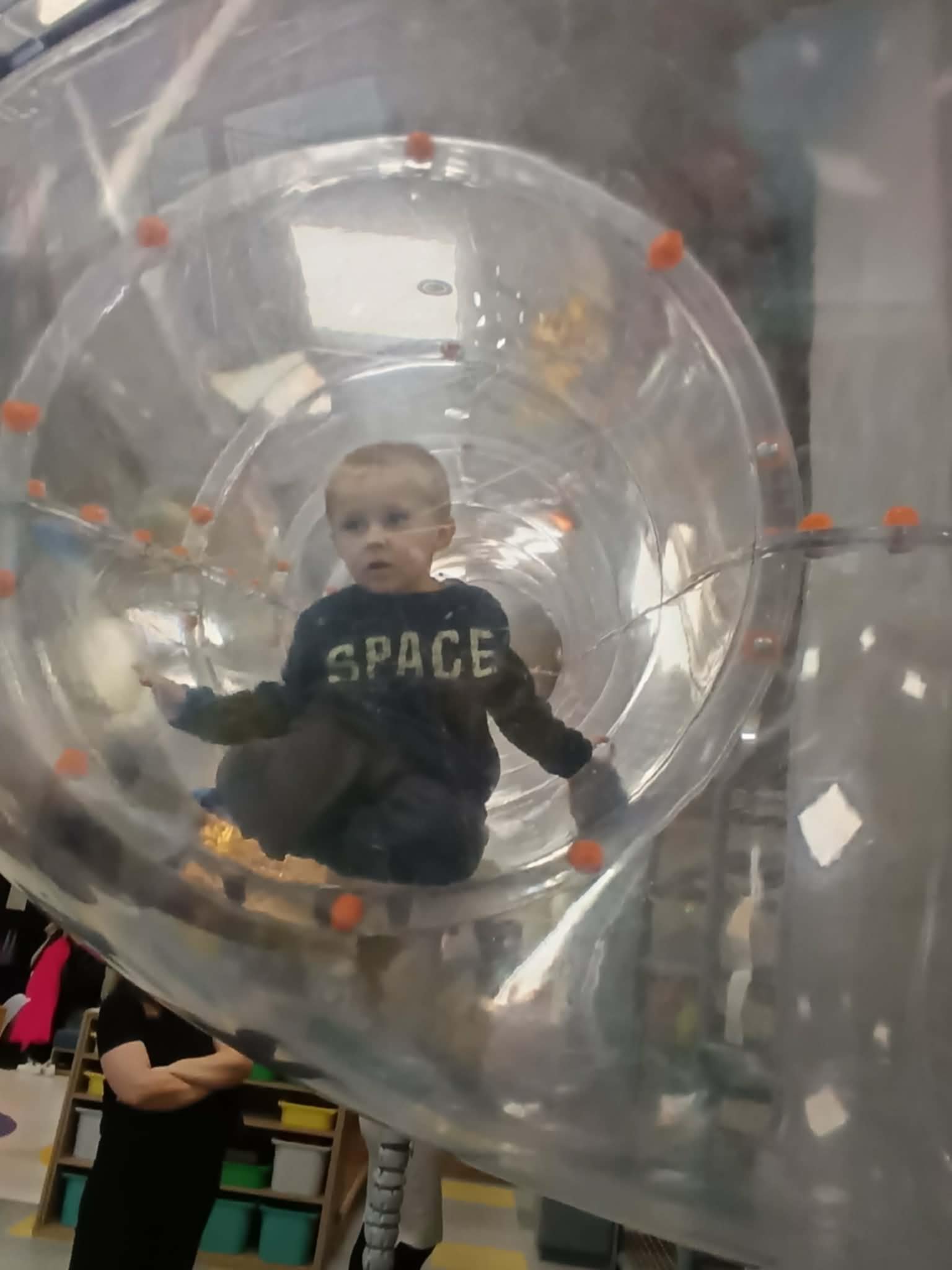 Następnie grupa odwiedziła salę zabaw Hocki Klocki w Kartuzach, gdzie dzieci mogły aktywnie spędzić czas, rozwijać sprawność ruchową i integrować się podczas wspólnej zabawy.